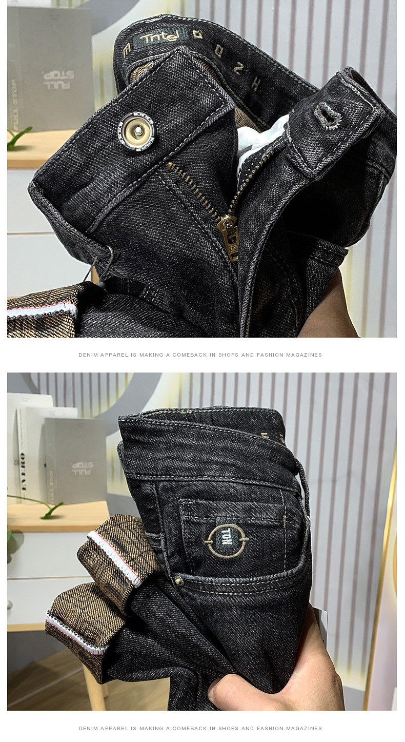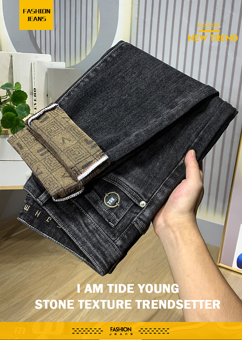 秋冬牛仔褲男2025新款休閒厚款潮牌寬鬆直筒冬季加絨加厚男士長褲