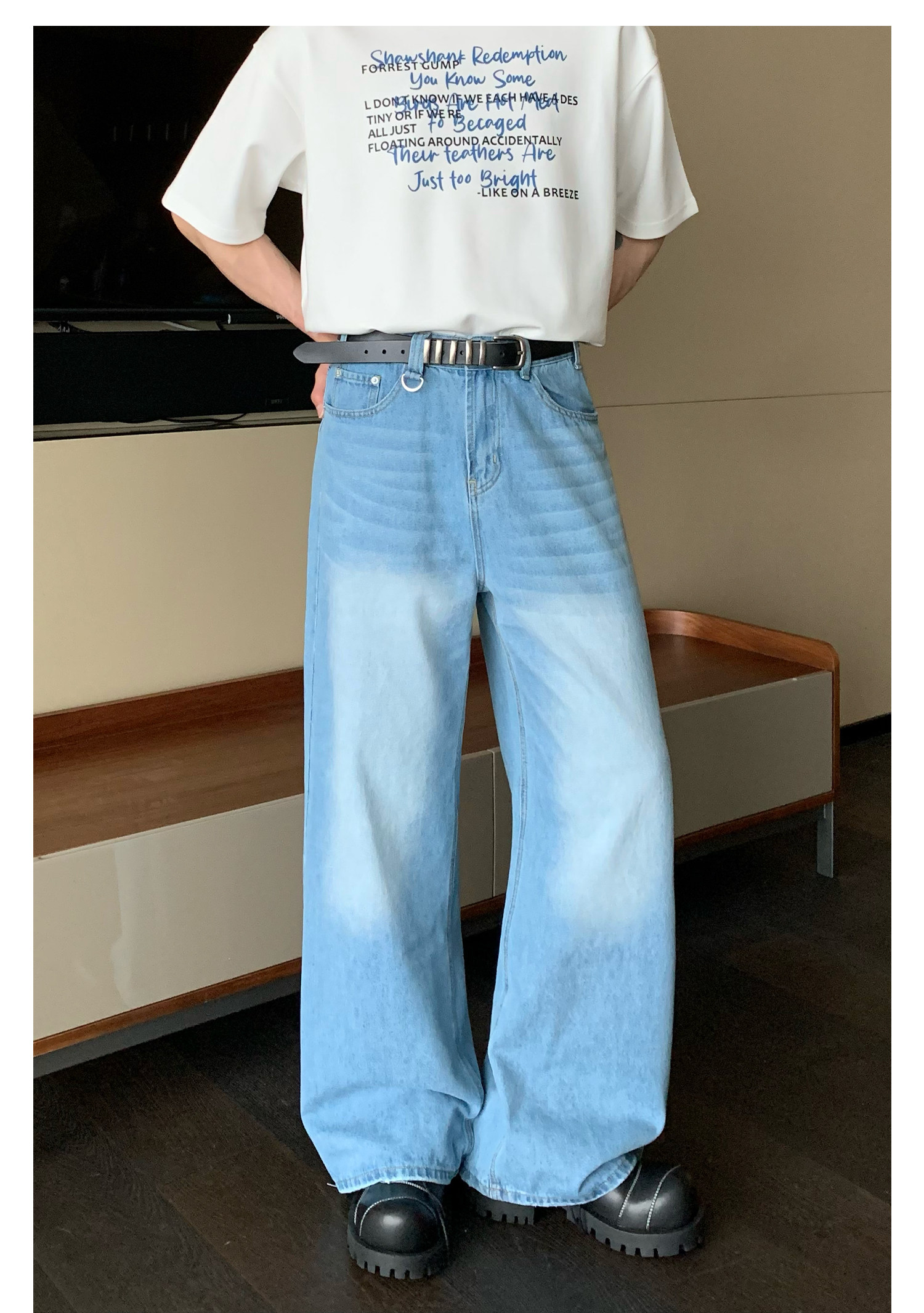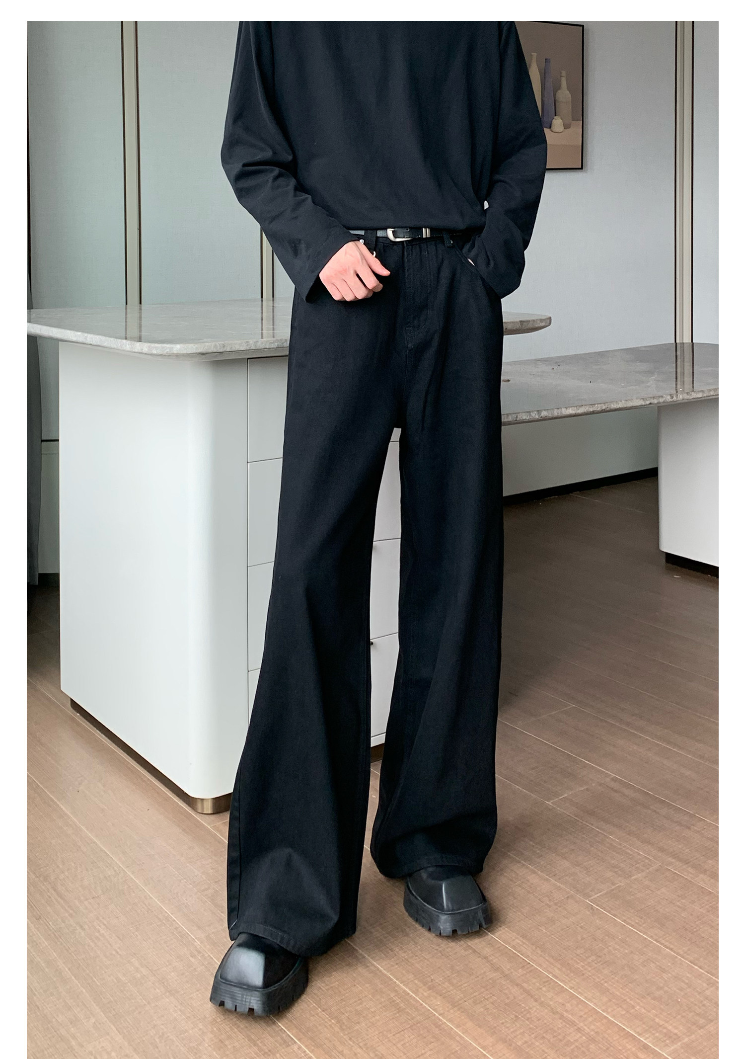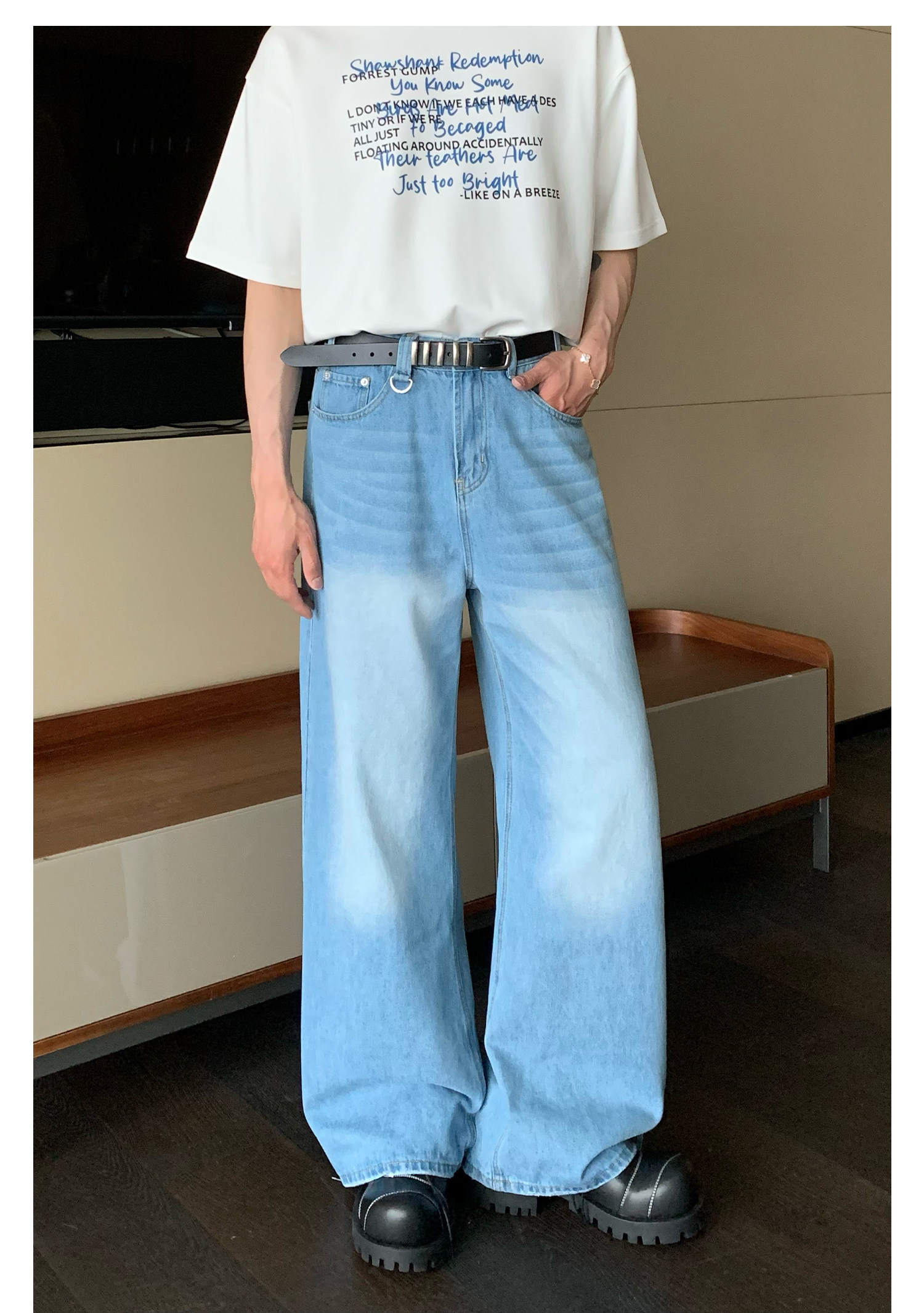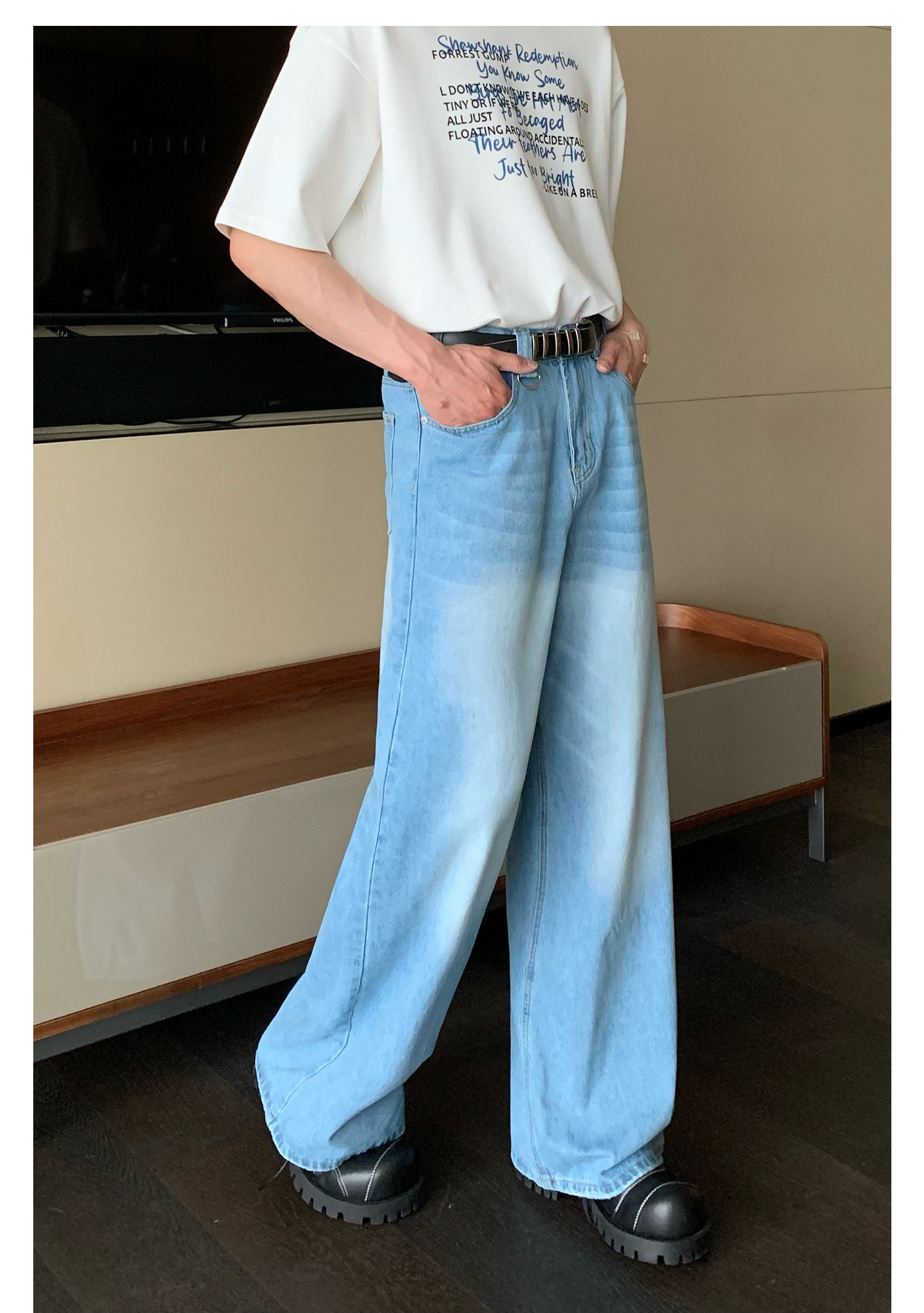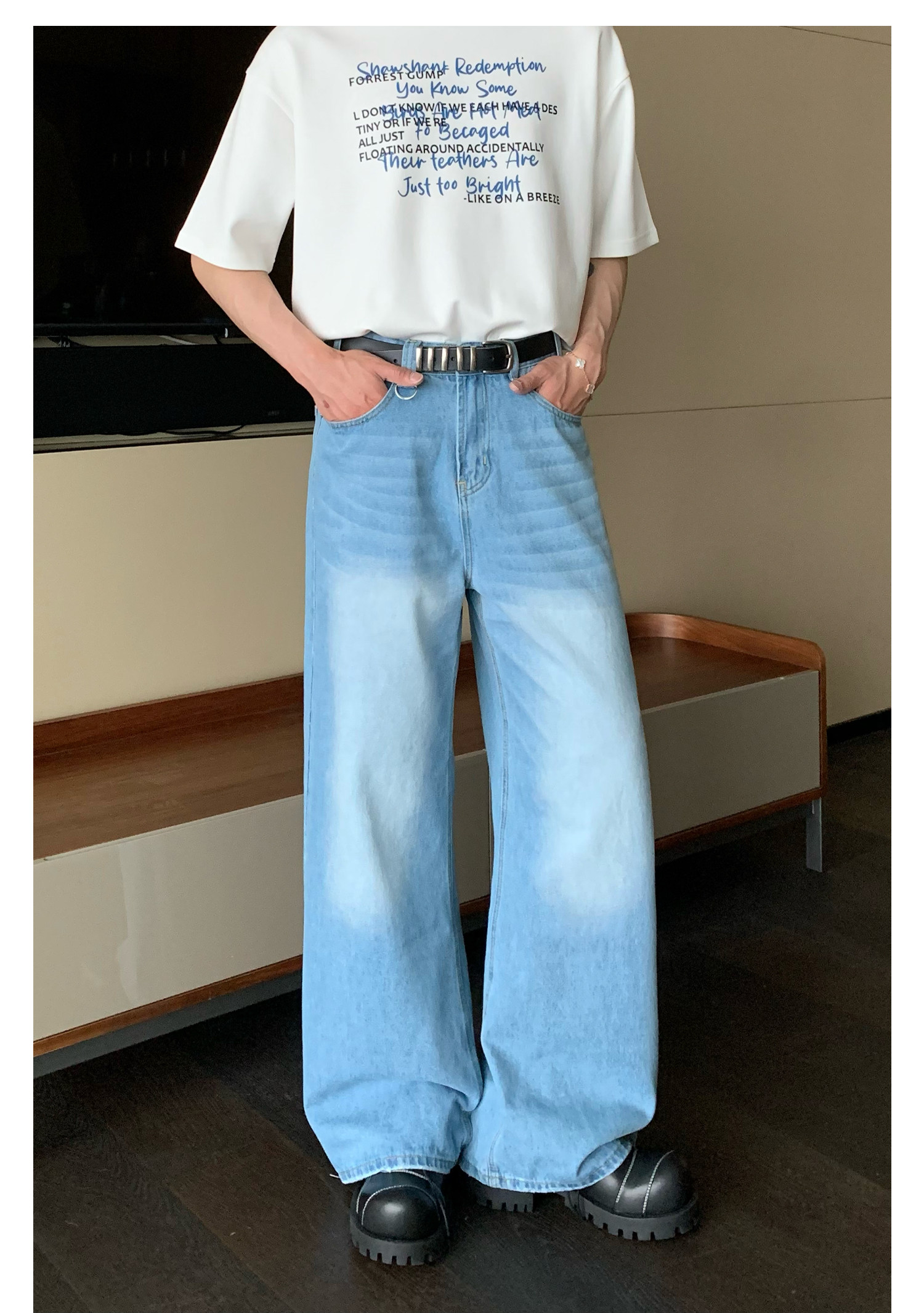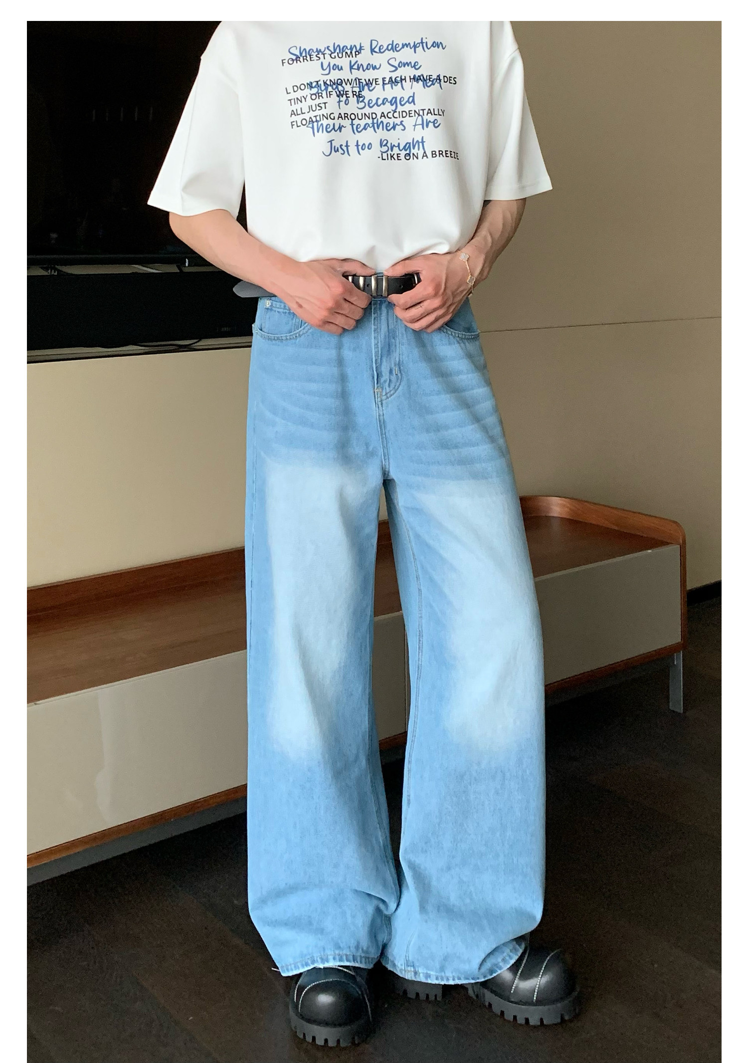 cuibuju 小衆磨破做舊復古水洗直筒牛仔褲男寬鬆百搭濶腿拖地長褲