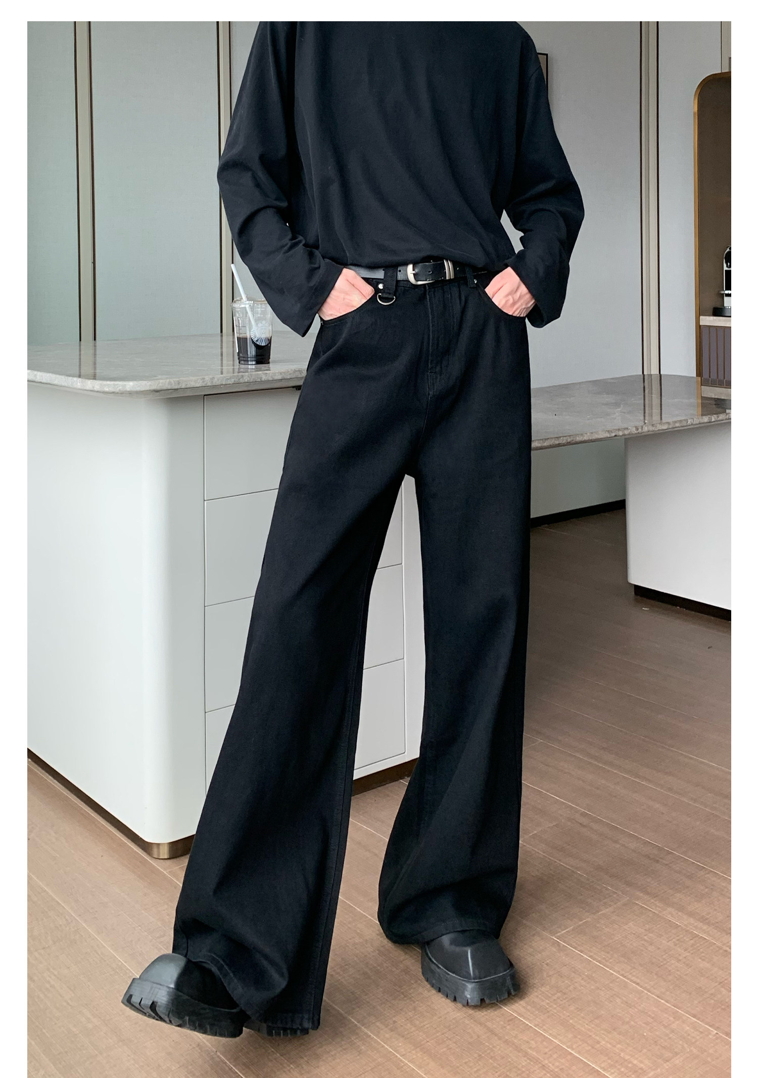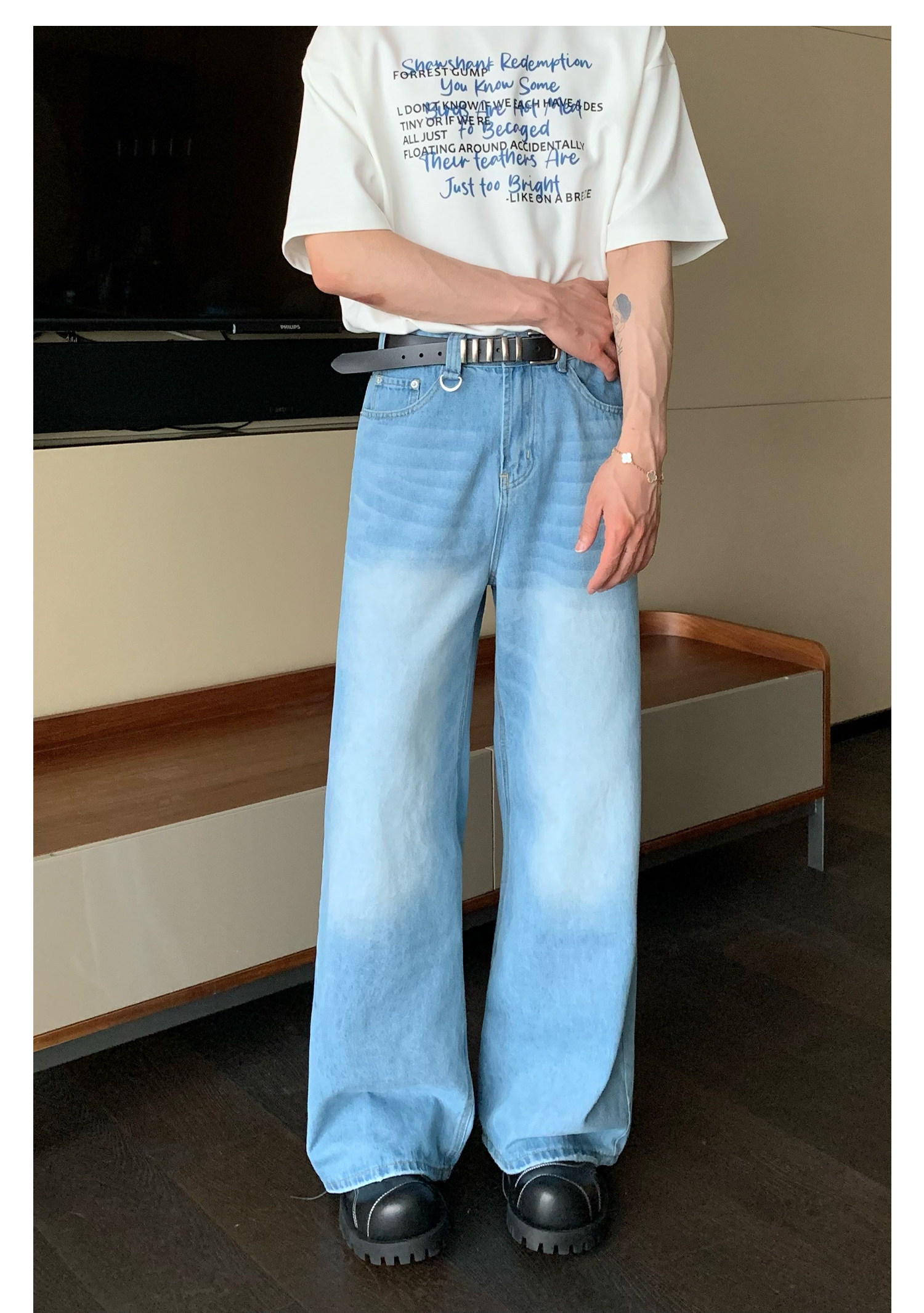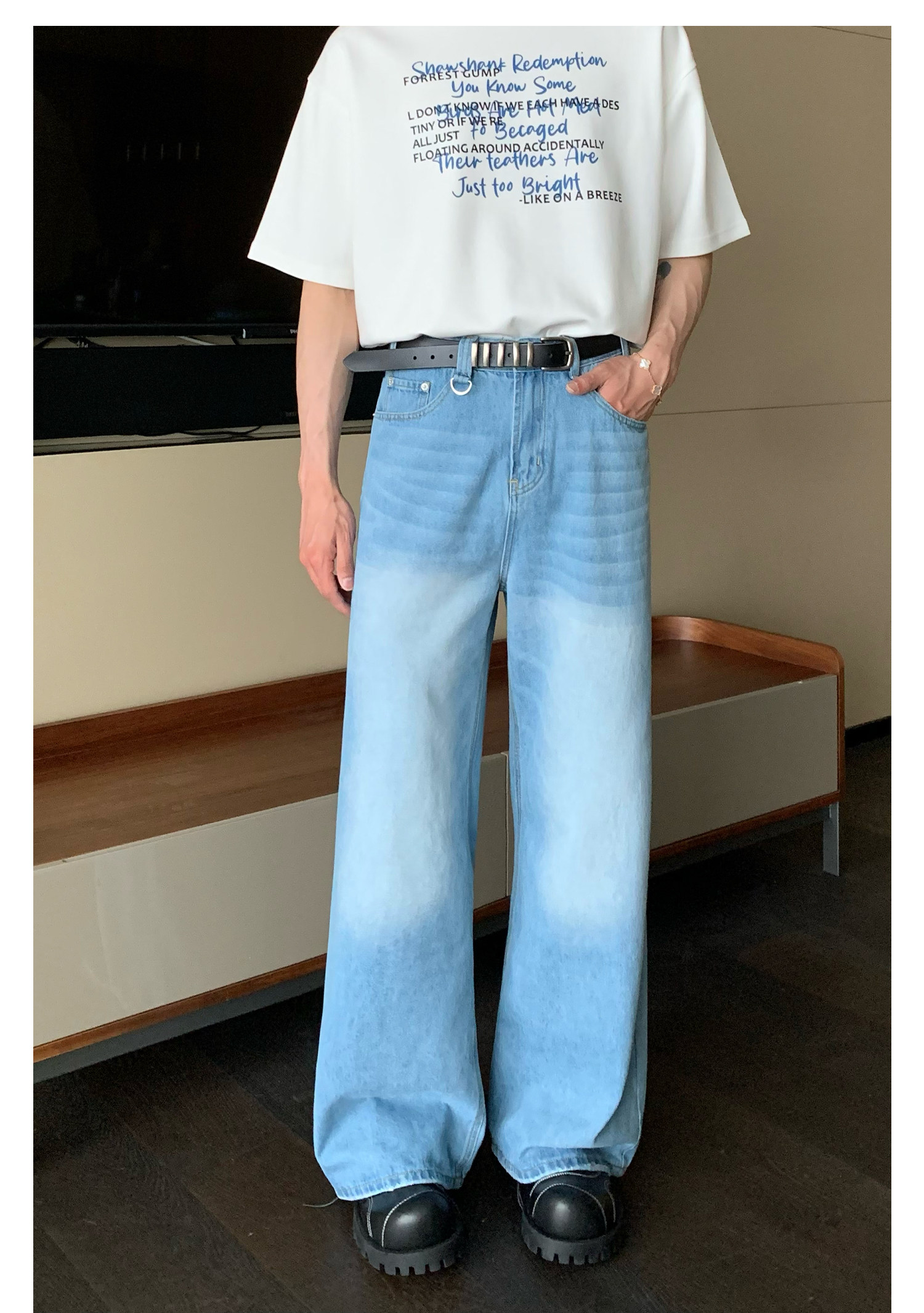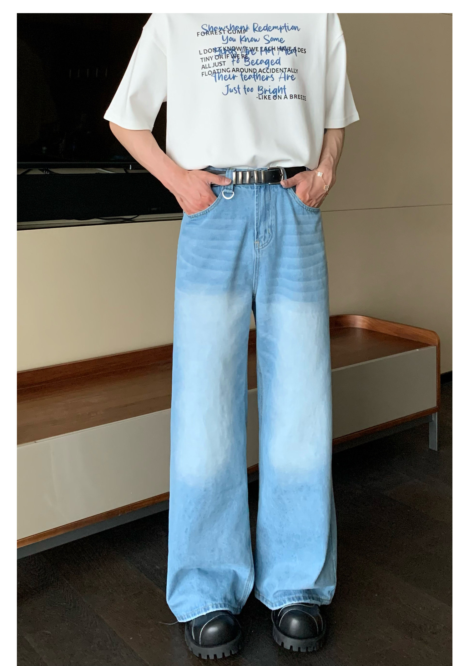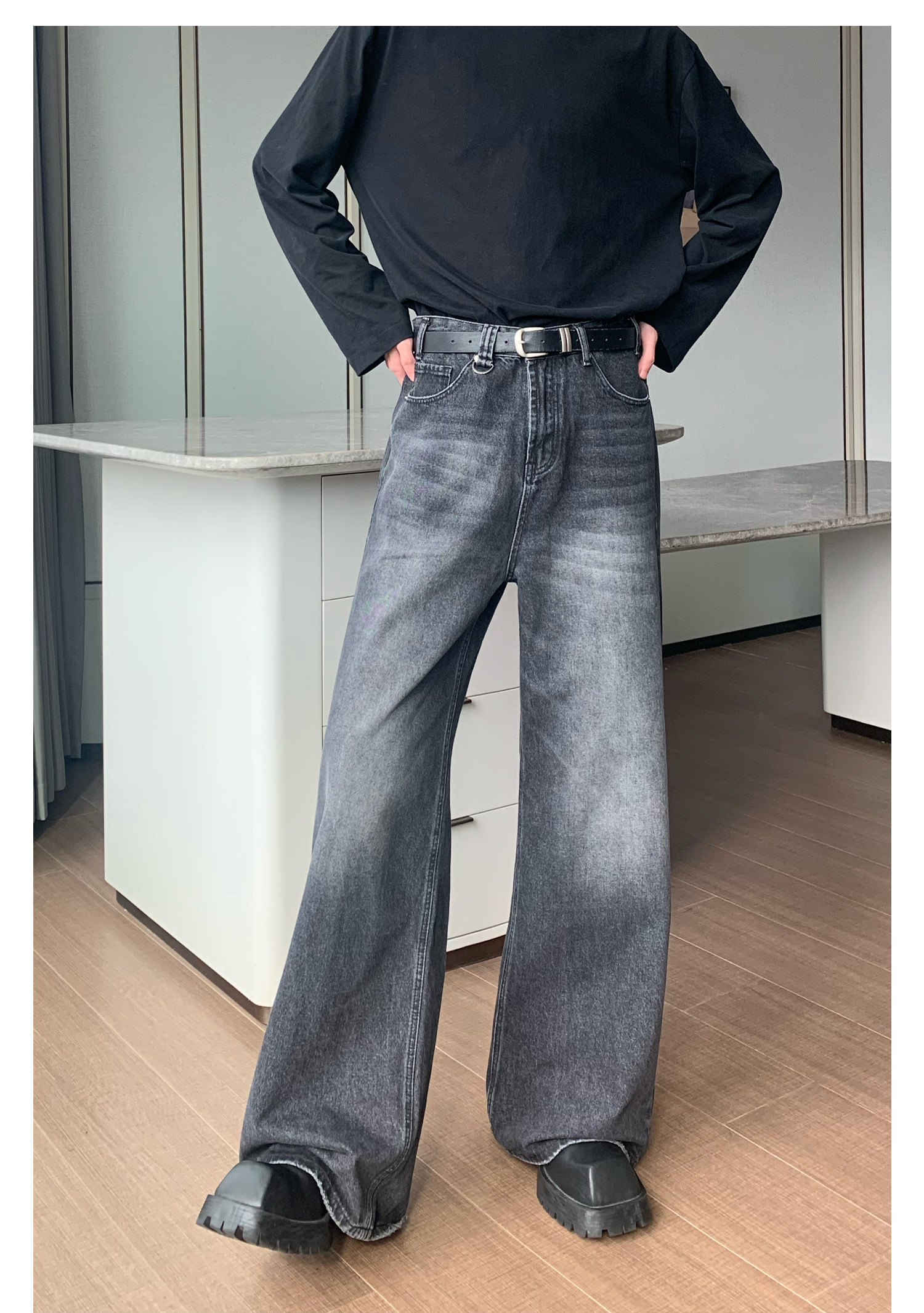 cuibuju 小衆磨破做舊復古水洗直筒牛仔褲男寬鬆百搭濶腿拖地長褲