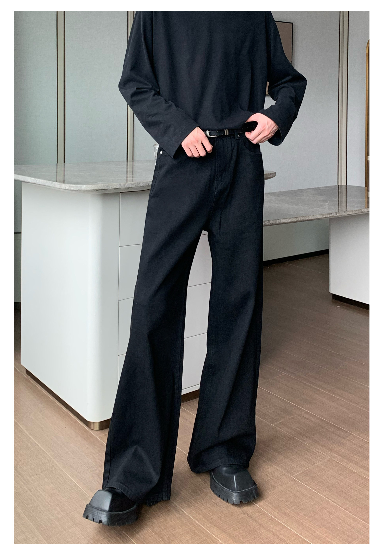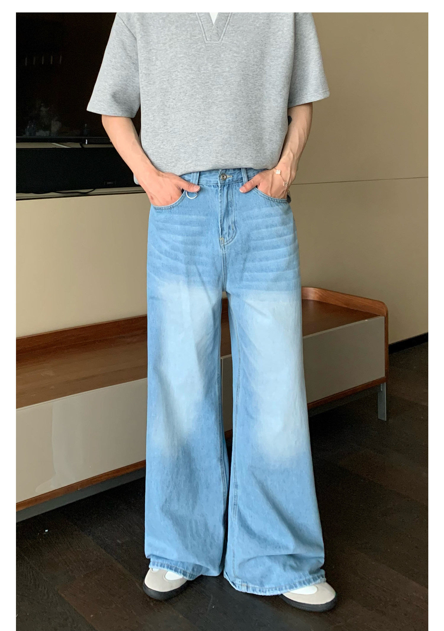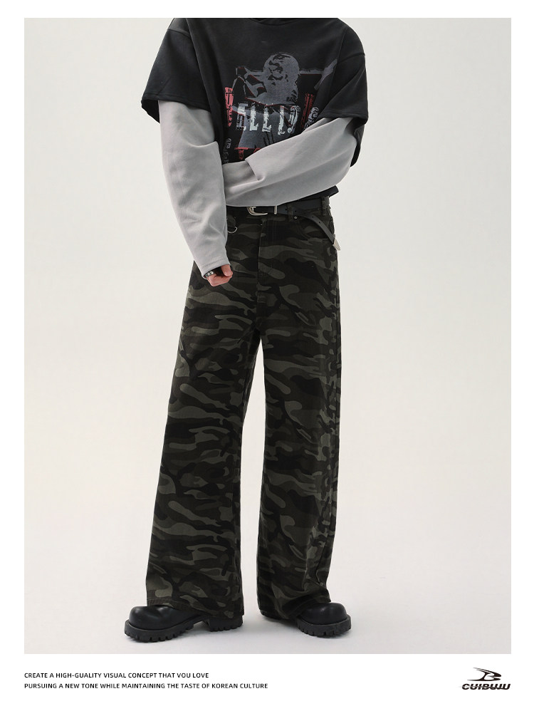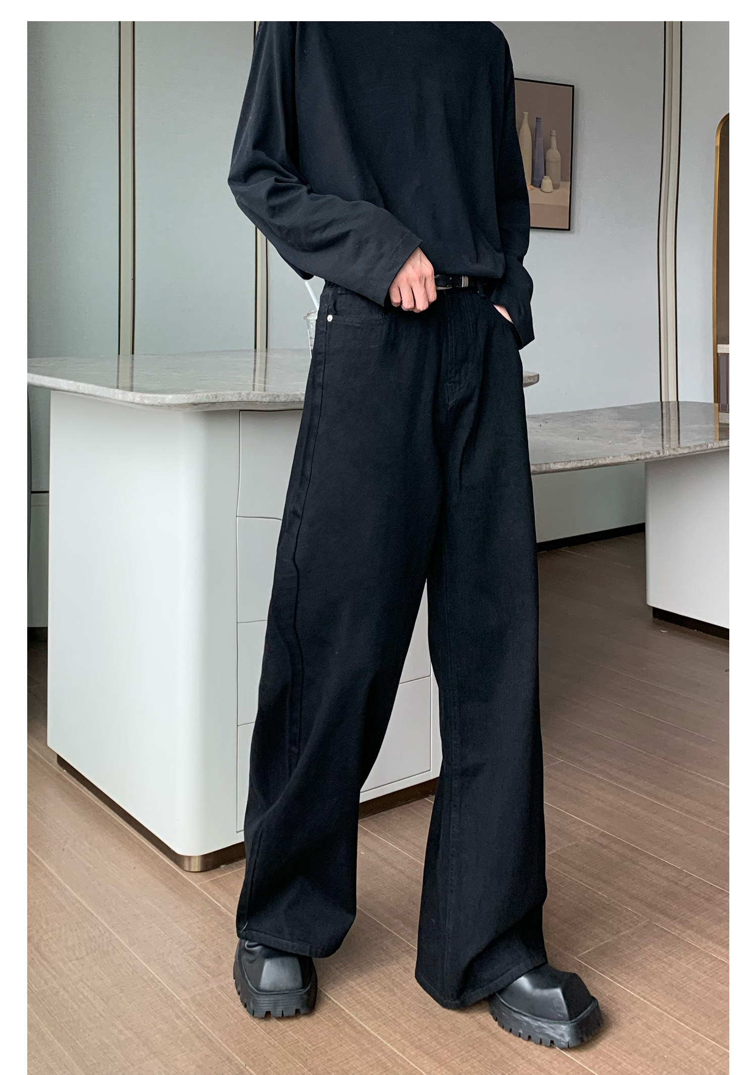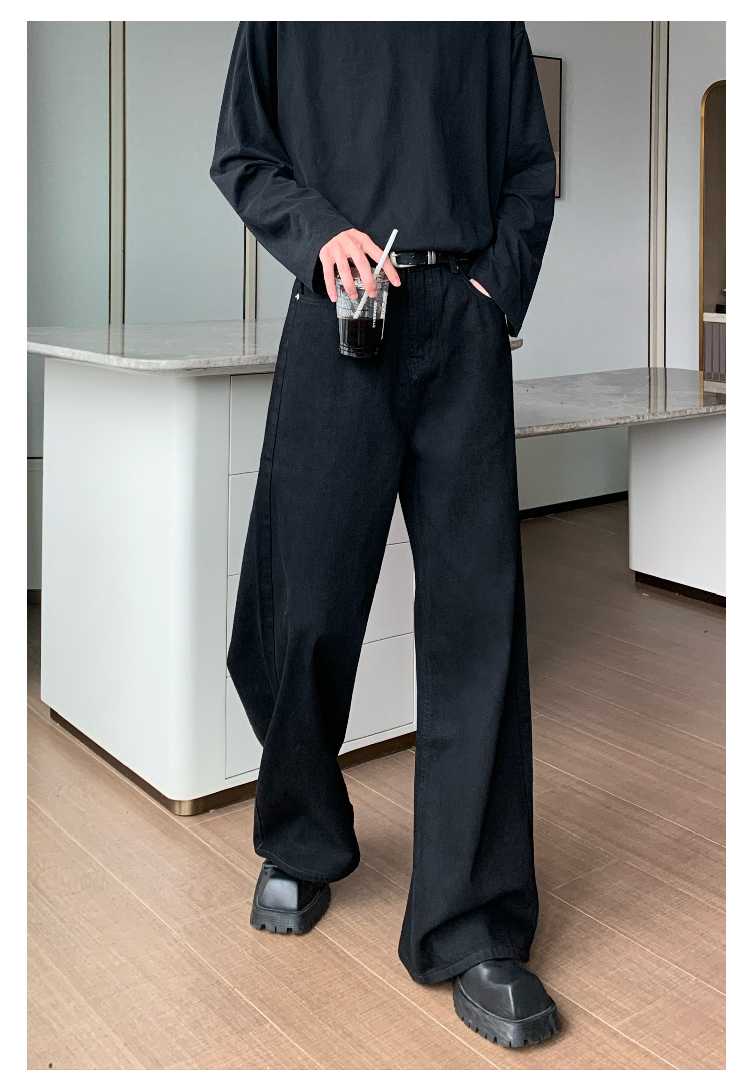 cuibuju 小衆磨破做舊復古水洗直筒牛仔褲男寬鬆百搭濶腿拖地長褲