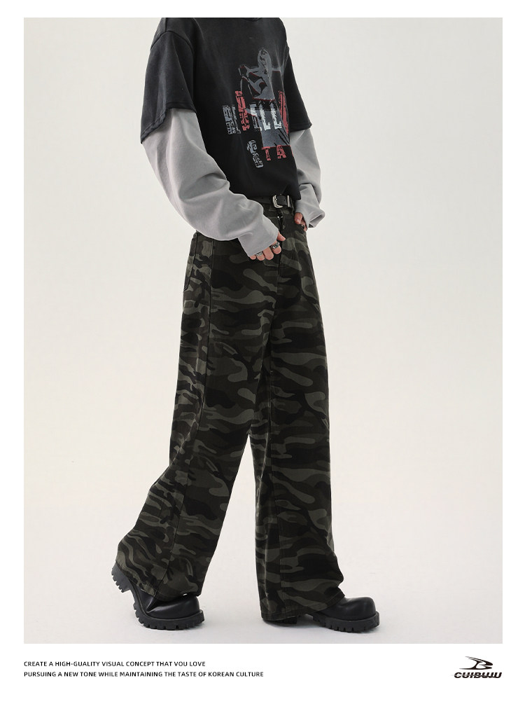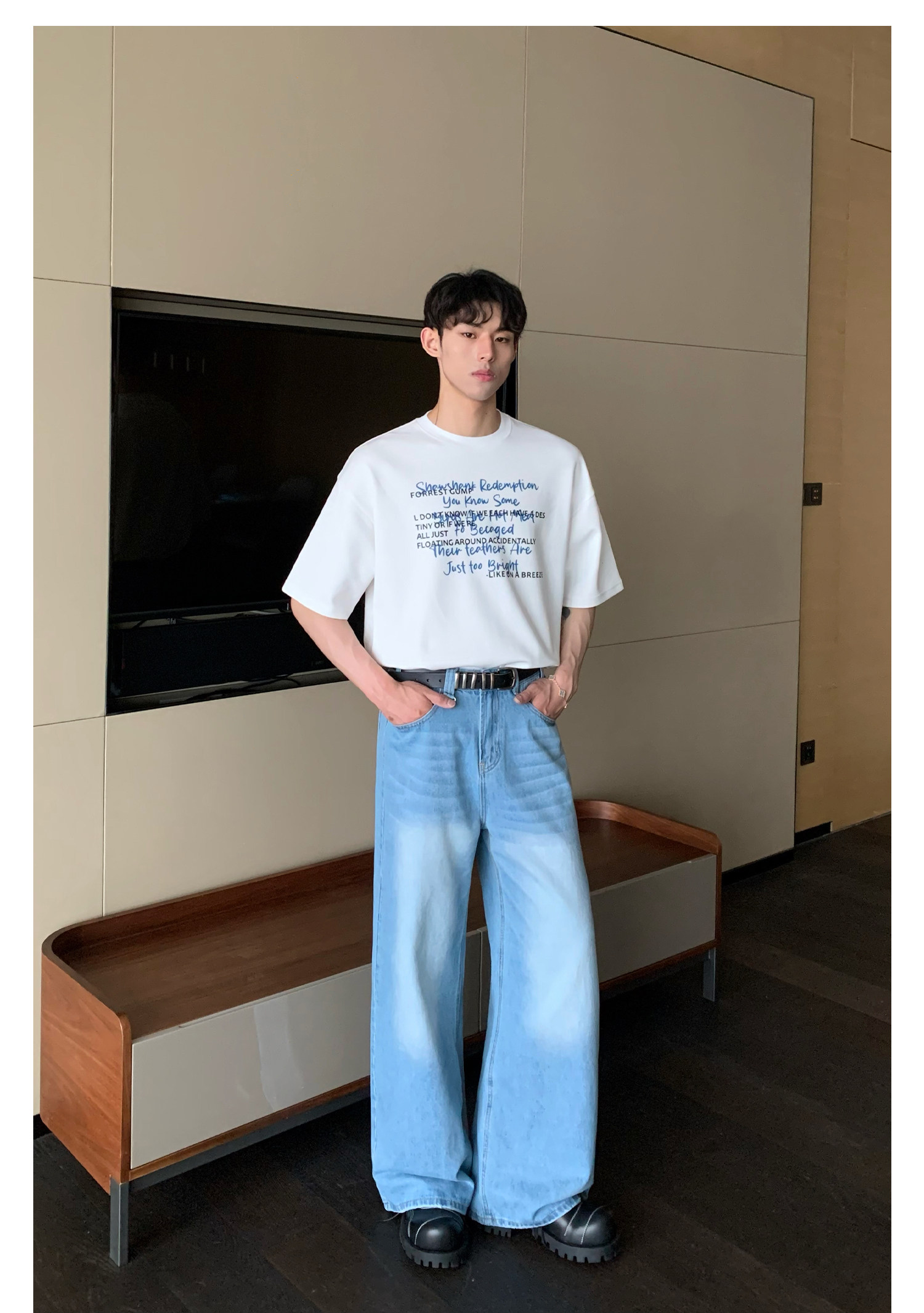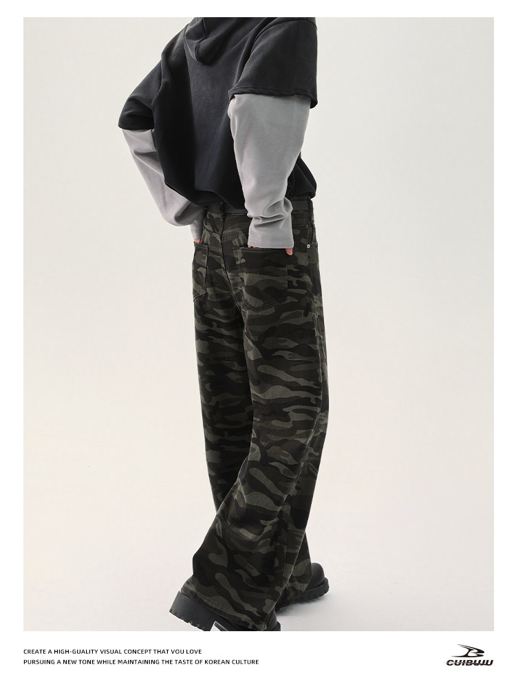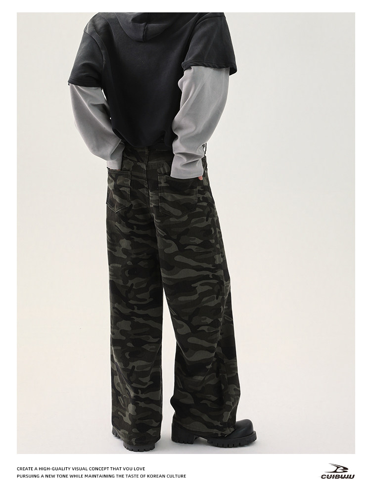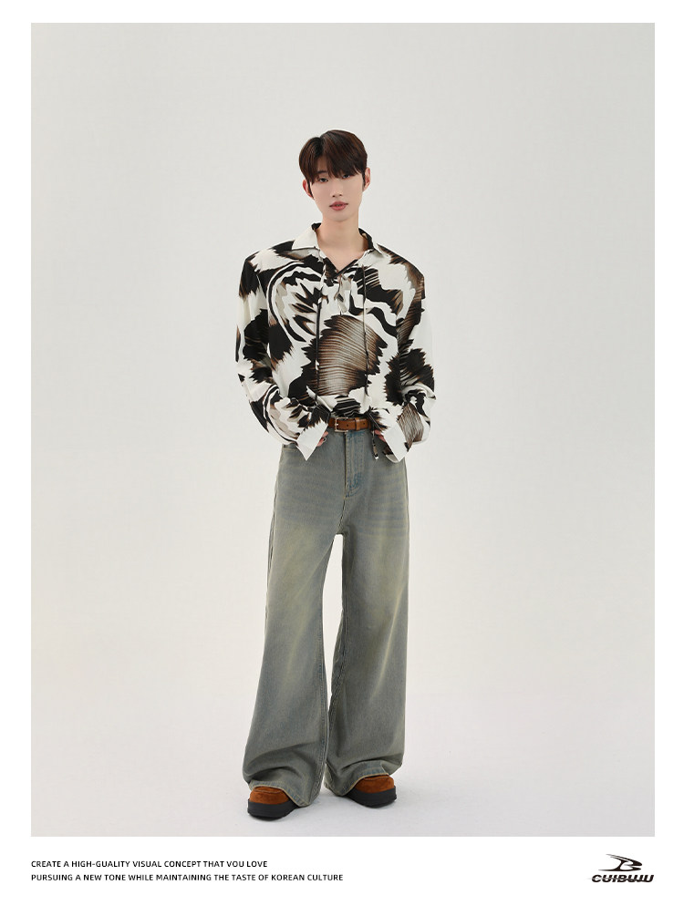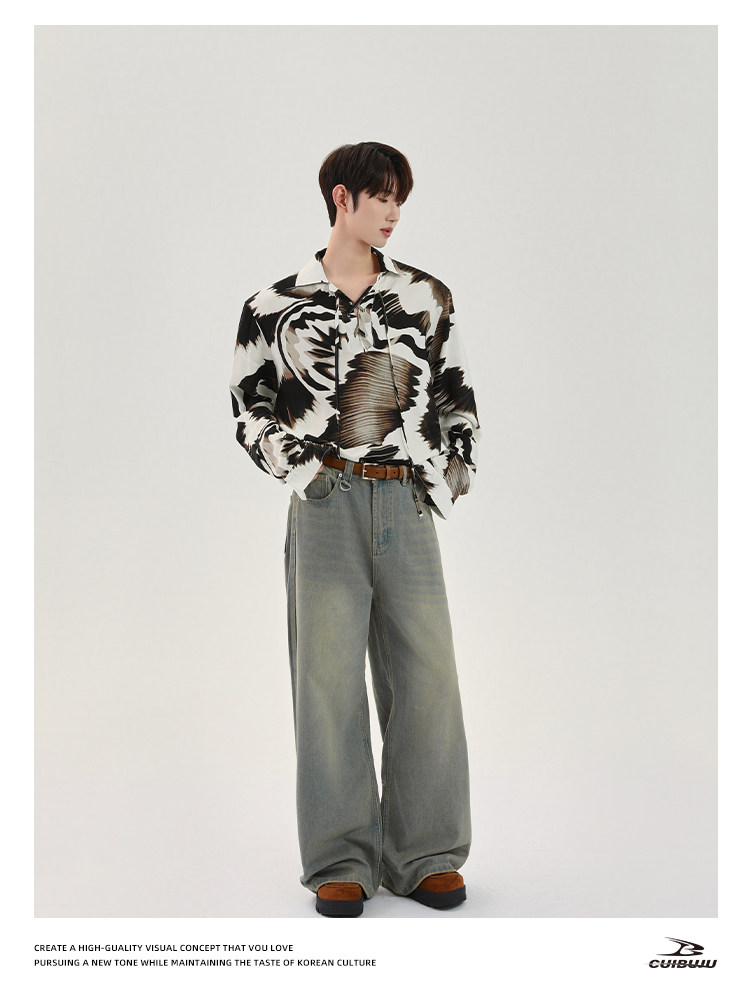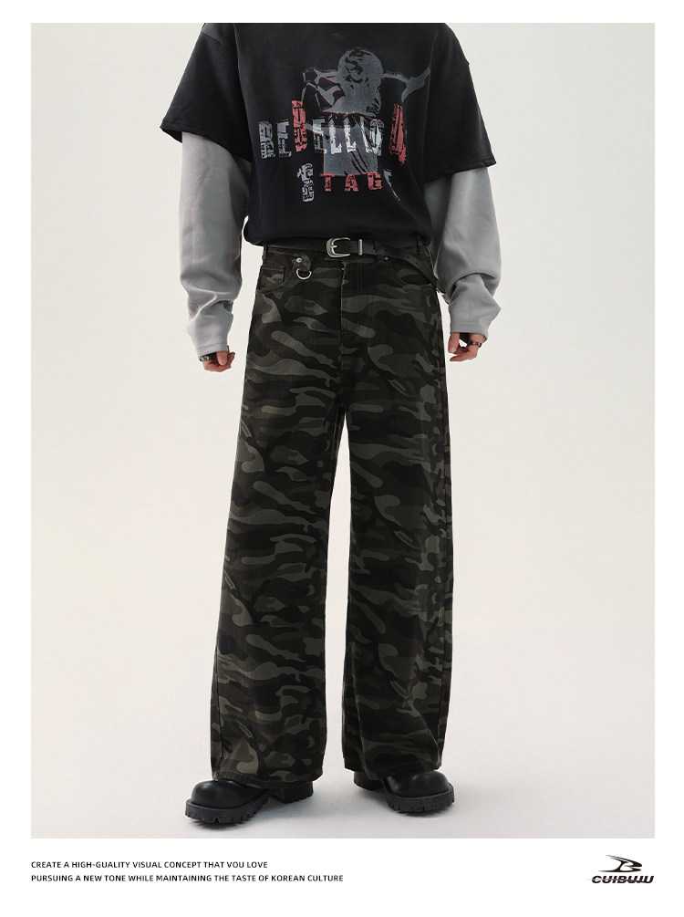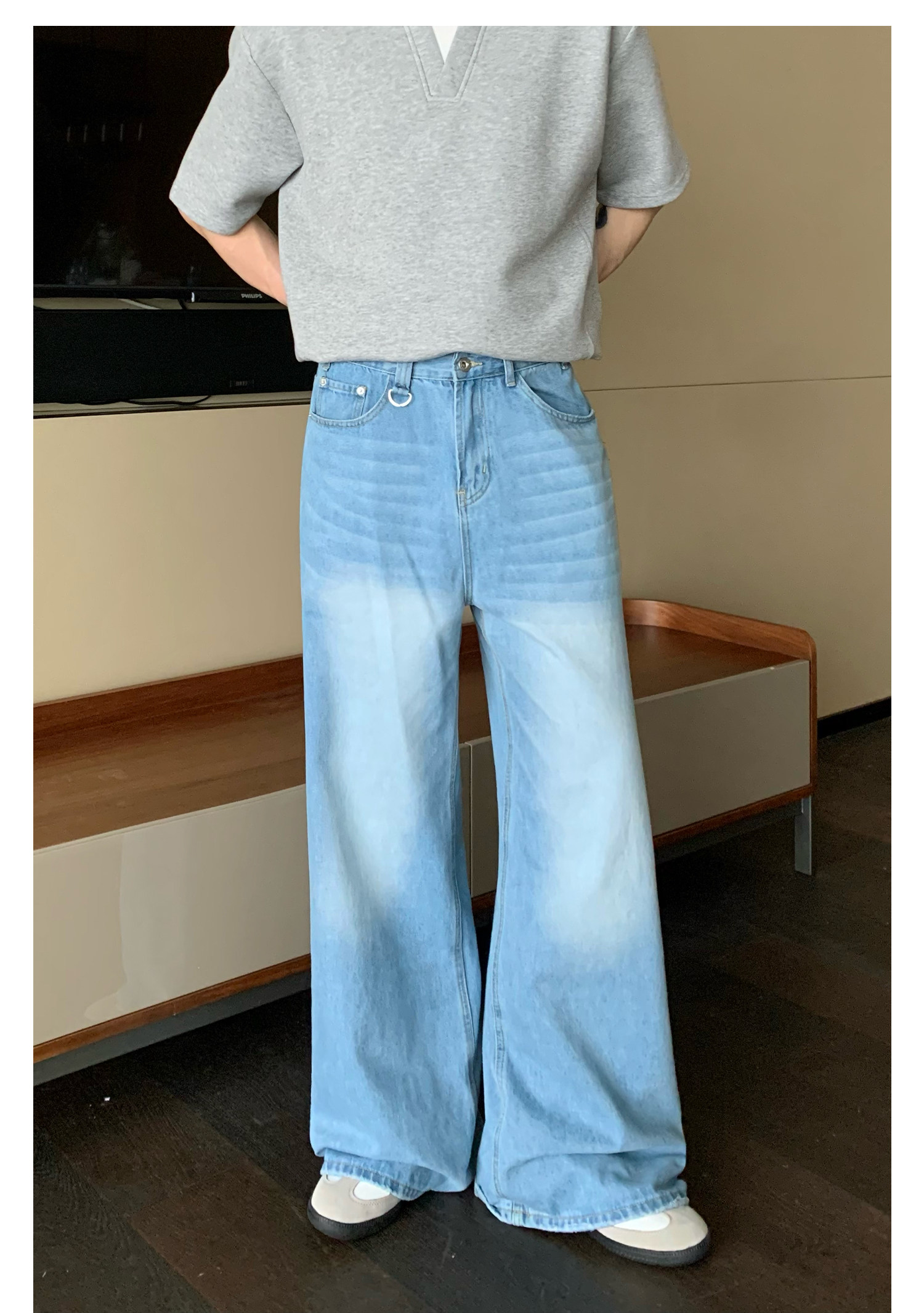 cuibuju 小衆磨破做舊復古水洗直筒牛仔褲男寬鬆百搭濶腿拖地長褲