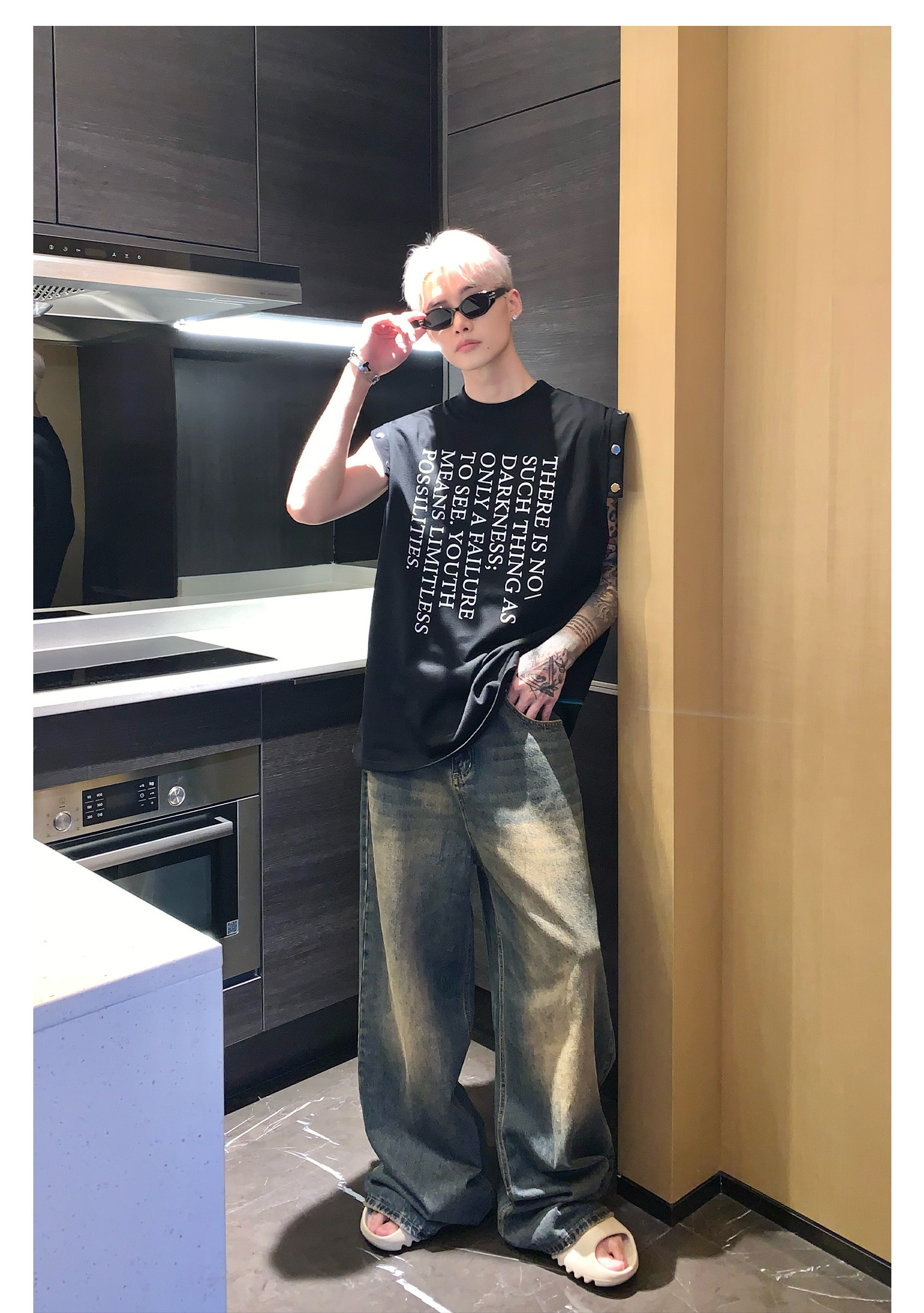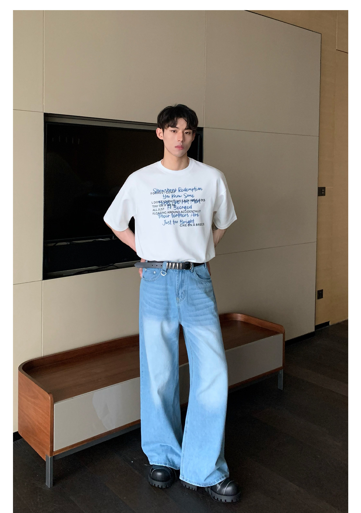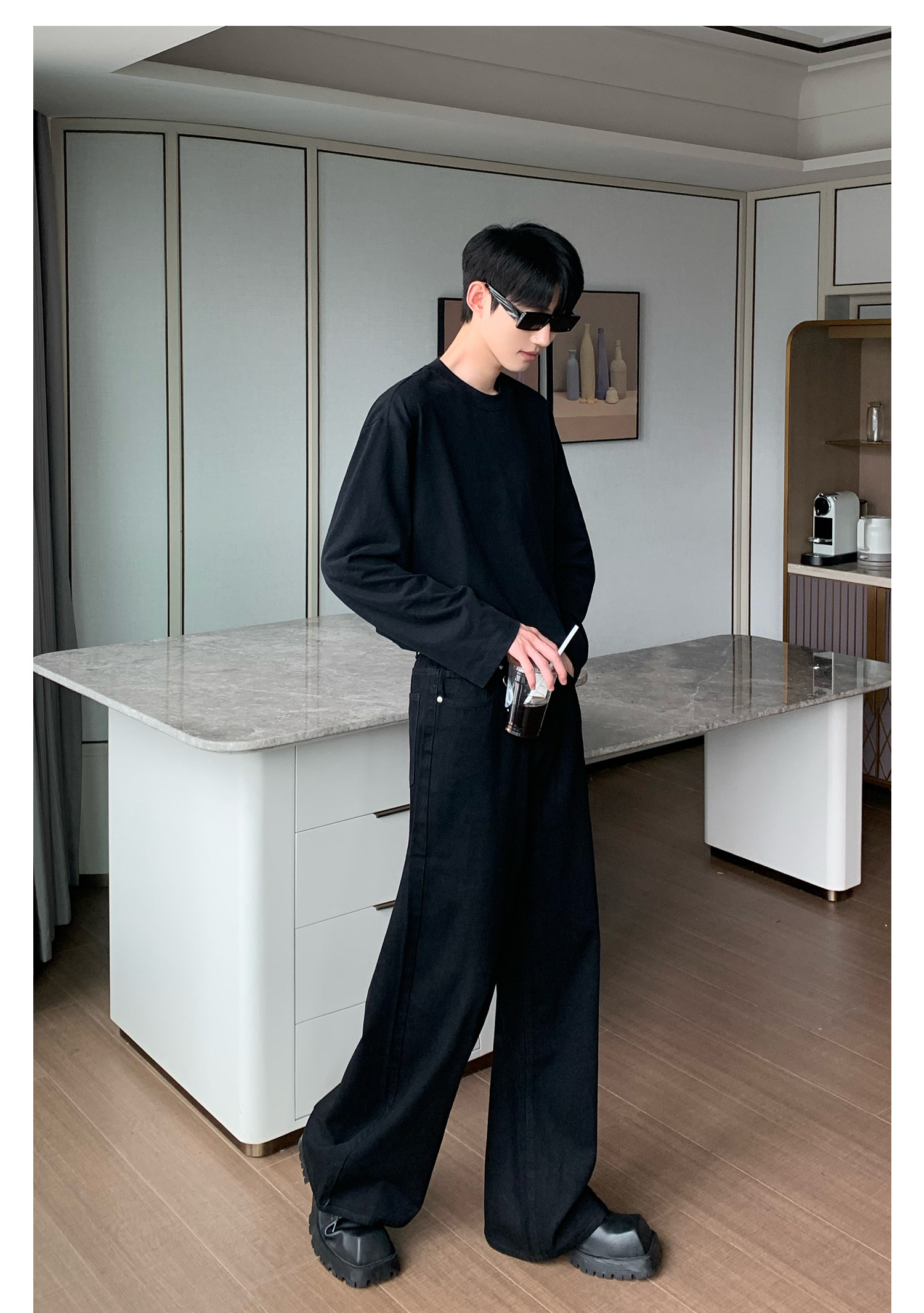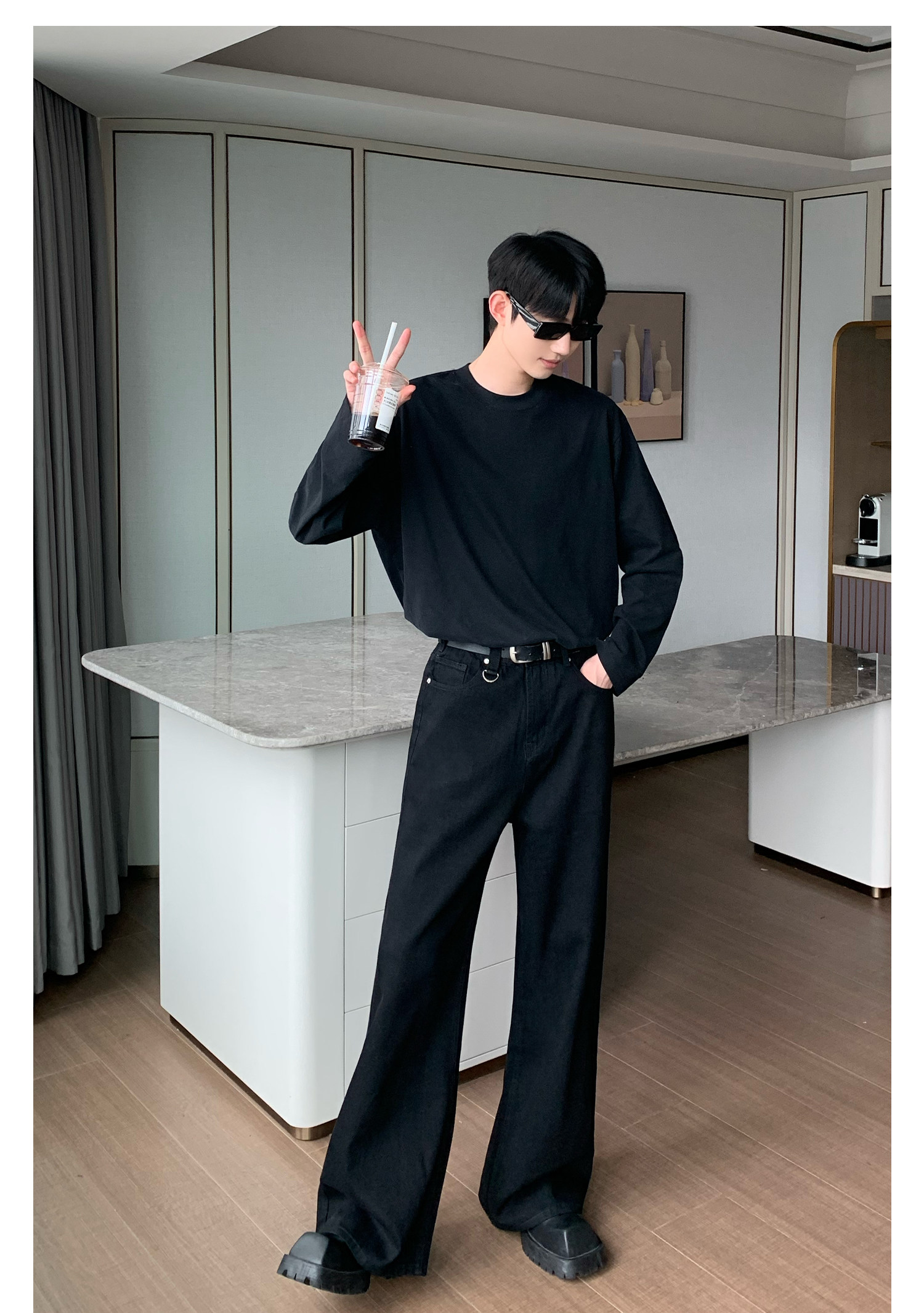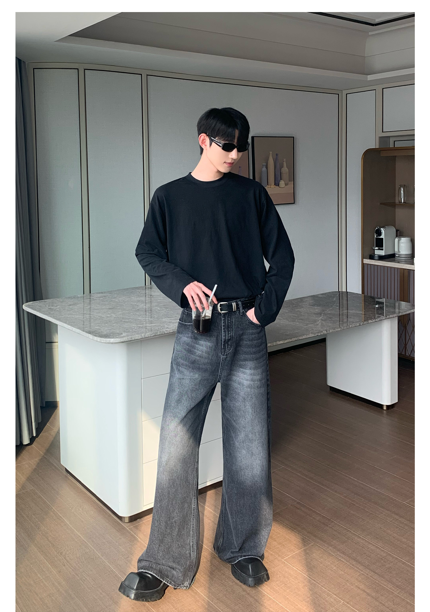 cuibuju 小衆磨破做舊復古水洗直筒牛仔褲男寬鬆百搭濶腿拖地長褲