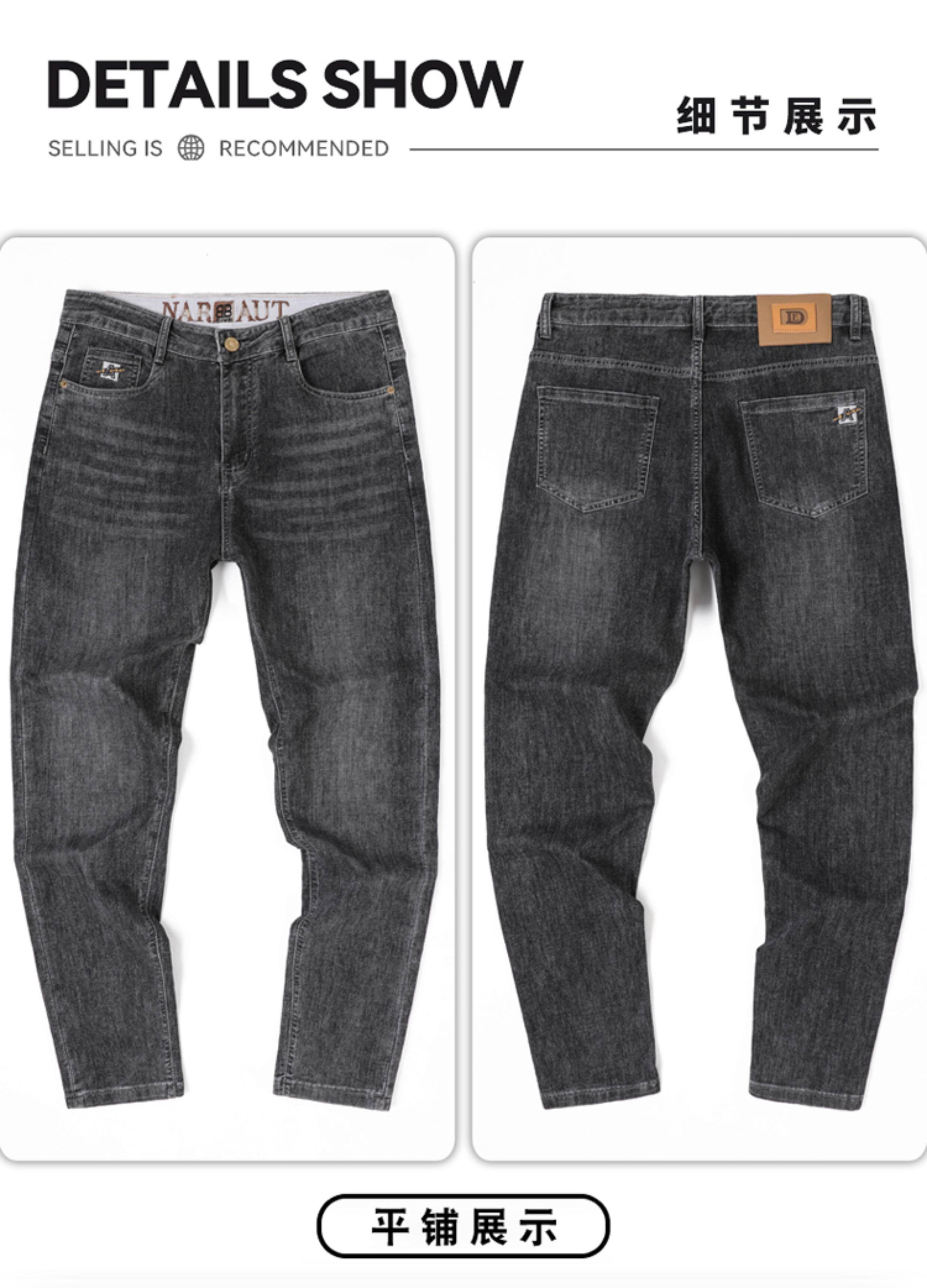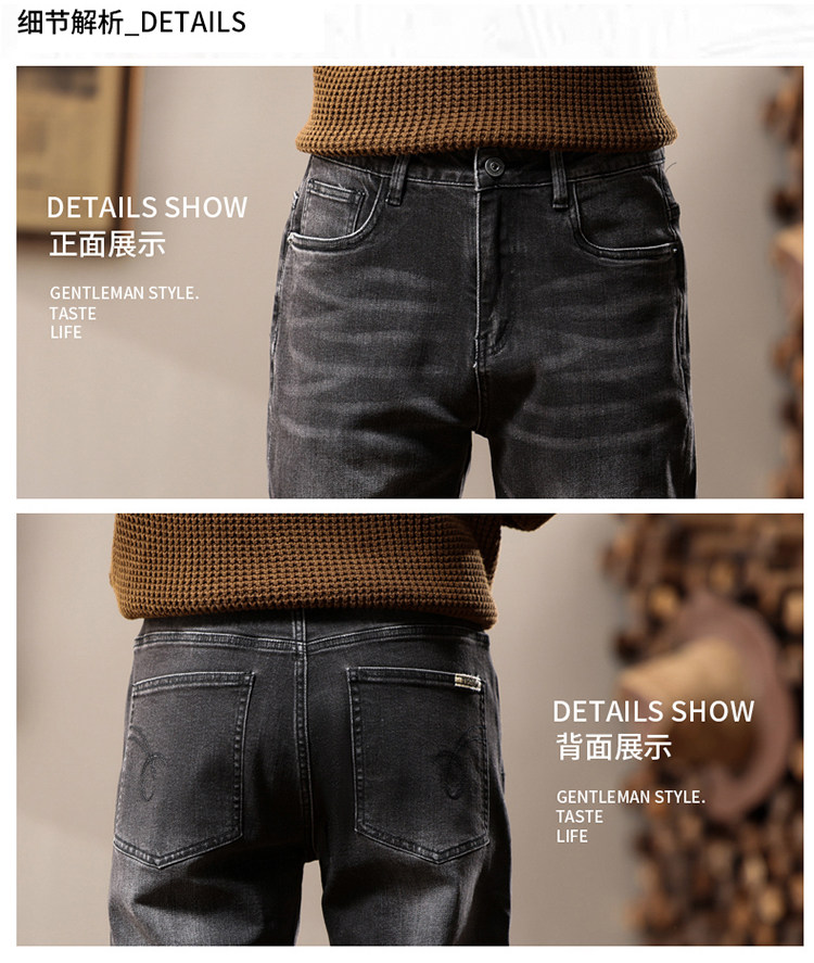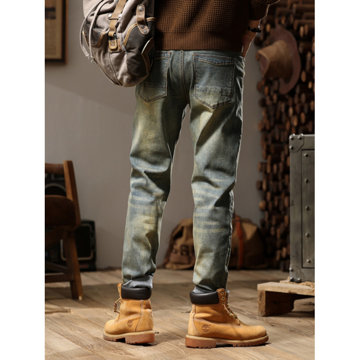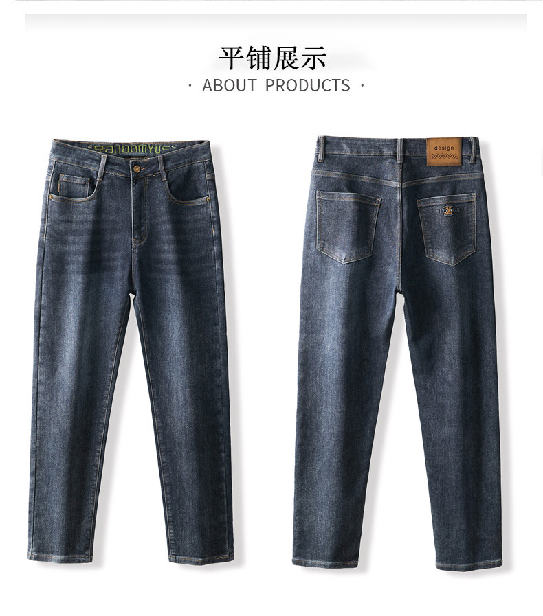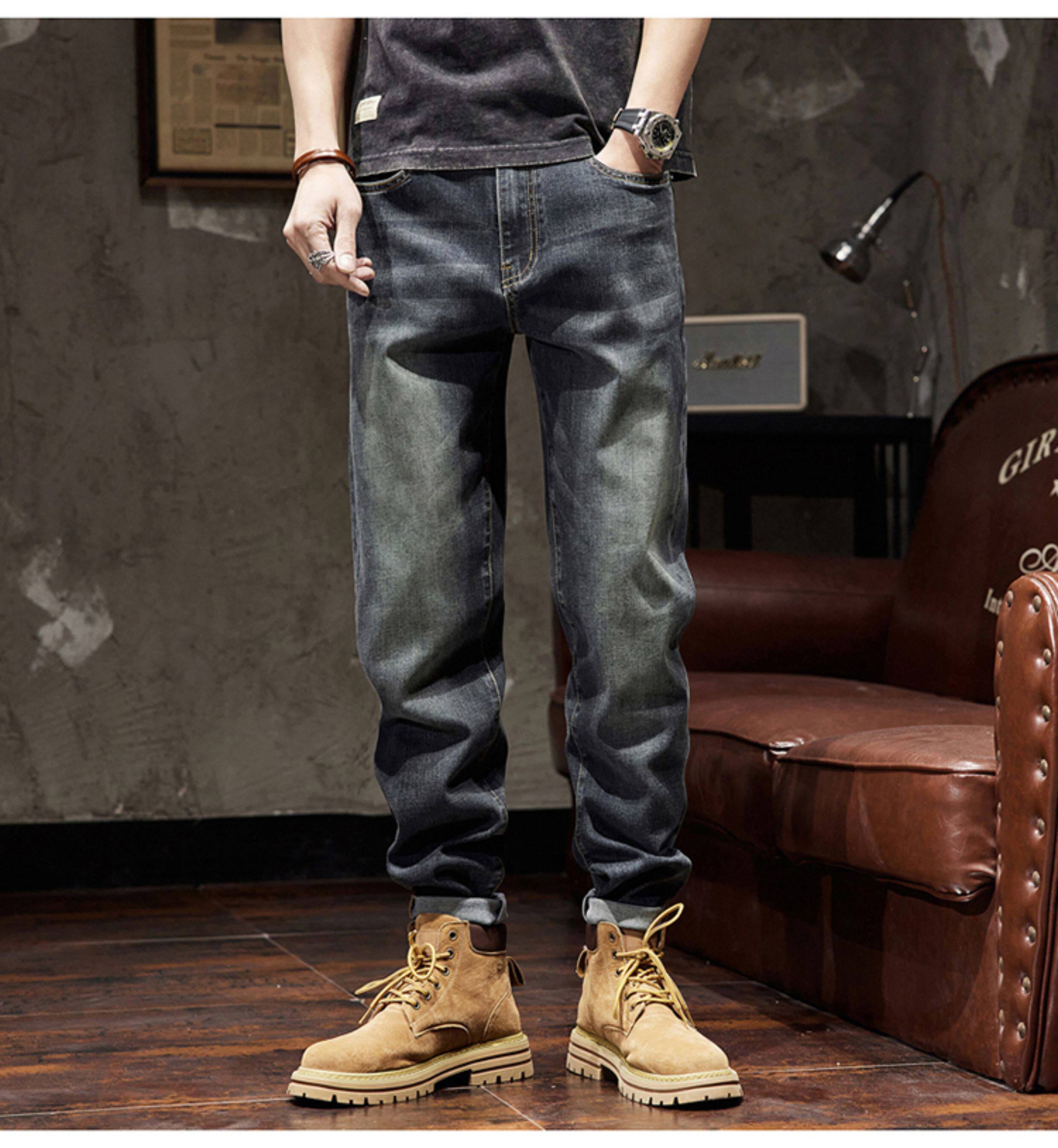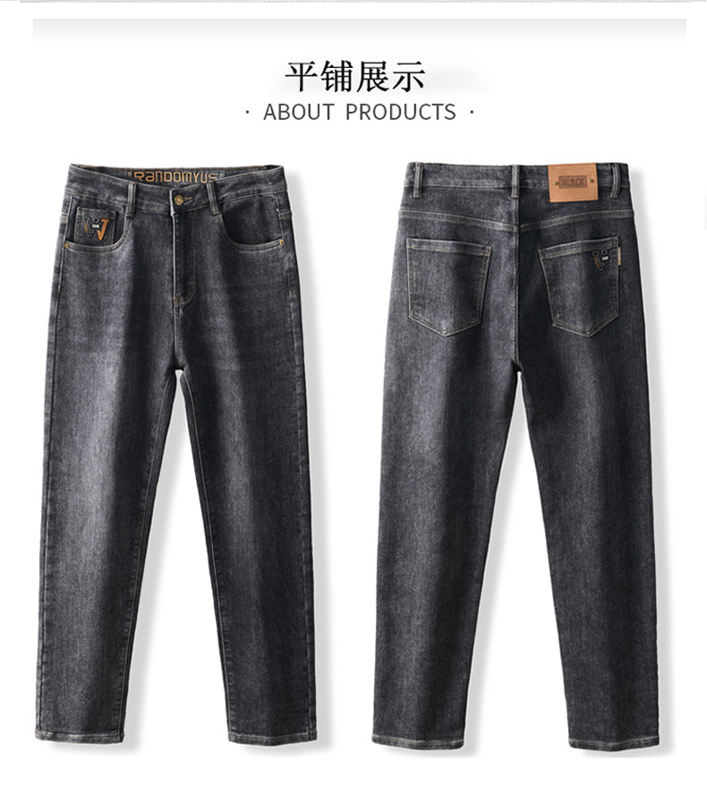 美式復古牛仔褲男彈力黃泥水洗胖子大碼修身直筒小腳加絨肥佬長褲