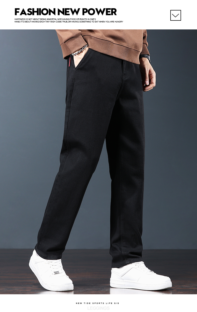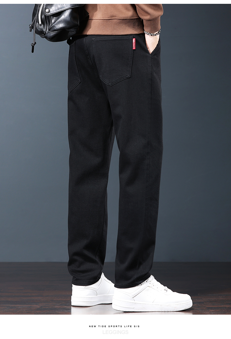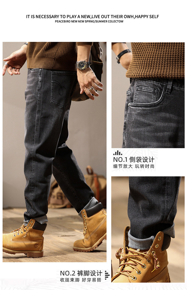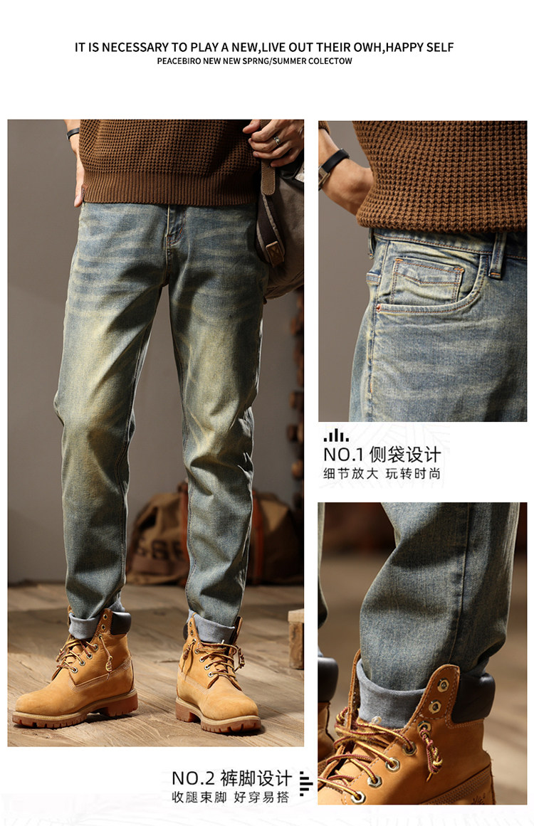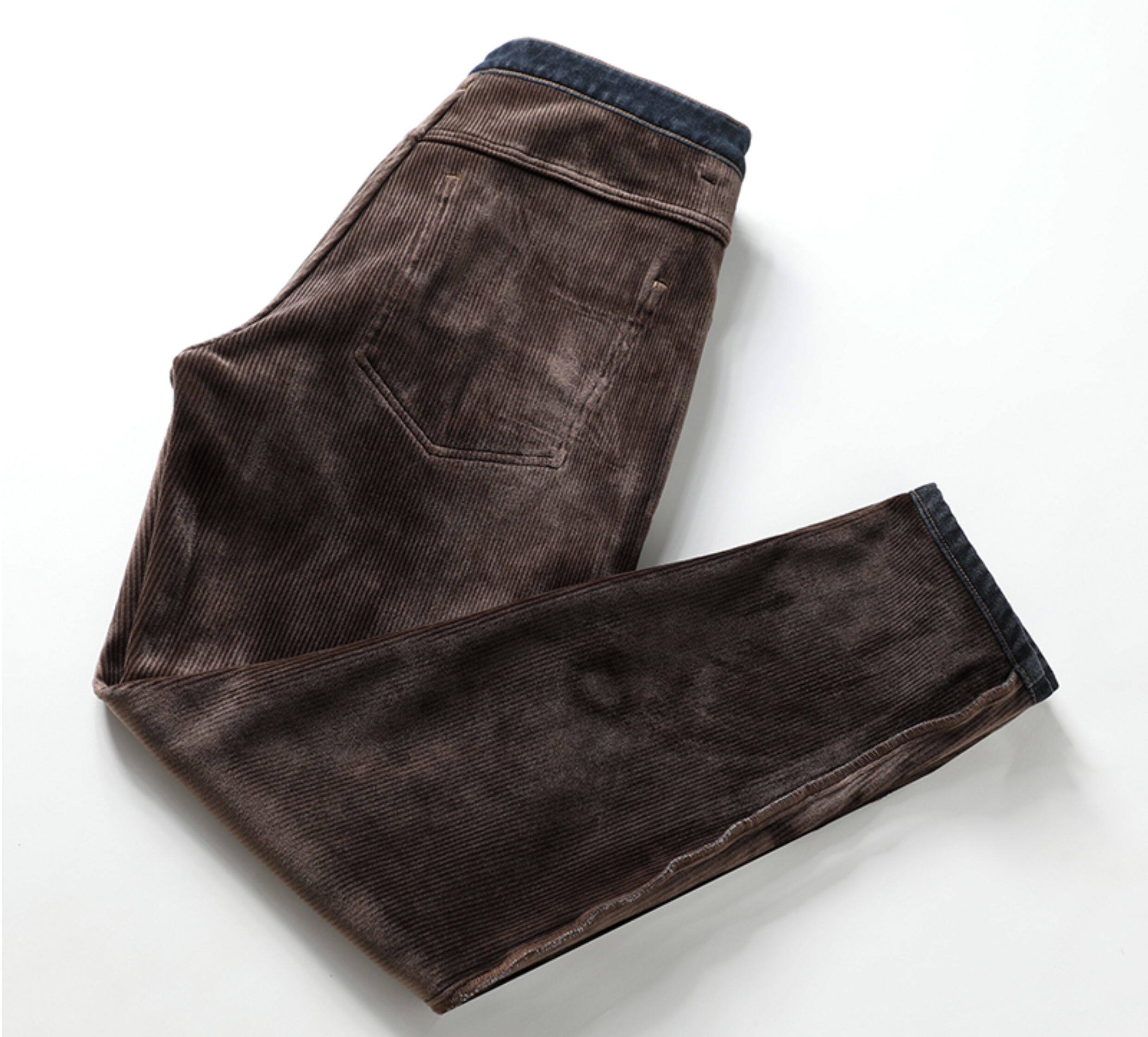 美式復古牛仔褲男彈力黃泥水洗胖子大碼修身直筒小腳加絨肥佬長褲