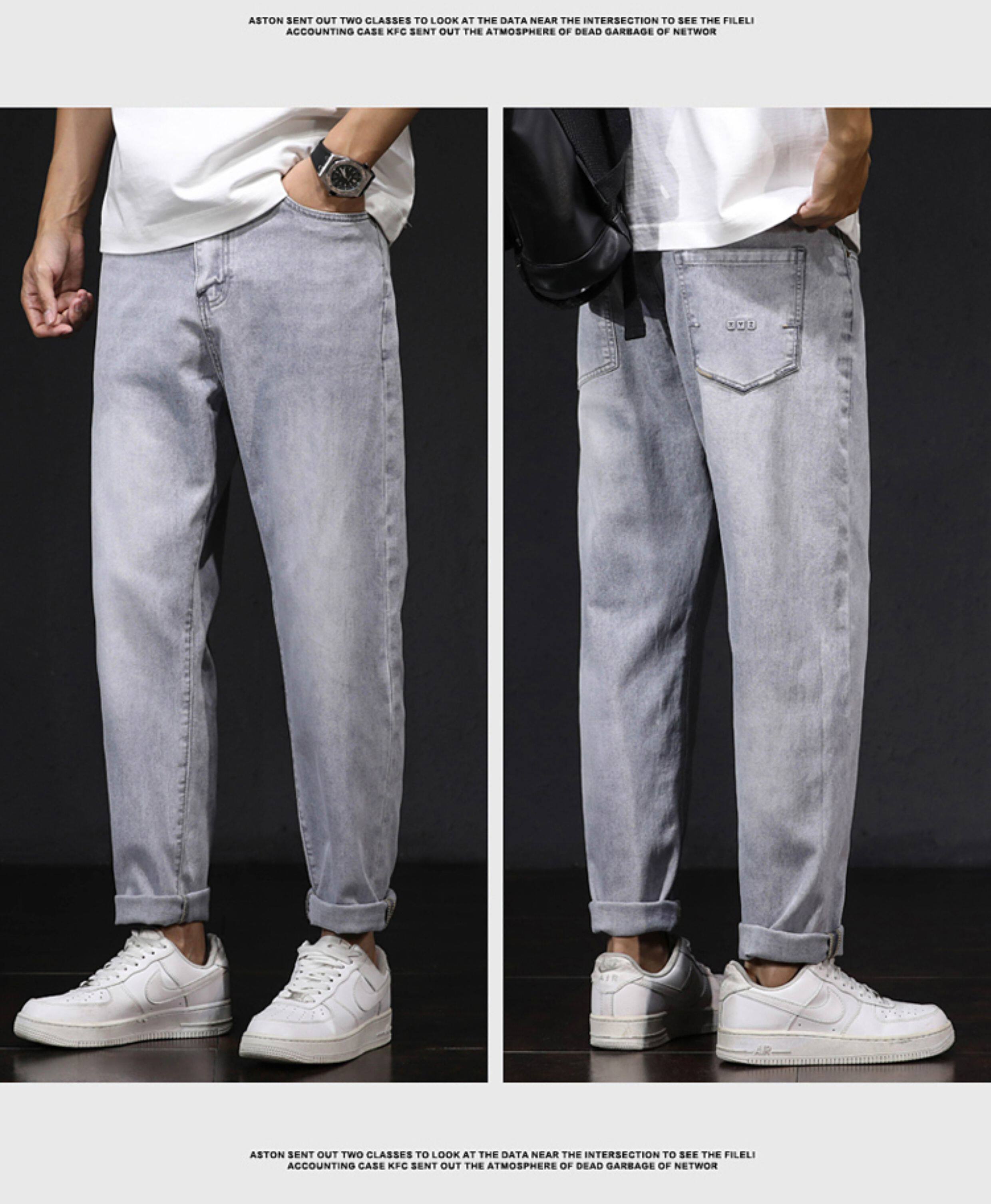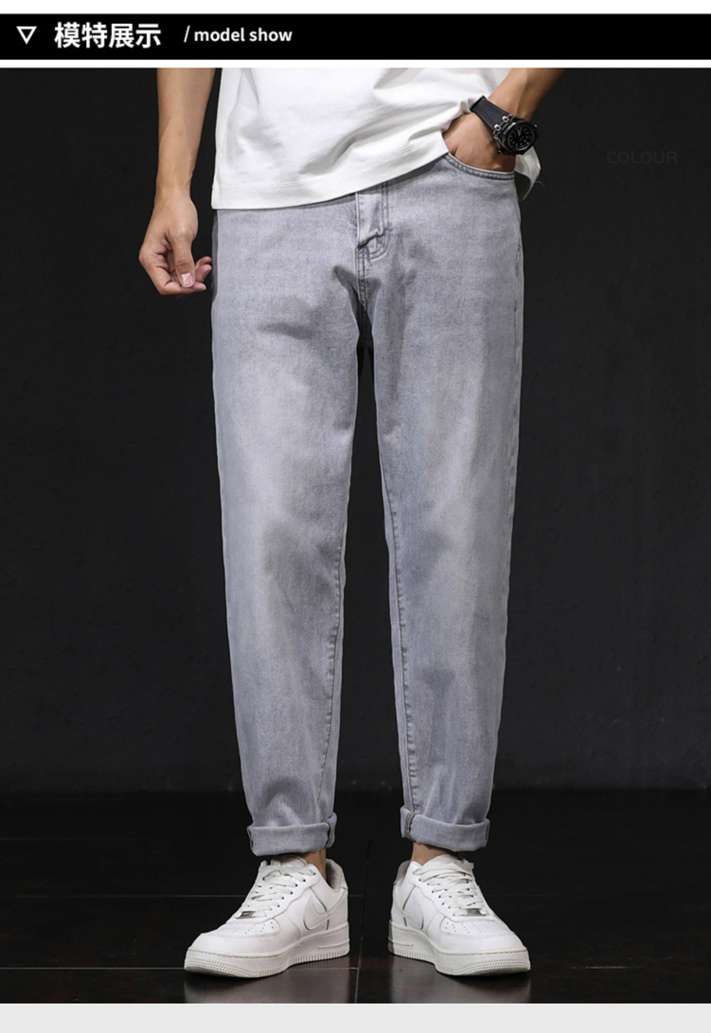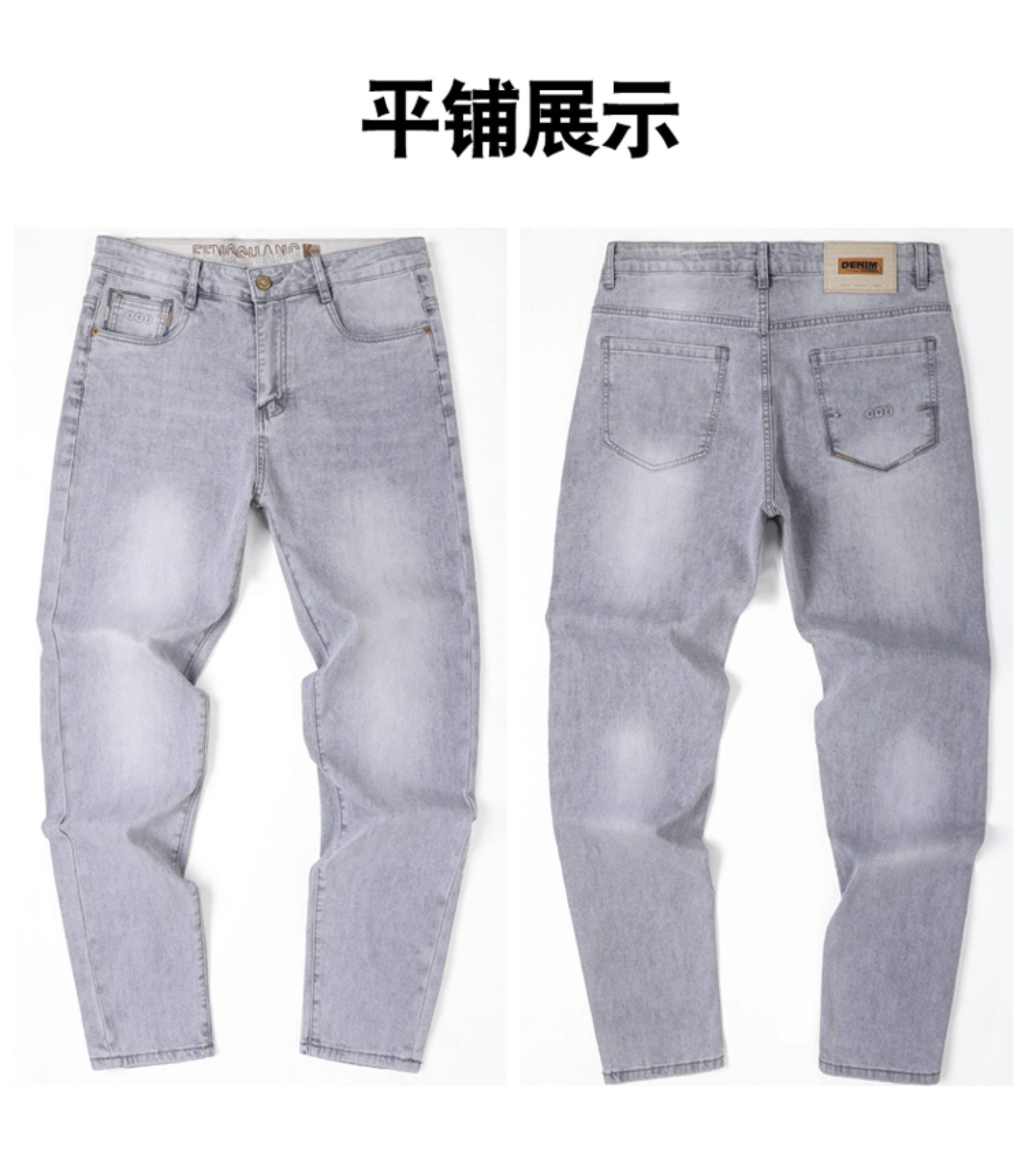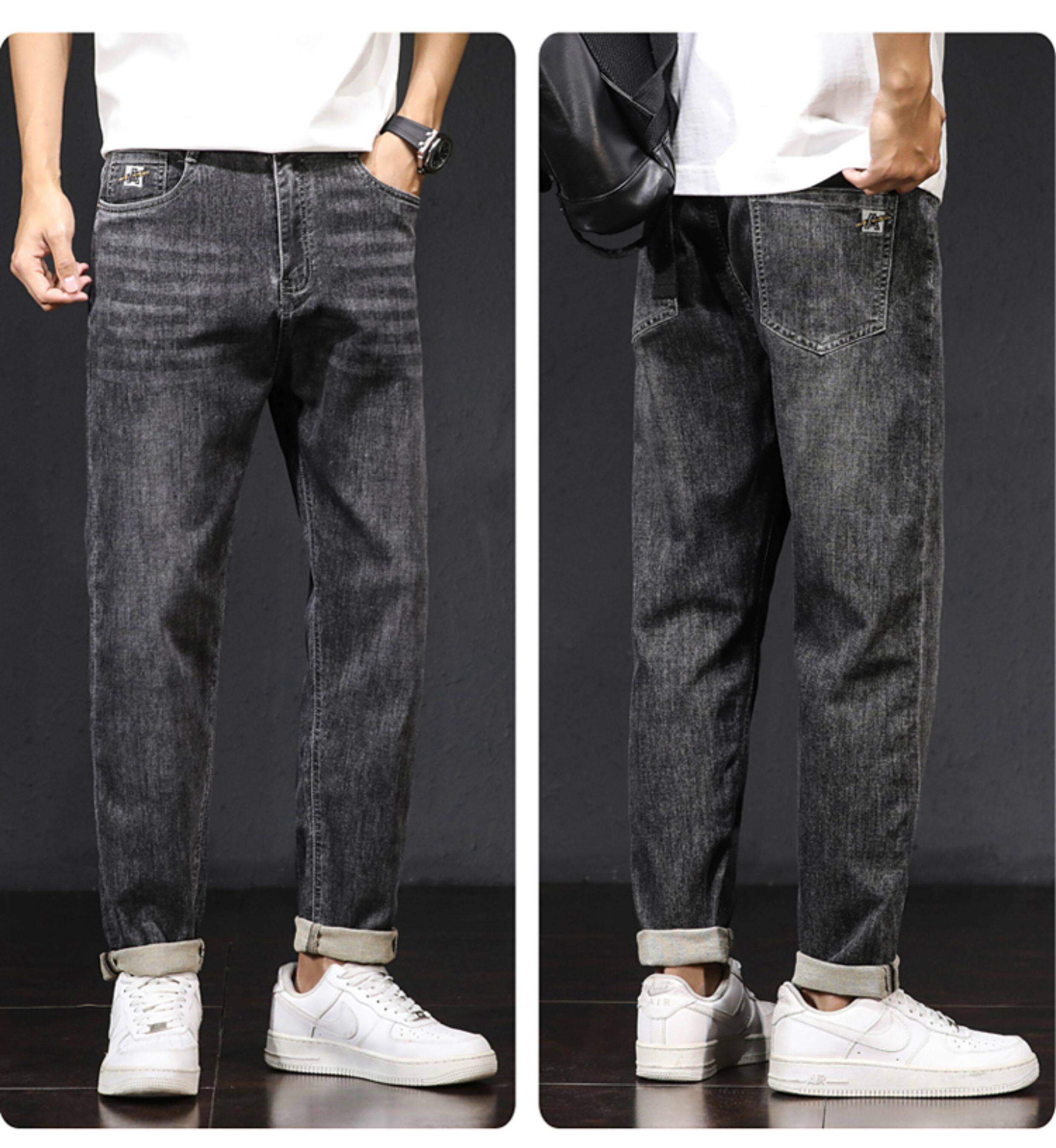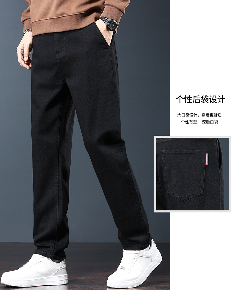 美式復古牛仔褲男彈力黃泥水洗胖子大碼修身直筒小腳加絨肥佬長褲