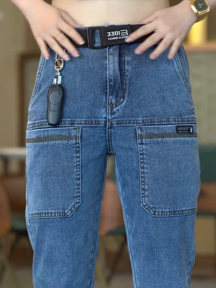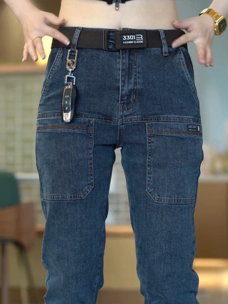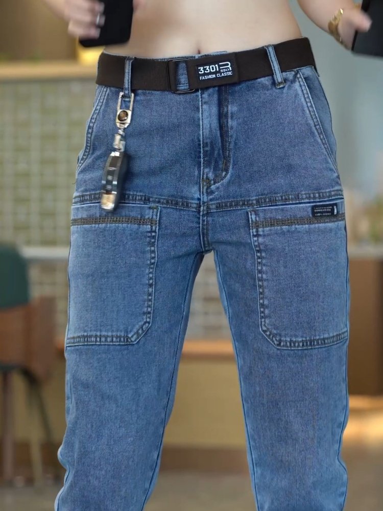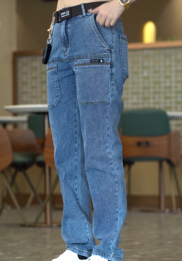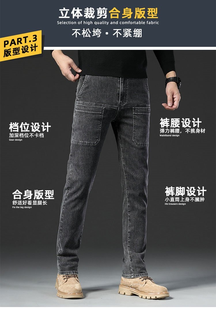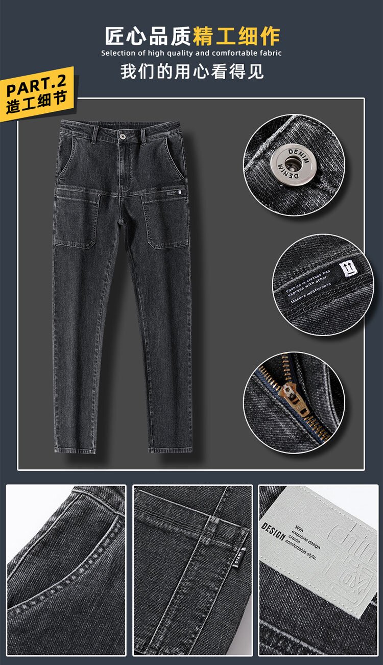 潮流六兜新品男士牛仔褲春季時尚多口袋直筒長工裝褲彈力寬鬆男褲