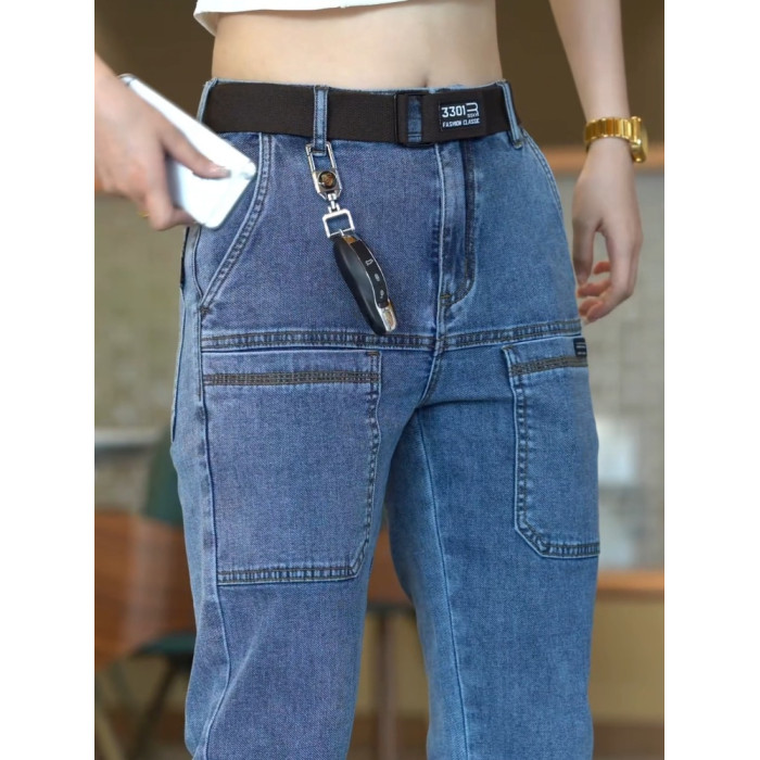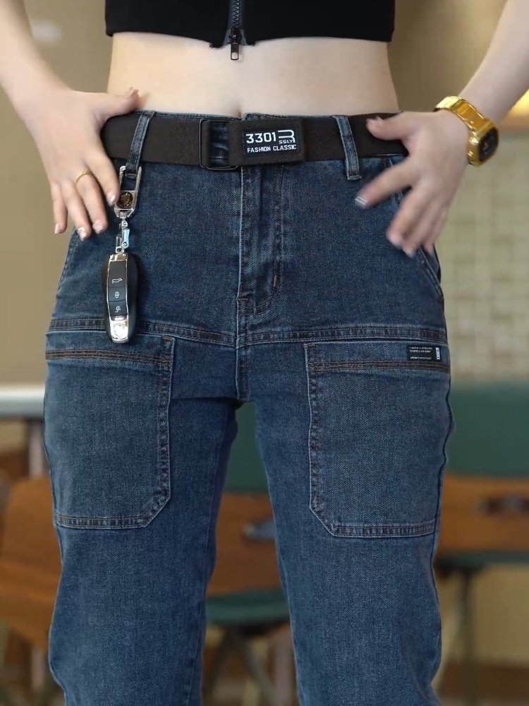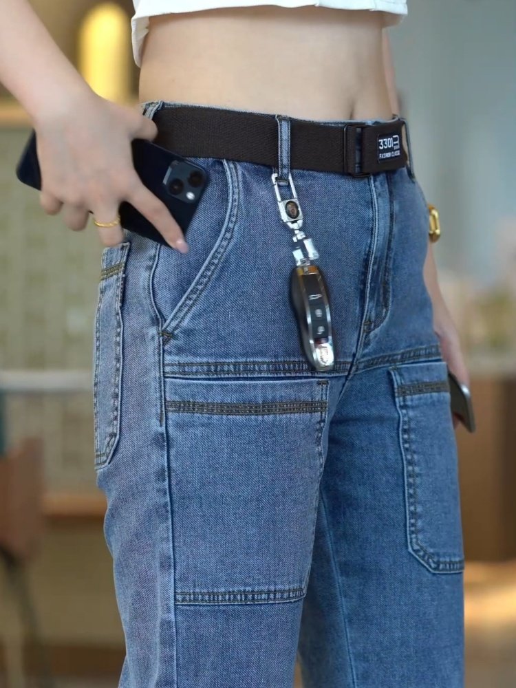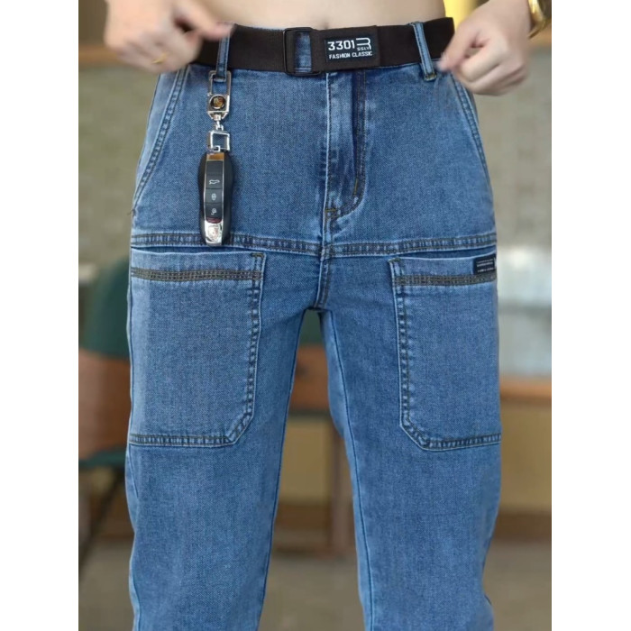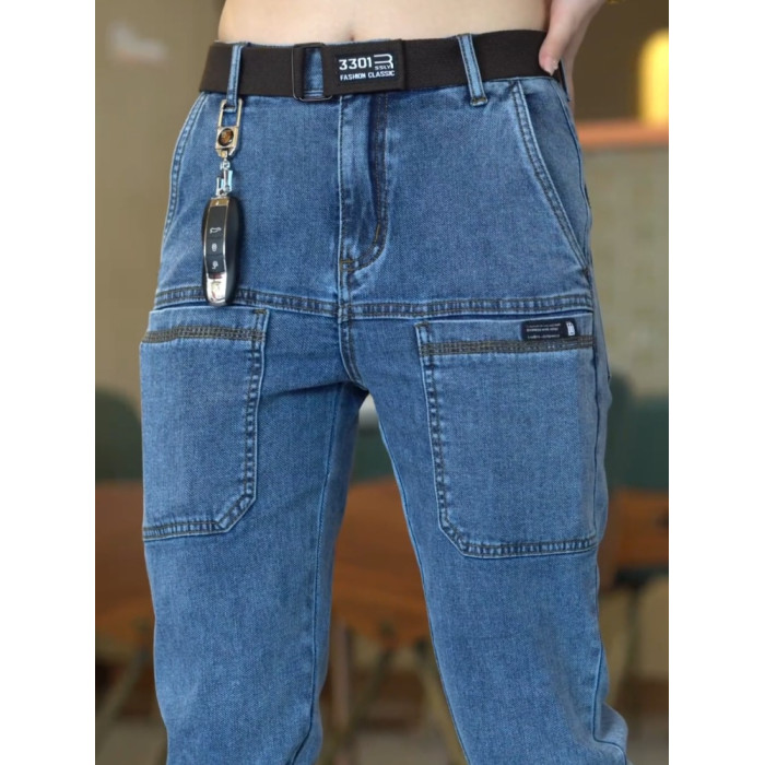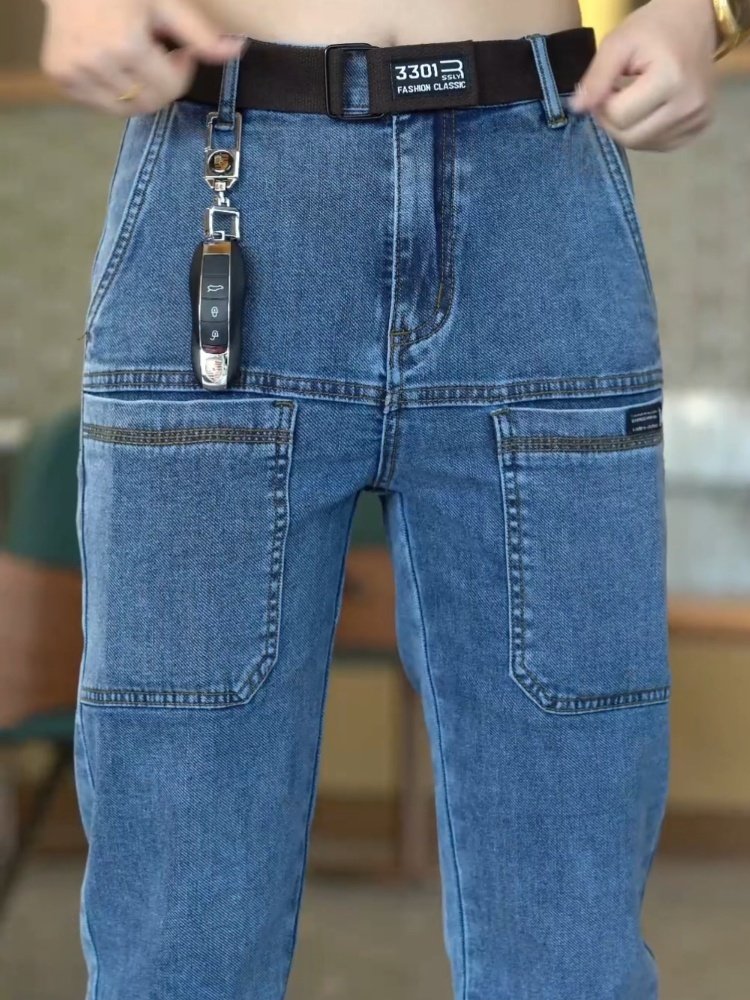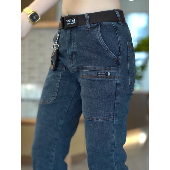 潮流六兜新品男士牛仔褲春季時尚多口袋直筒長工裝褲彈力寬鬆男褲