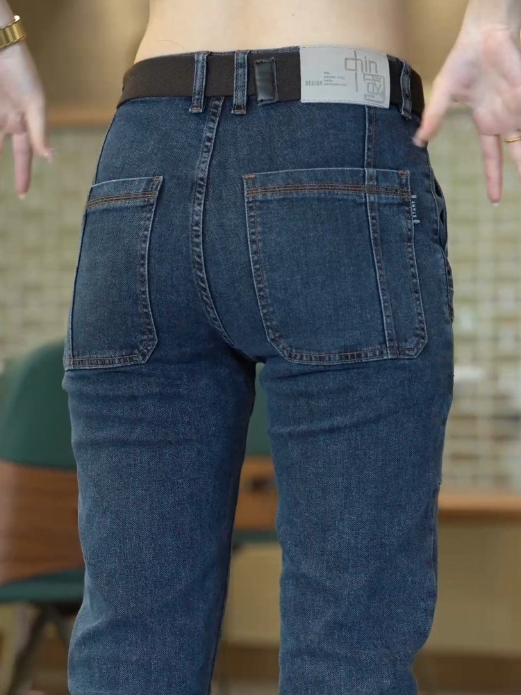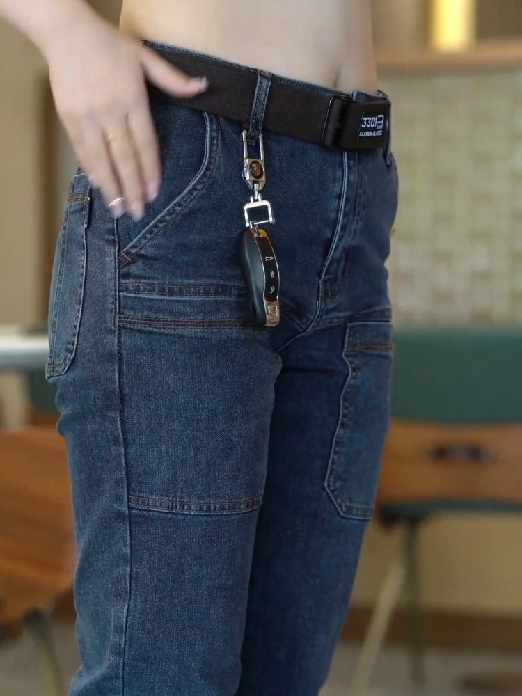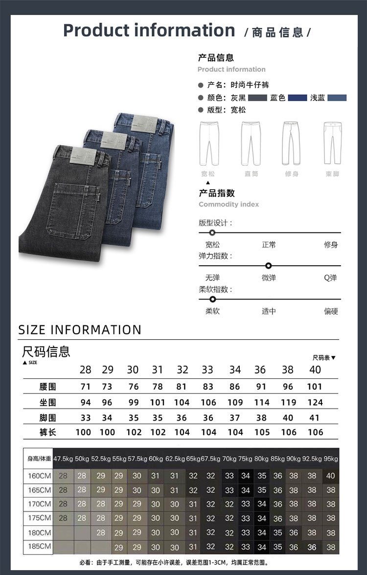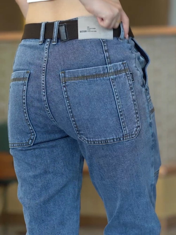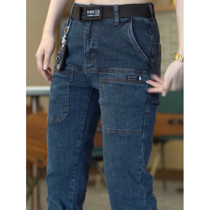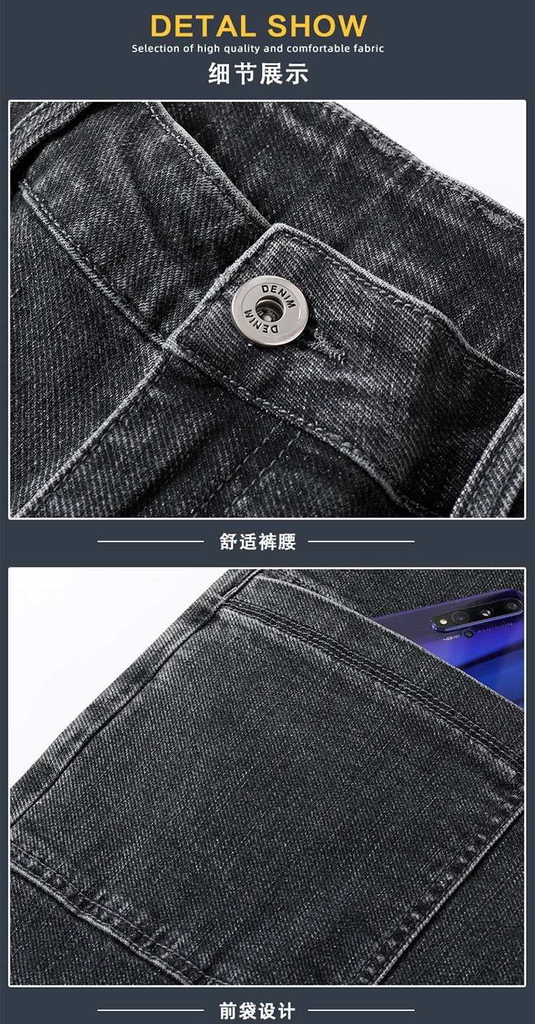 潮流六兜新品男士牛仔褲春季時尚多口袋直筒長工裝褲彈力寬鬆男褲