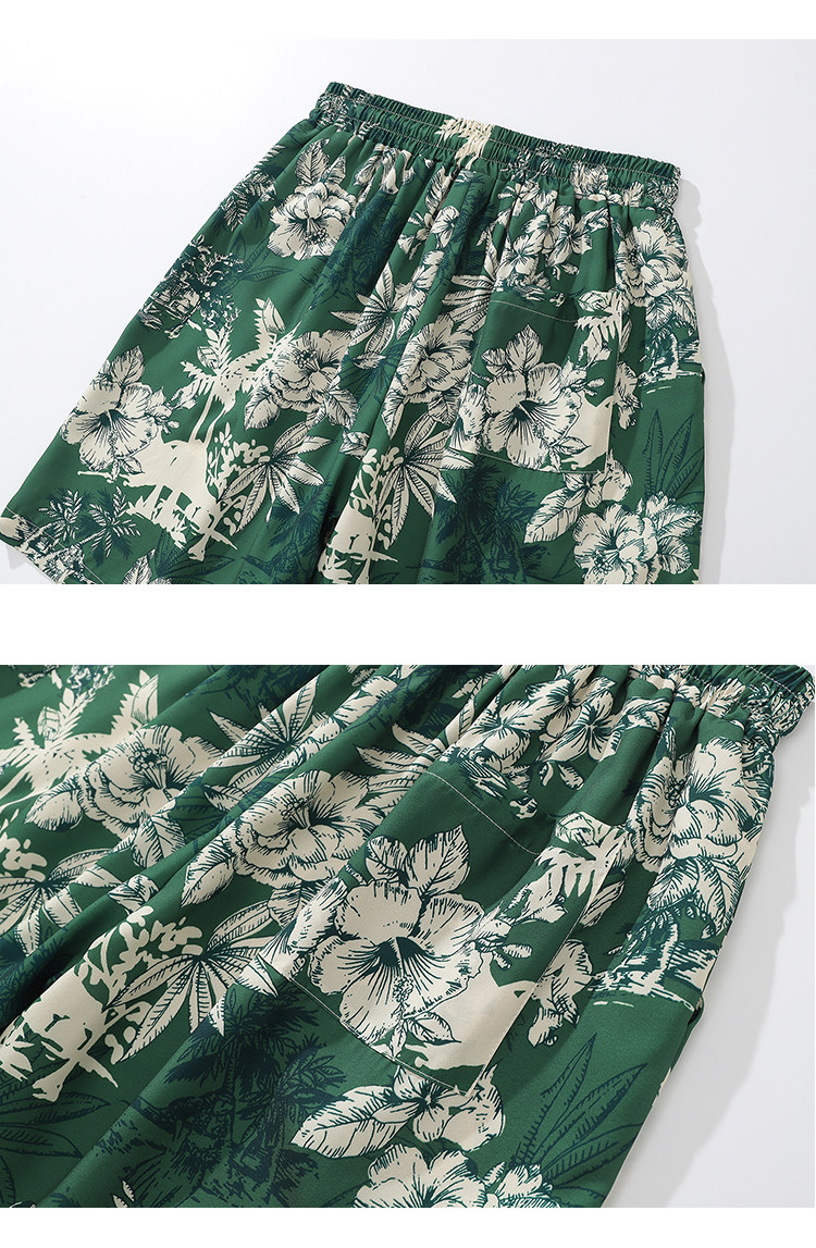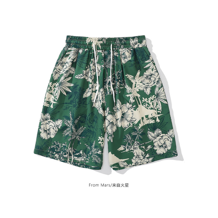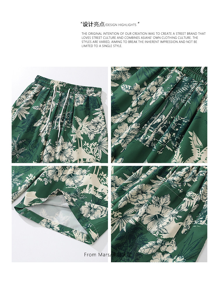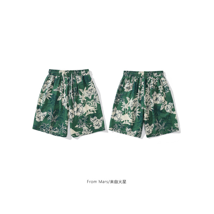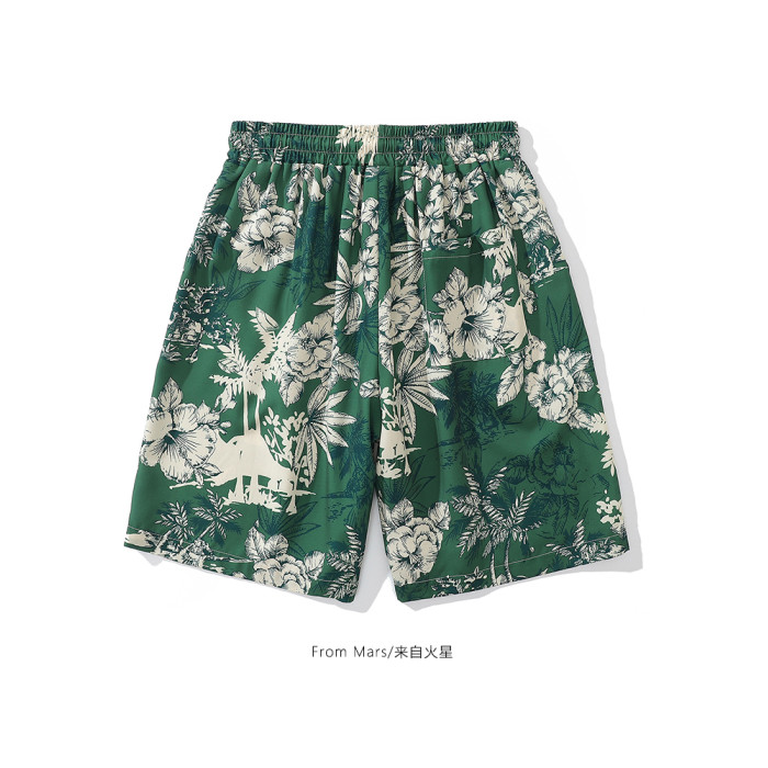 From Mars茂密叢林 國潮復古花卉印花直筒短褲寬鬆夏威夷沙灘褲bf