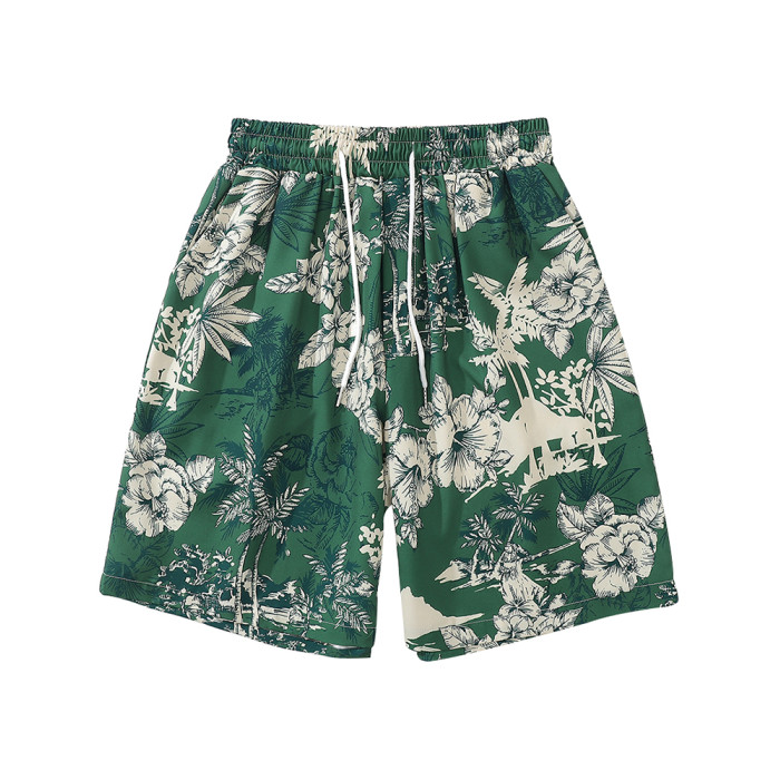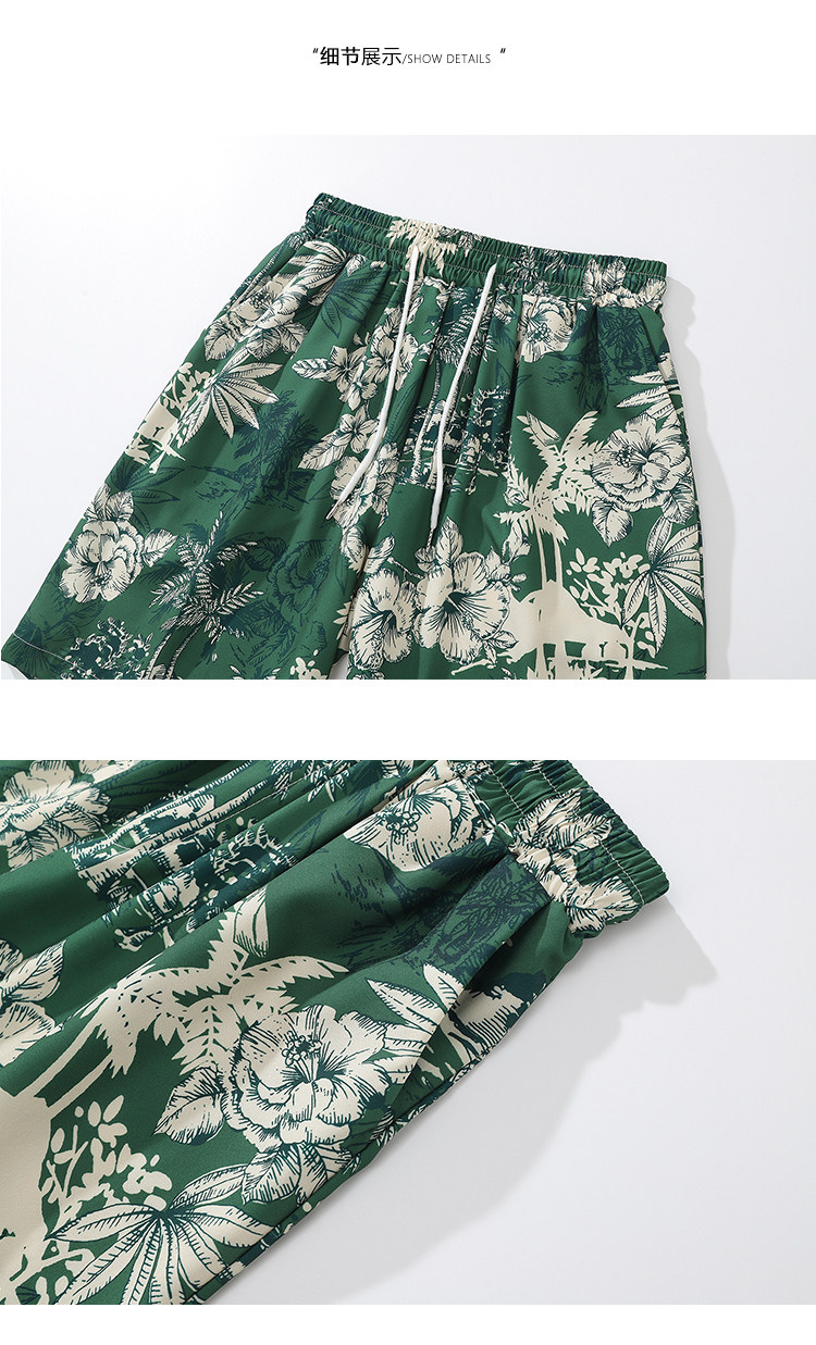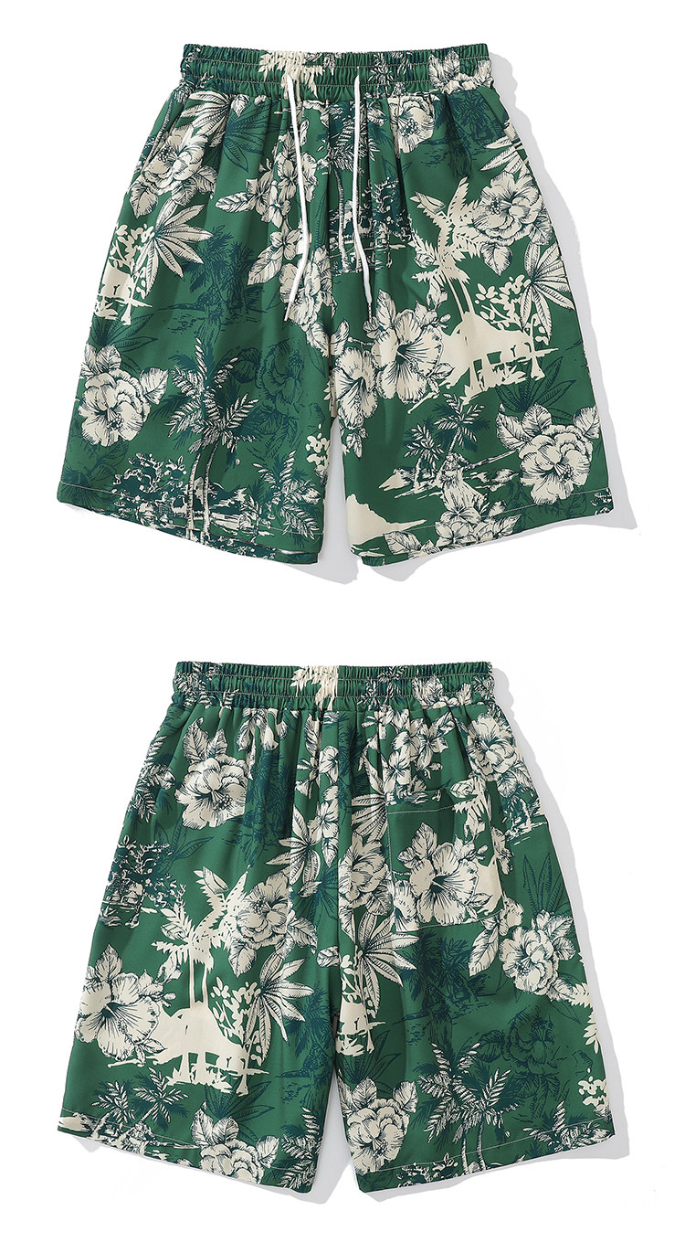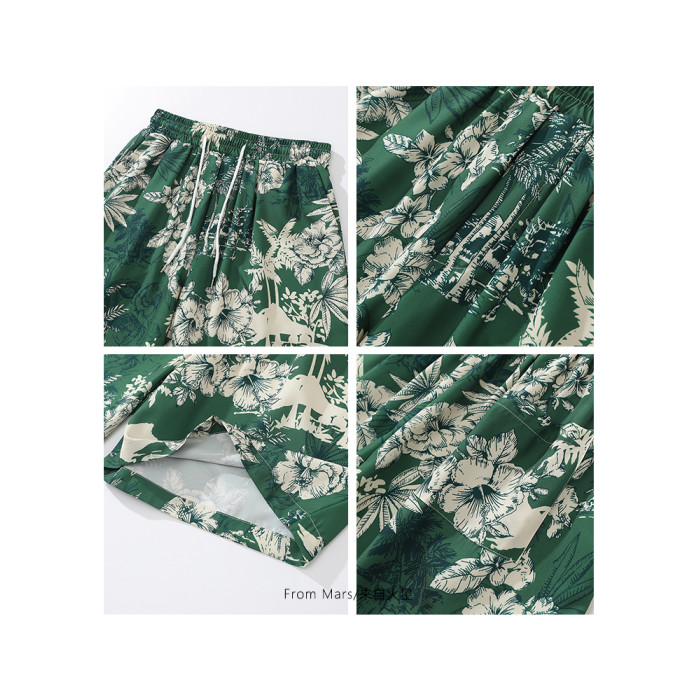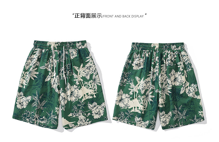 From Mars茂密叢林 國潮復古花卉印花直筒短褲寬鬆夏威夷沙灘褲bf