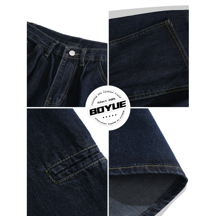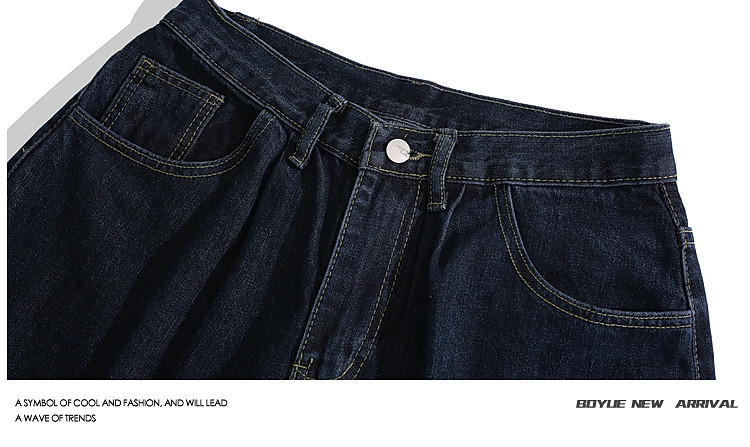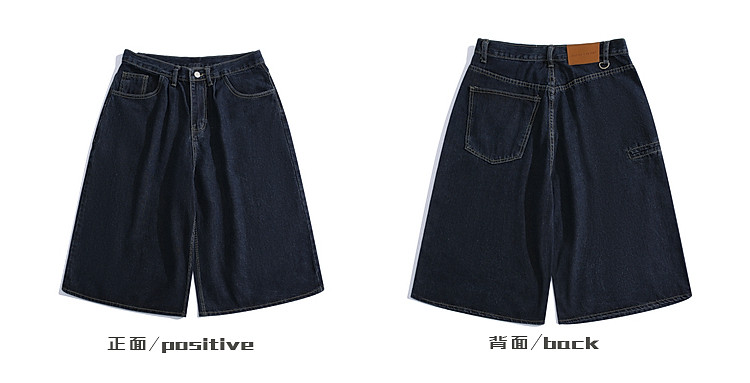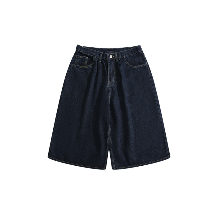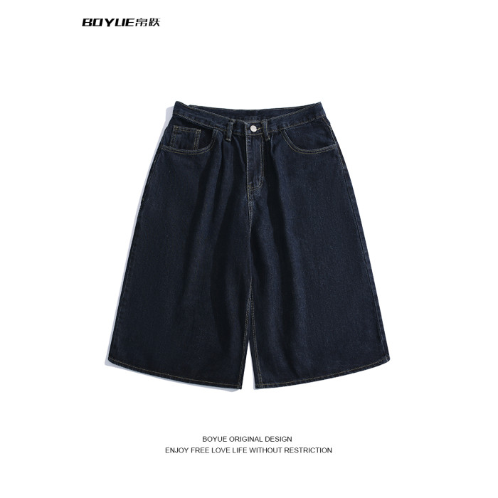 BOYUE帛躍寬鬆直筒純色牛仔短褲青少年潮牌時尚簡約休閒七分褲男