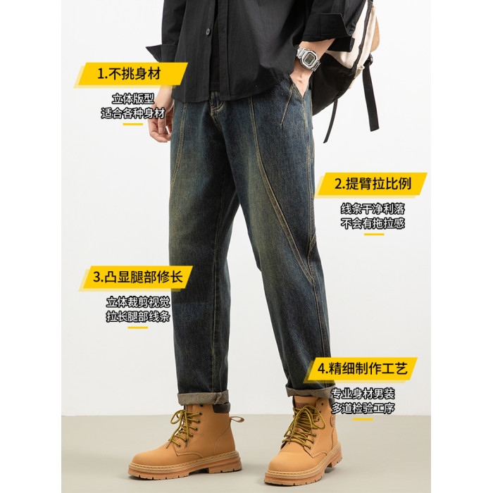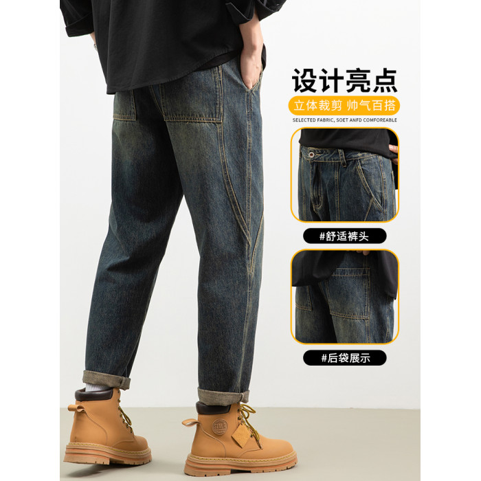 秋冬季加絨加厚男士牛仔褲美式復古水洗男生直筒寬鬆2026新款長褲