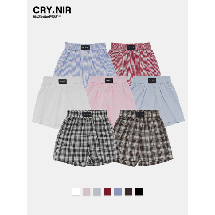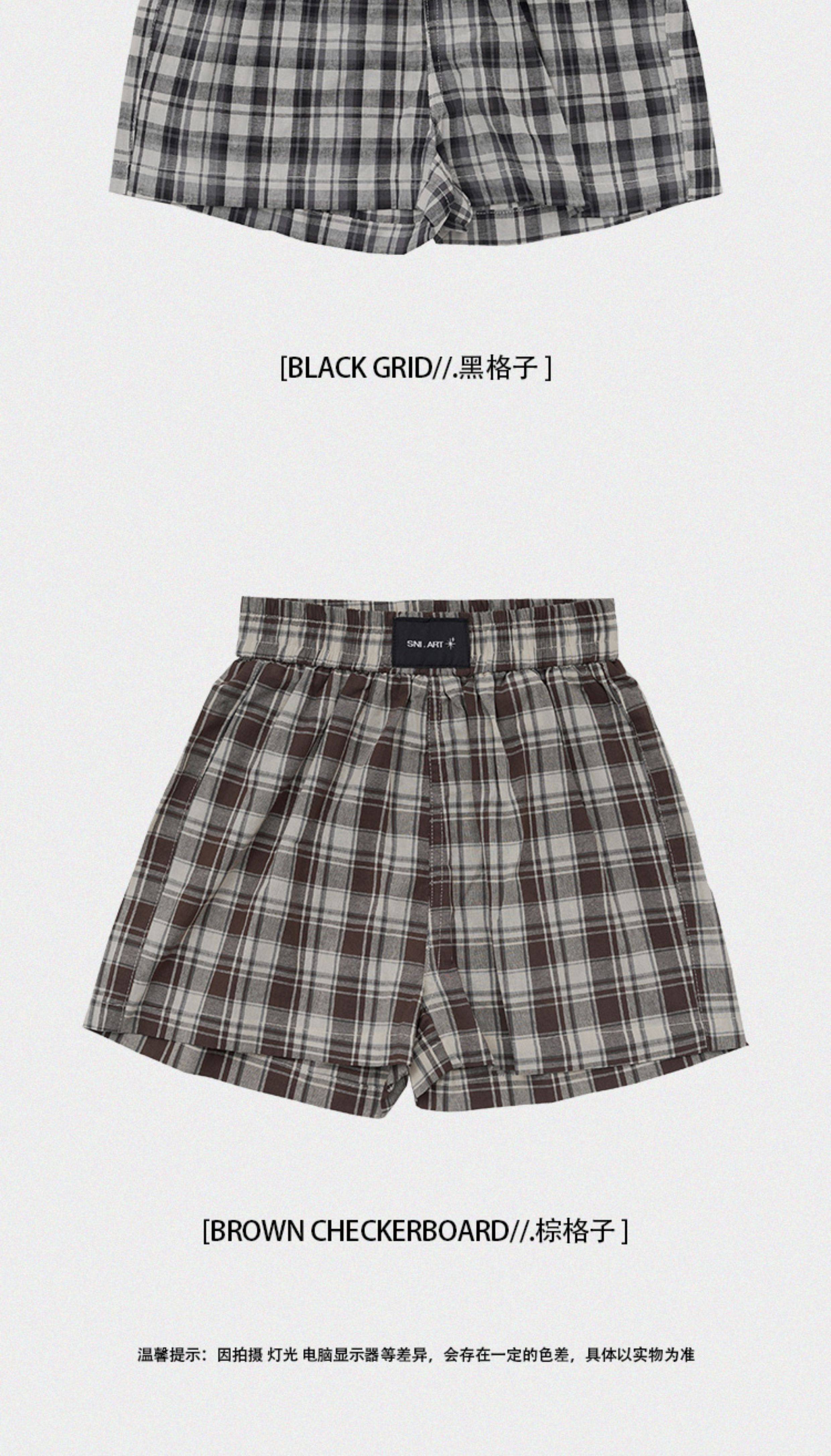 李會贏2025美式復古高街內搭全棉格子短褲百搭純棉打底褲男女同款