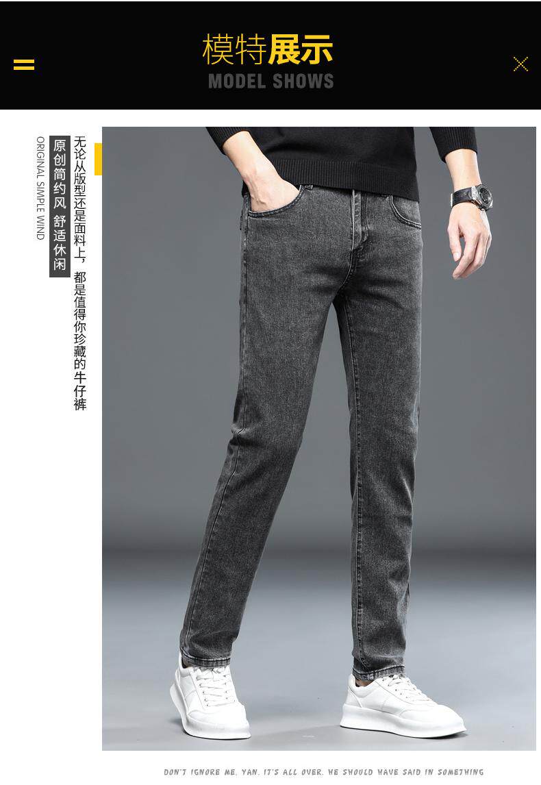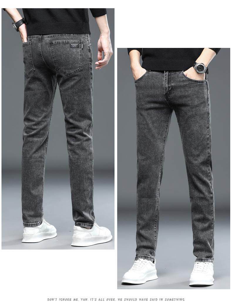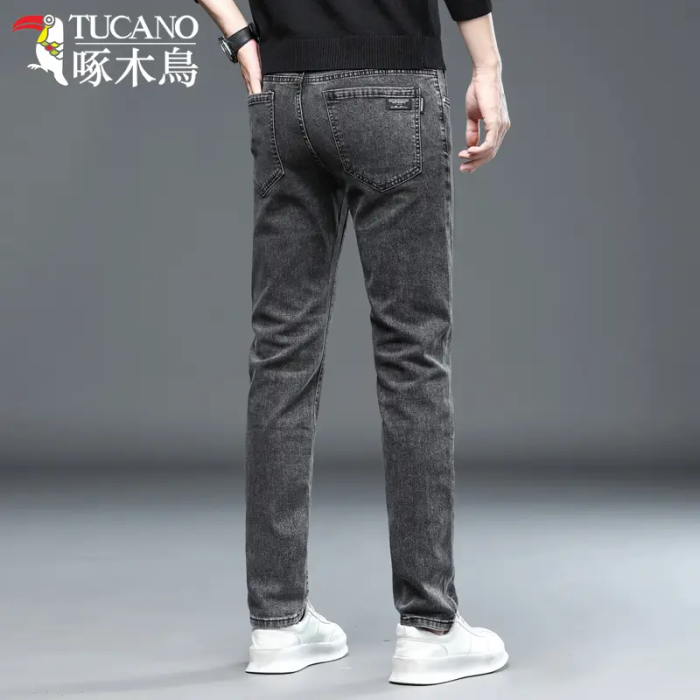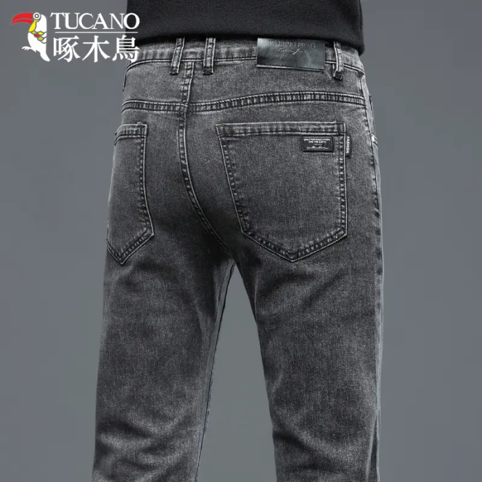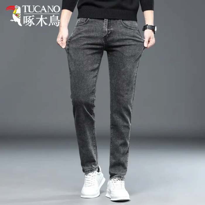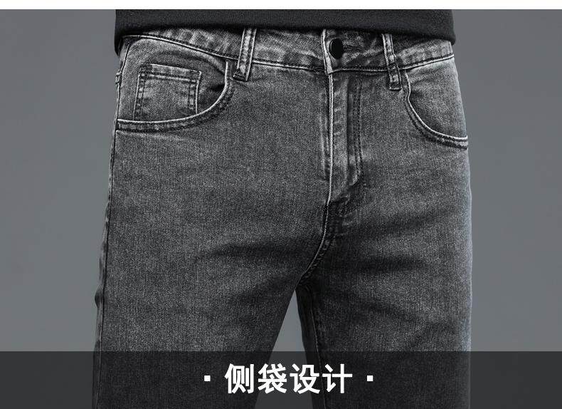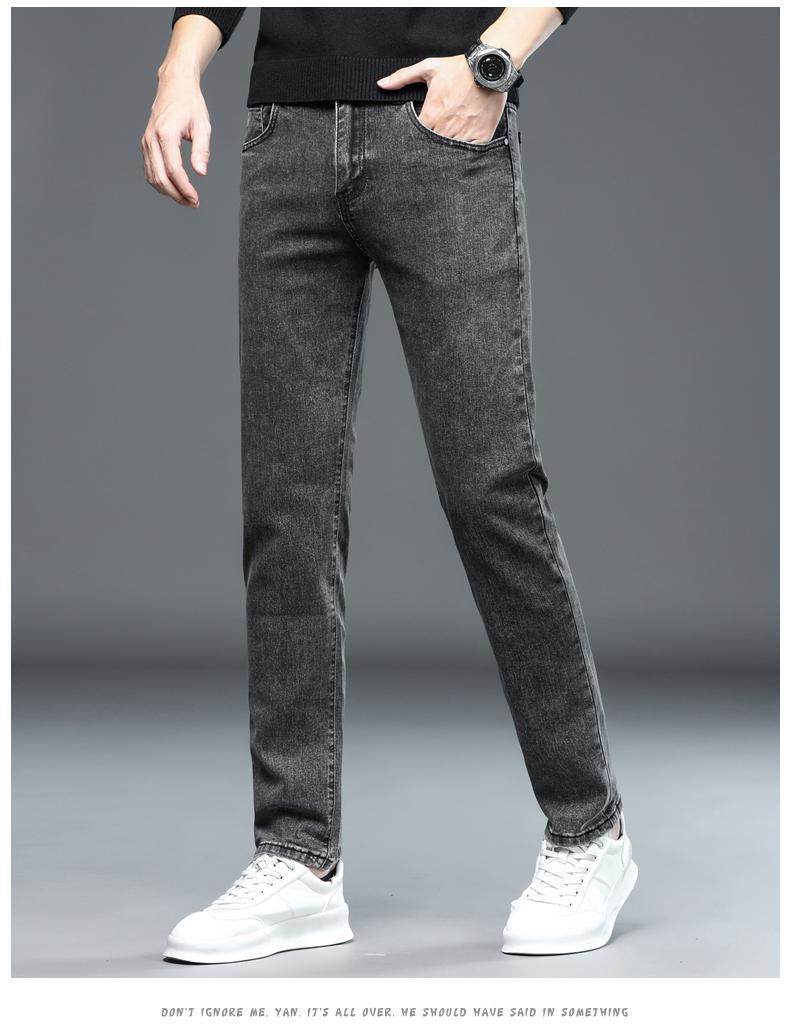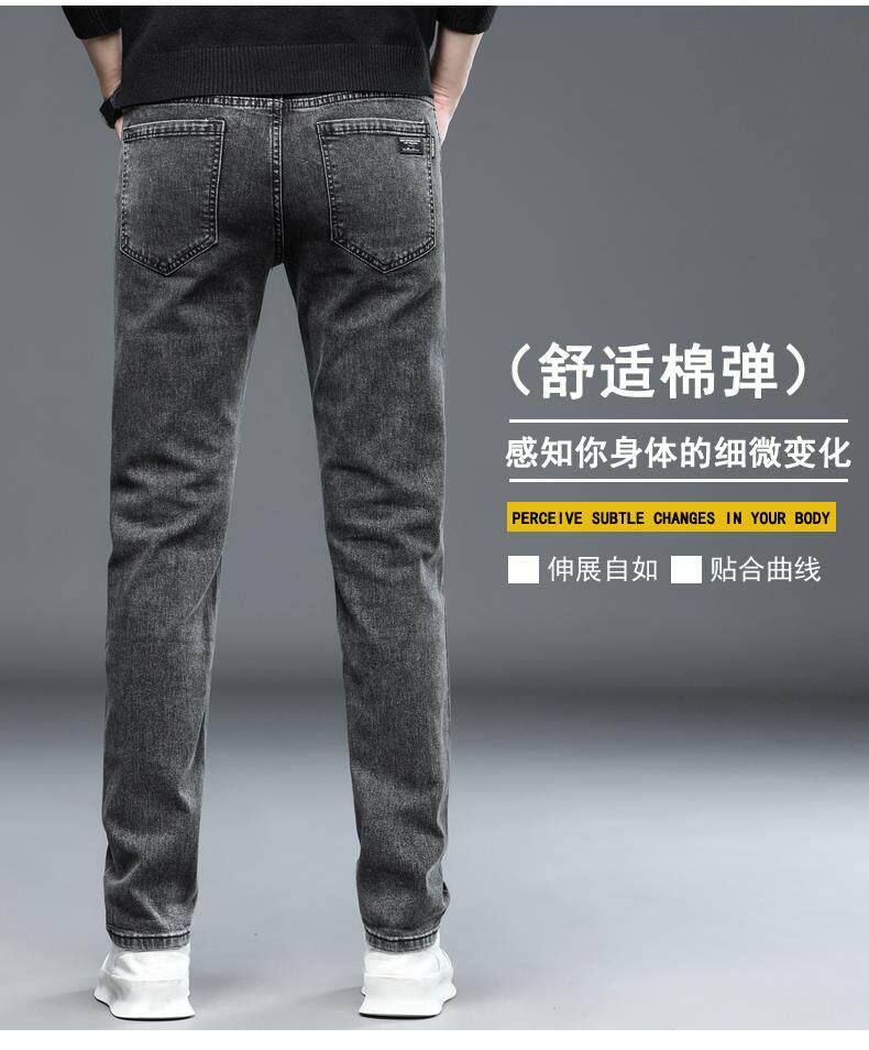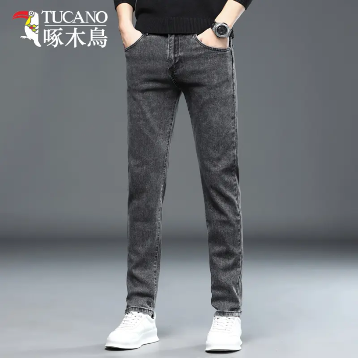 啄木鳥彈力牛仔褲男韓版修身直筒潮流時尚男士休閒秋冬厚款長褲子