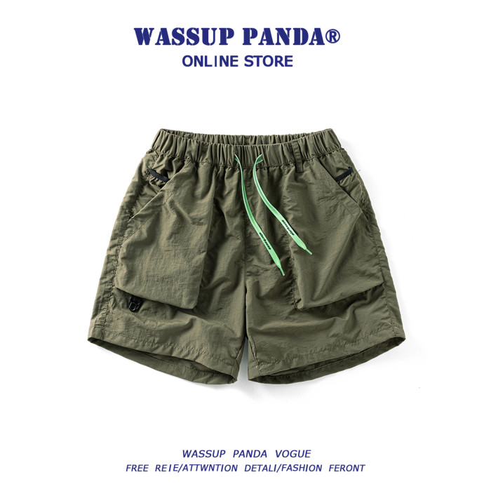 WASSUP PANDA速乾工裝短褲男夏季美式潮牌薄款寬鬆休閒運動三分褲