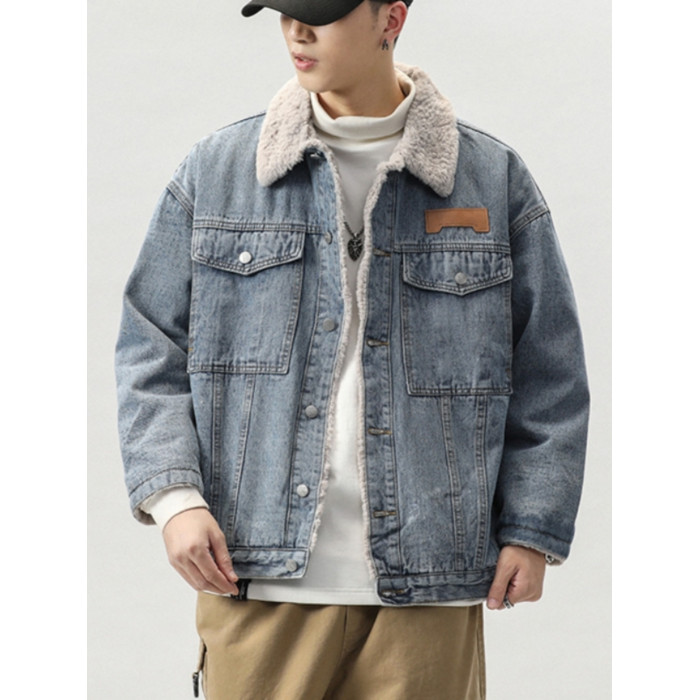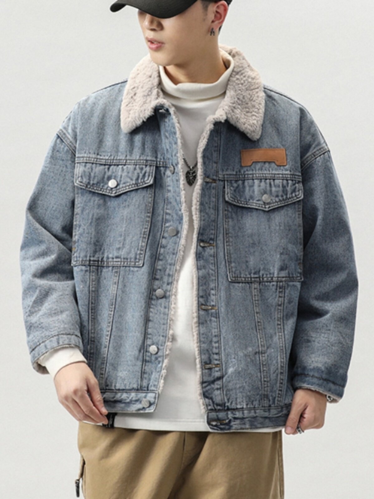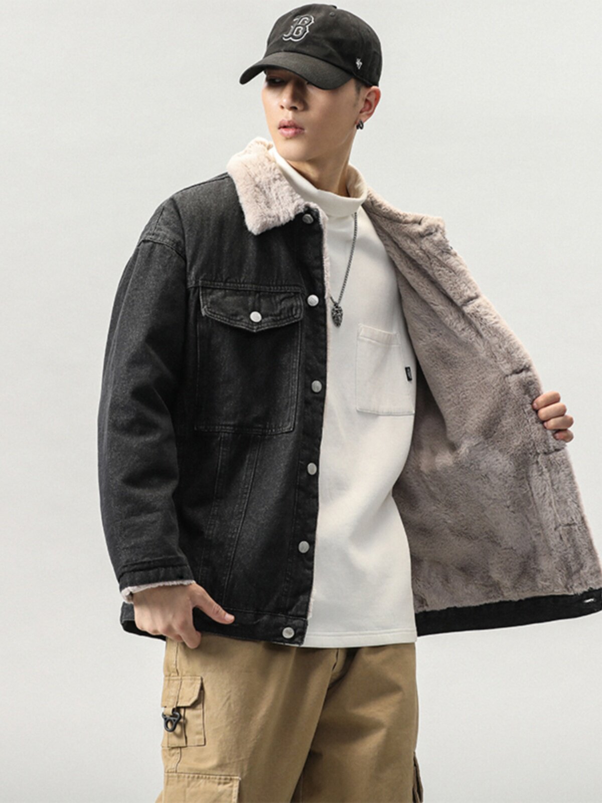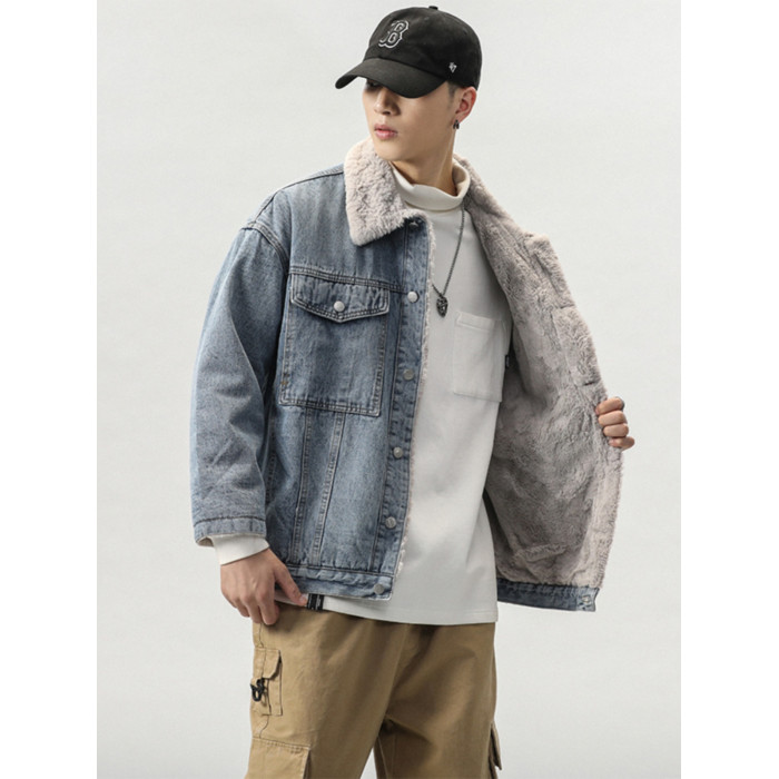 美式復古冬季新款加絨保暖牛仔外套男款潮牌寬鬆夾克上衣秋冬棉服