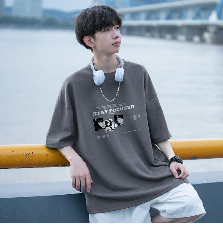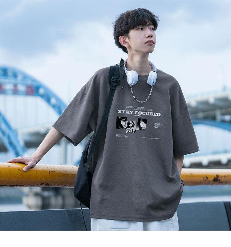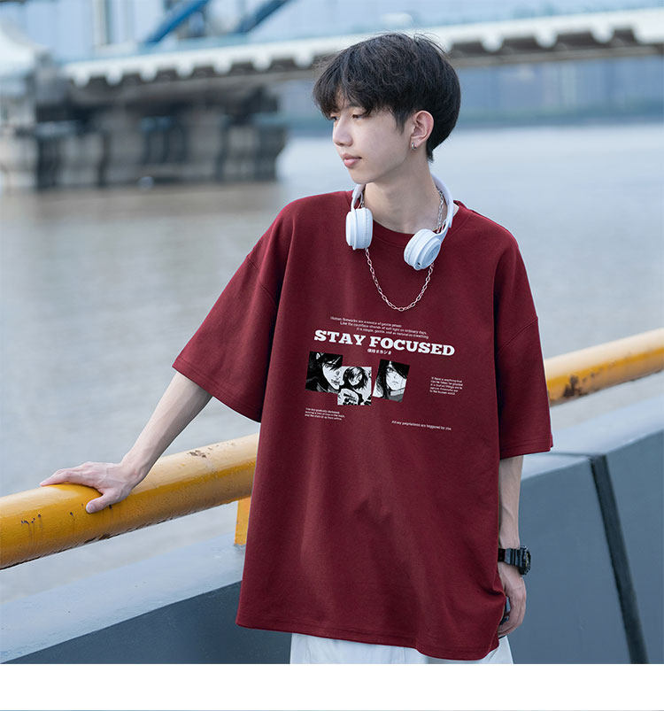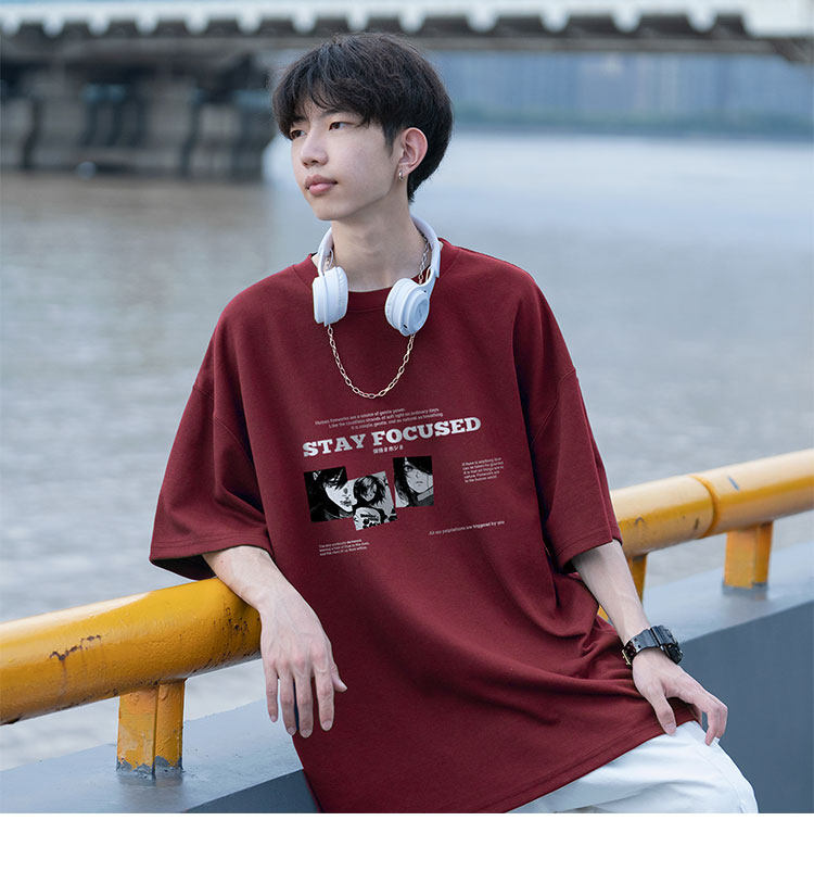 酒紅色重磅短袖t恤男潮牌潮流美式高街純棉痞帥大碼情侶半袖衣服