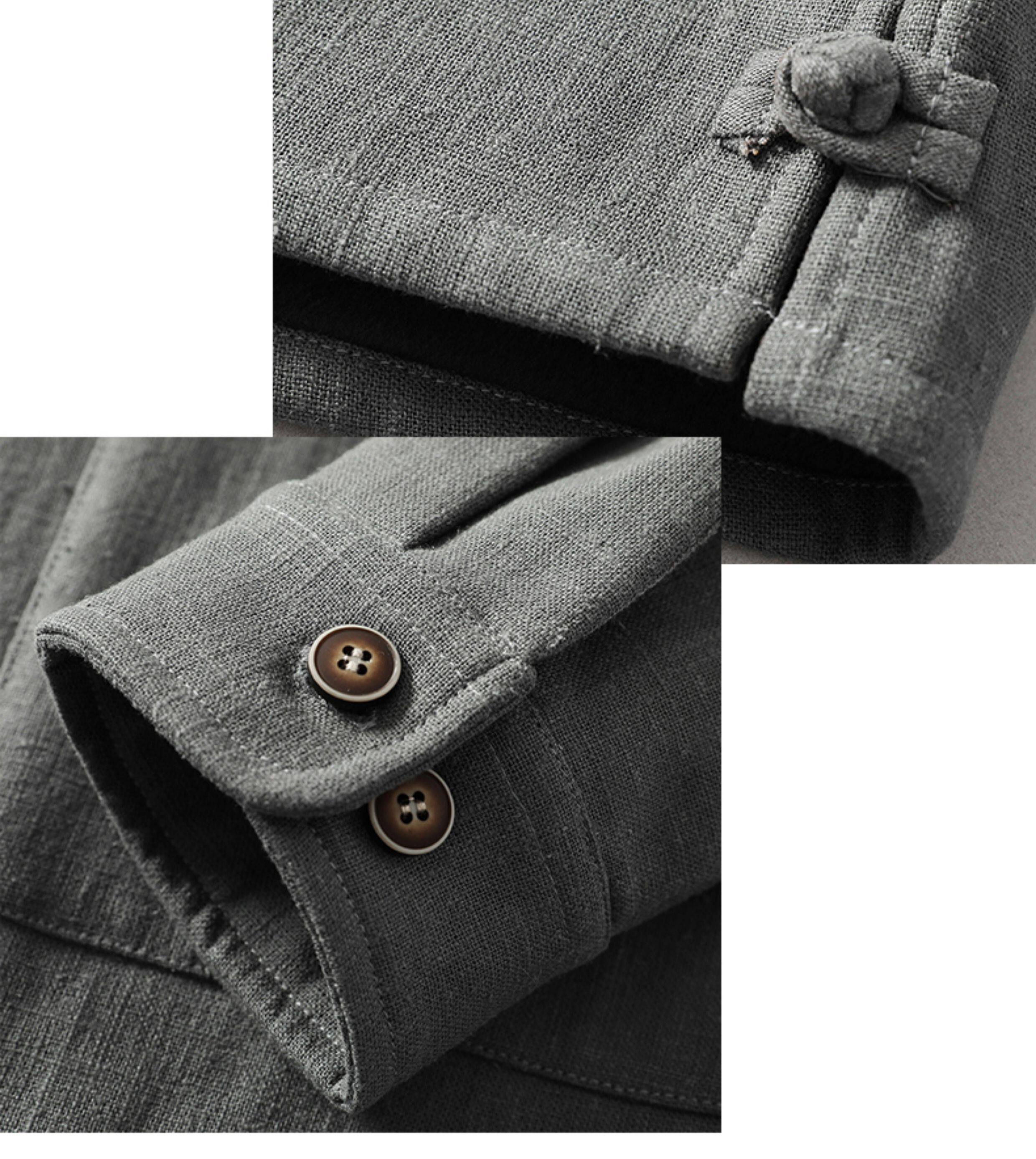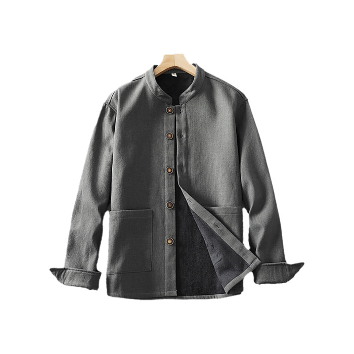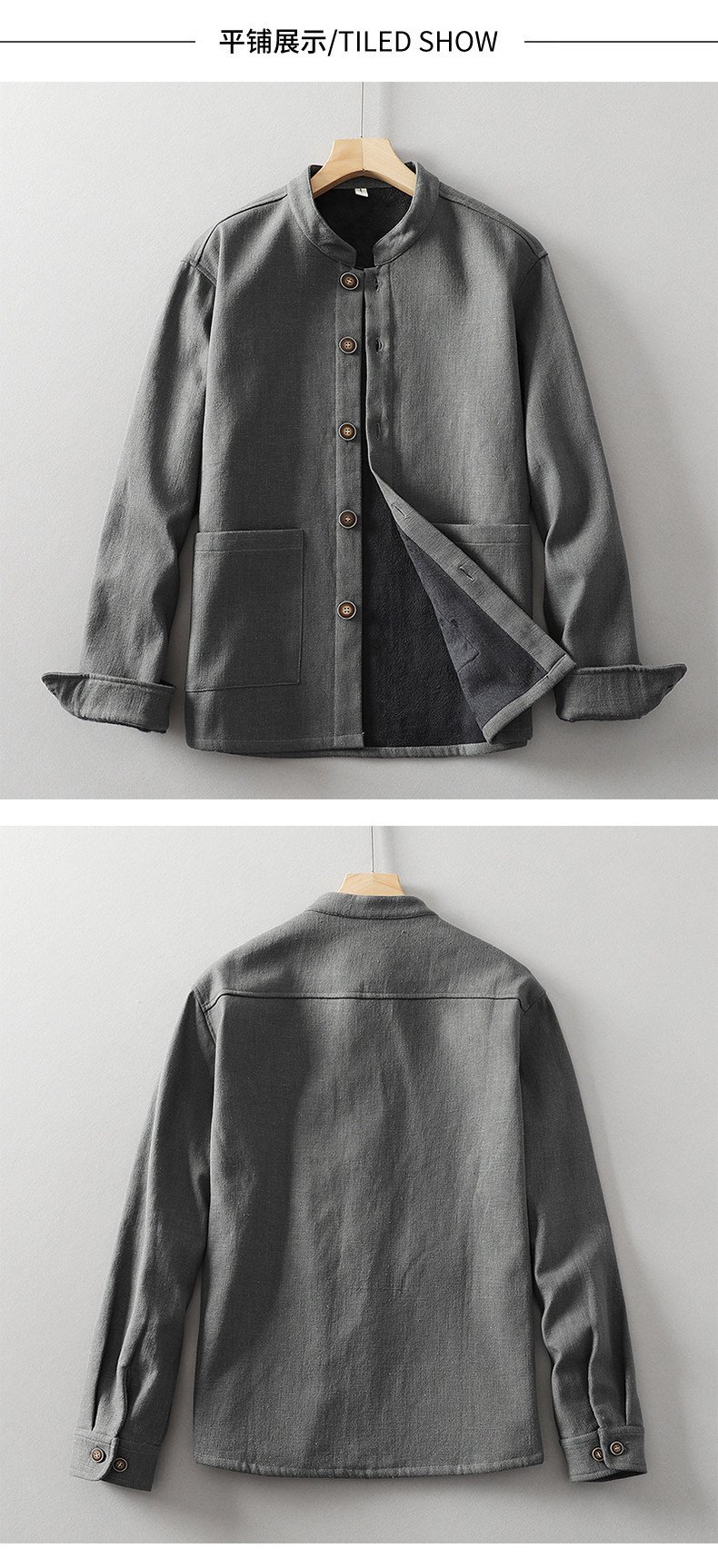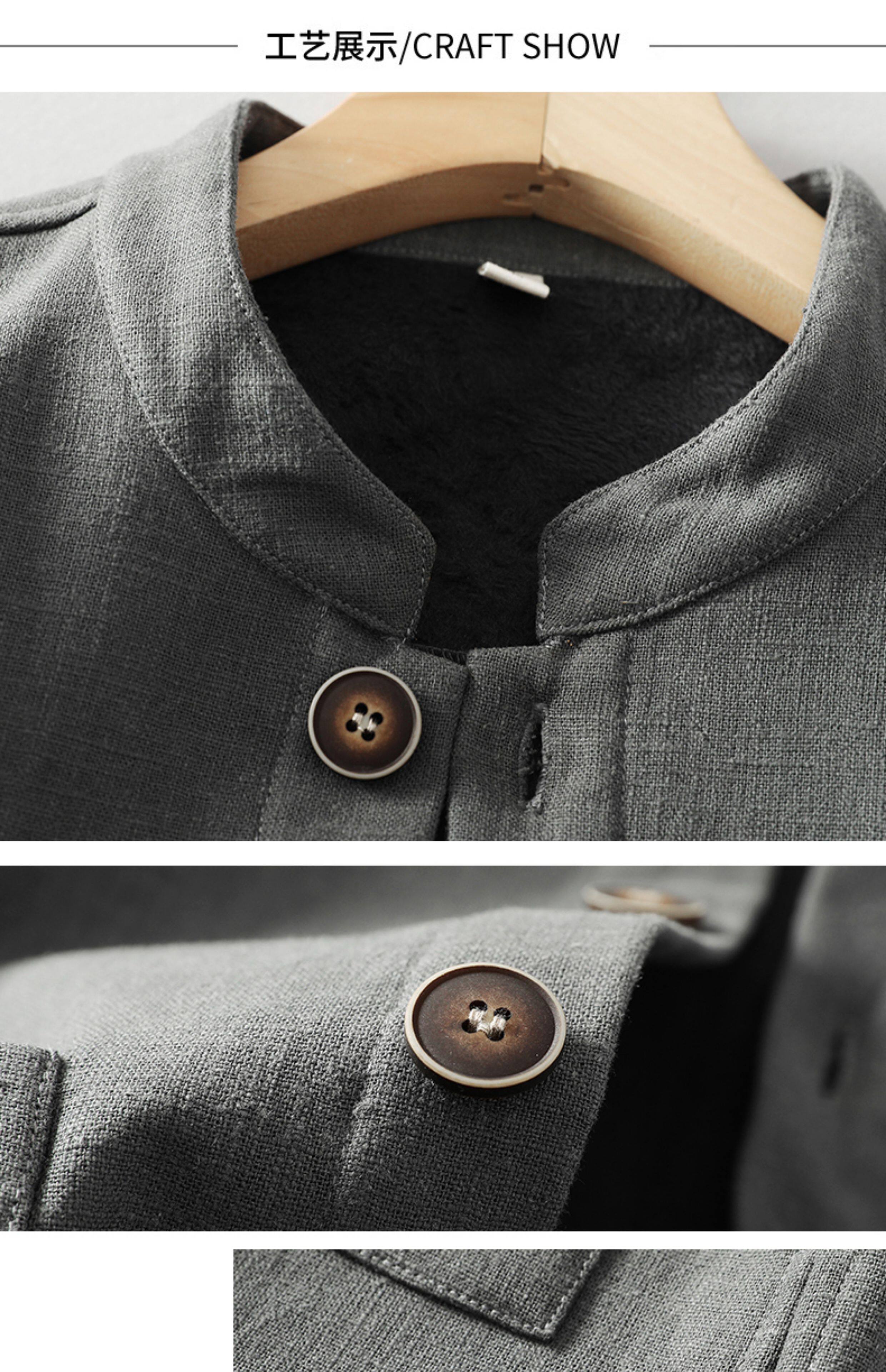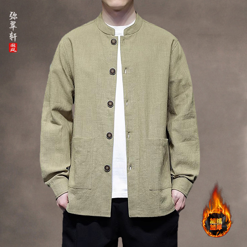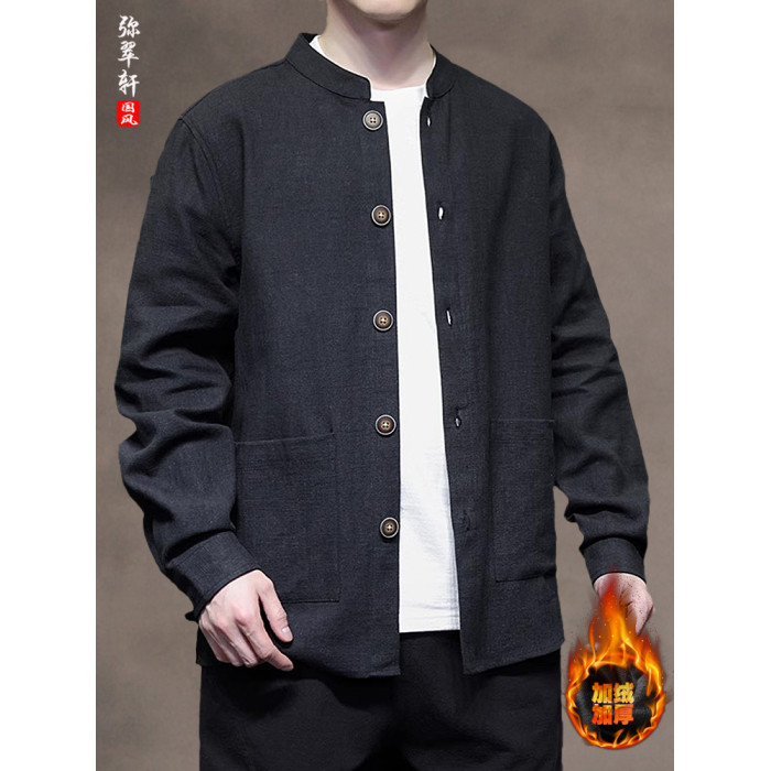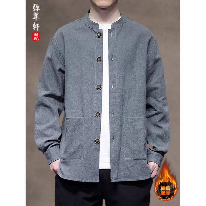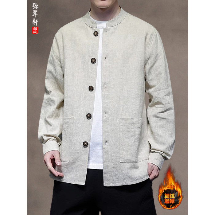 秋冬款男士加絨保暖休閒外套新中式復古風立領百搭棉麻上衣中山裝