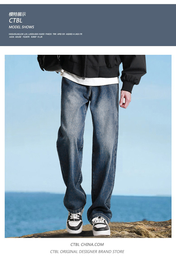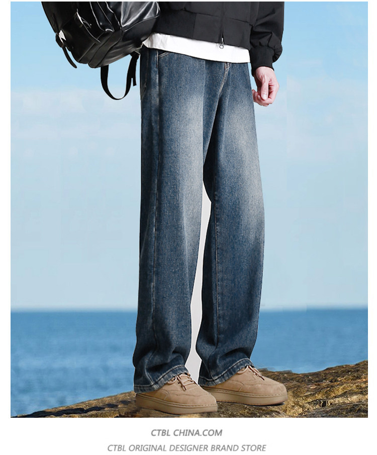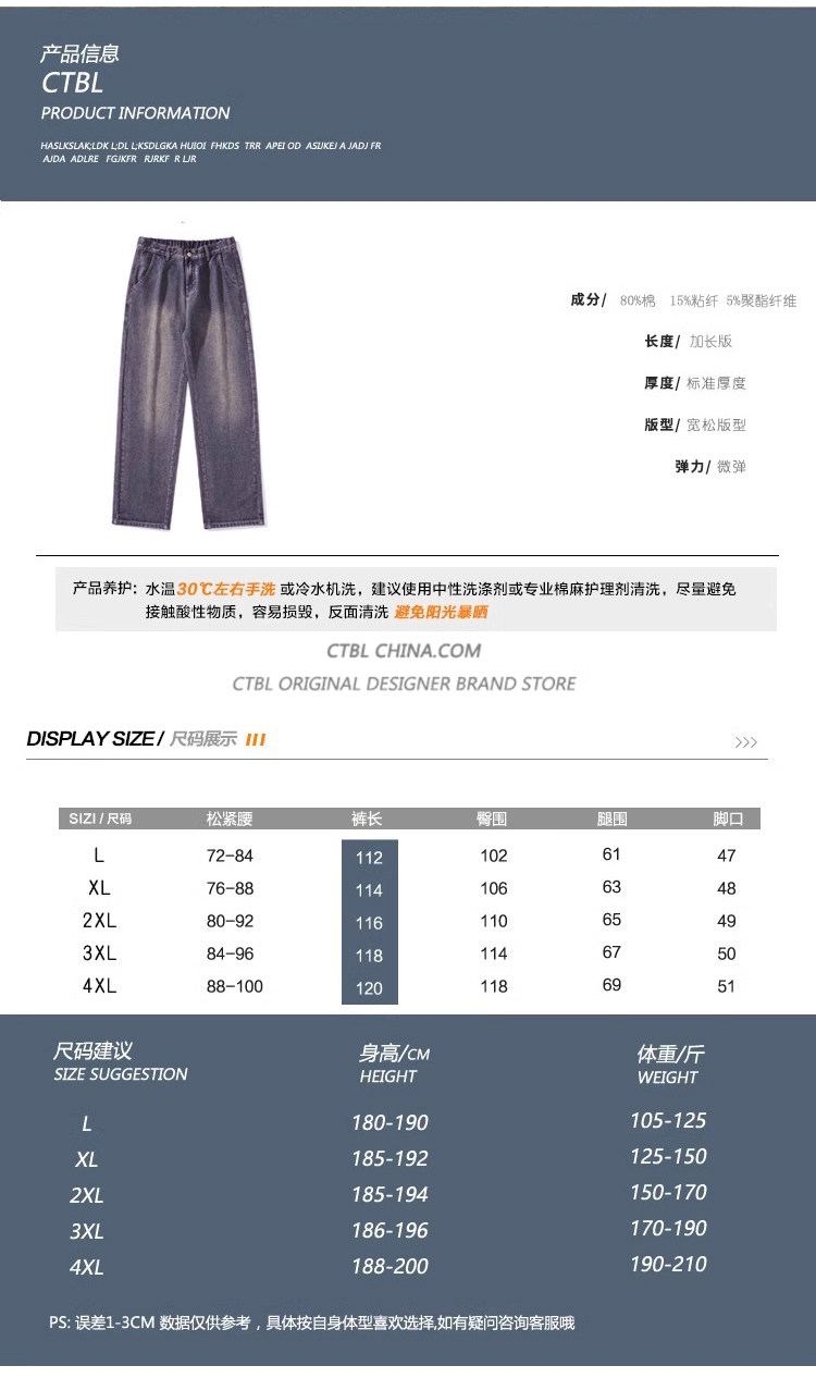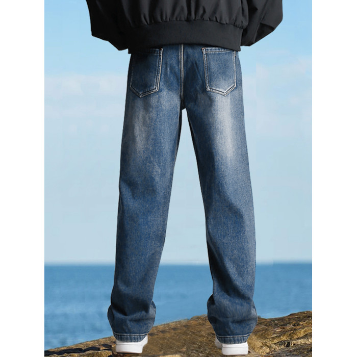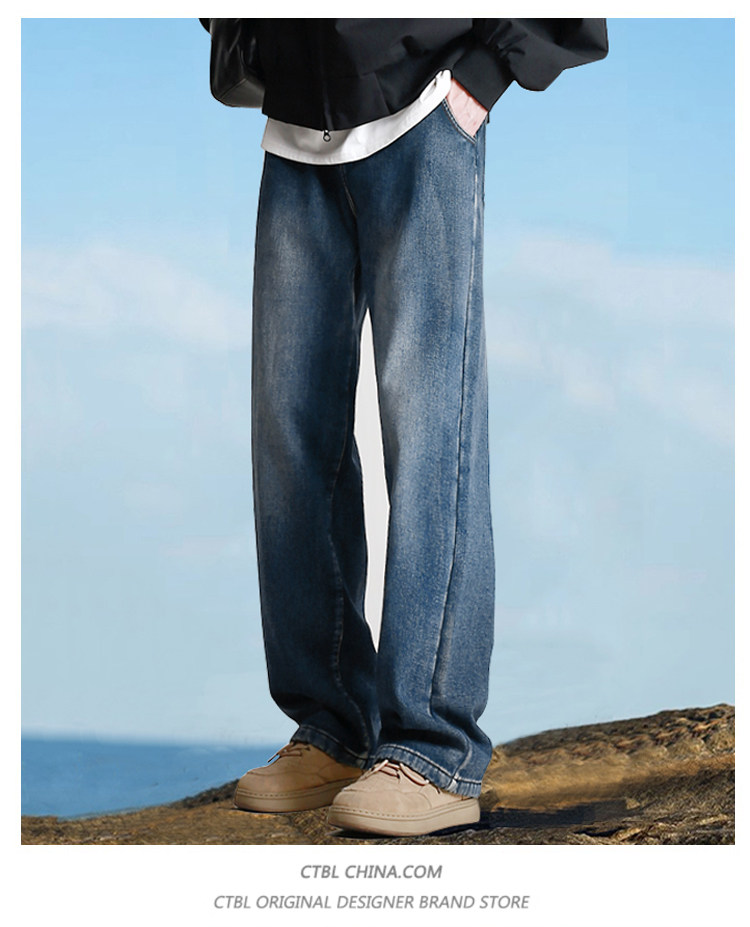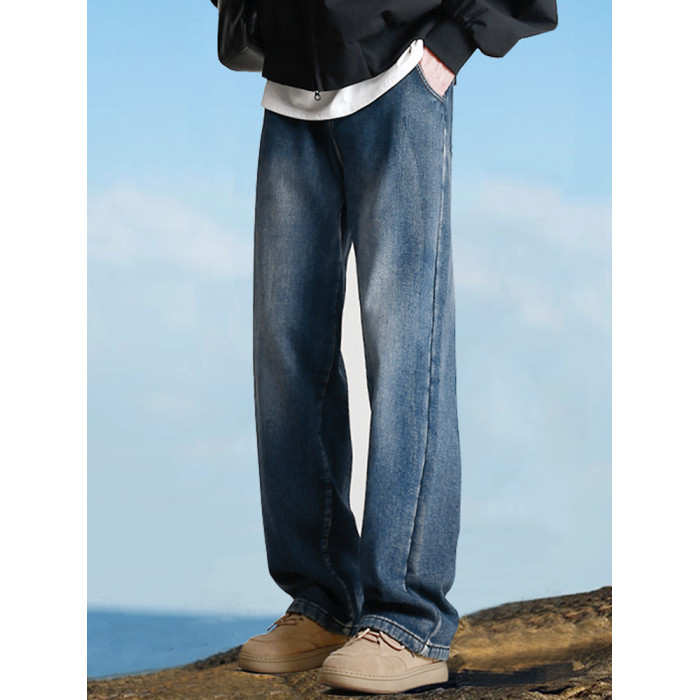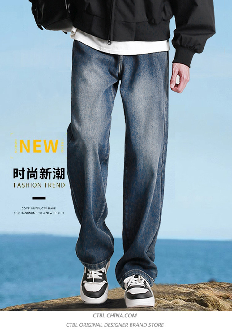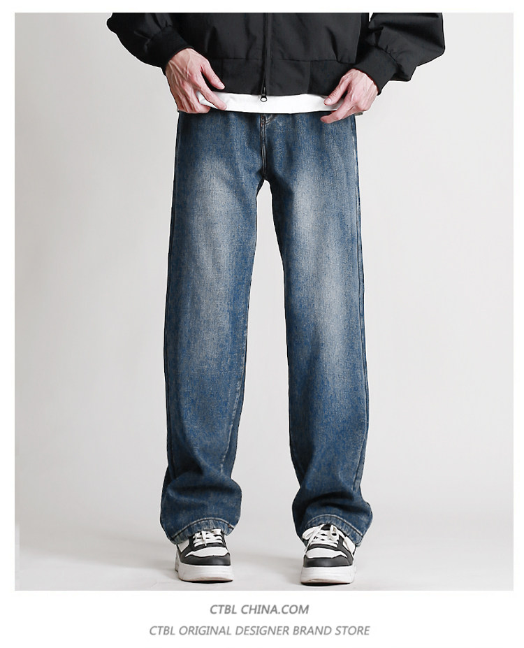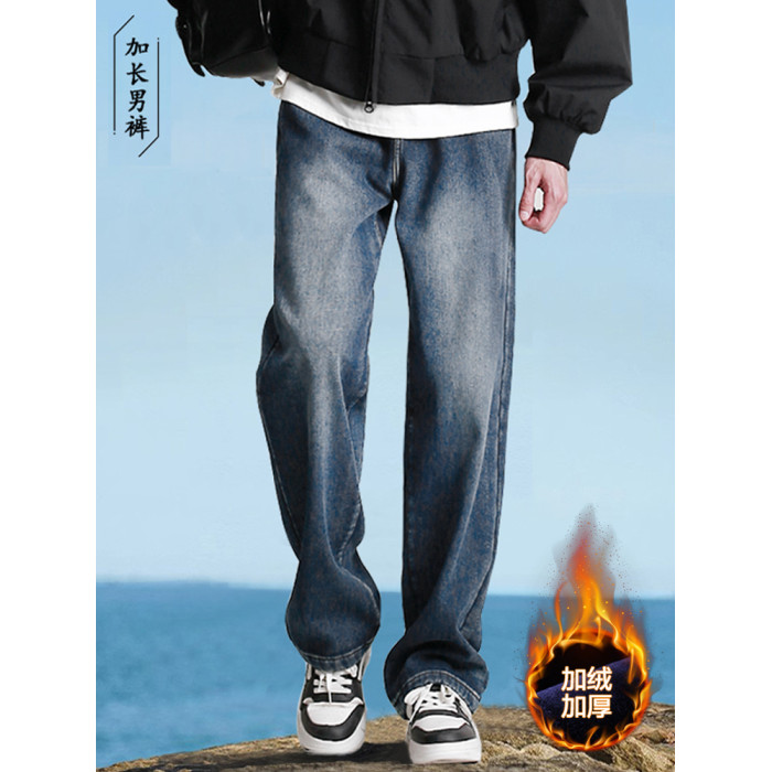 190高個子加長褲子男秋冬加絨直筒加長牛仔褲青少年濶腿休閒長褲