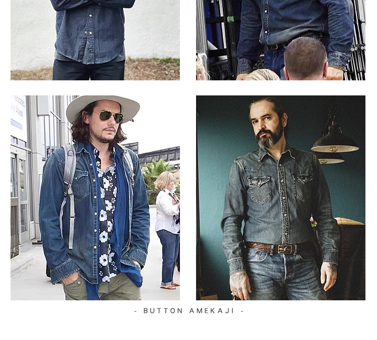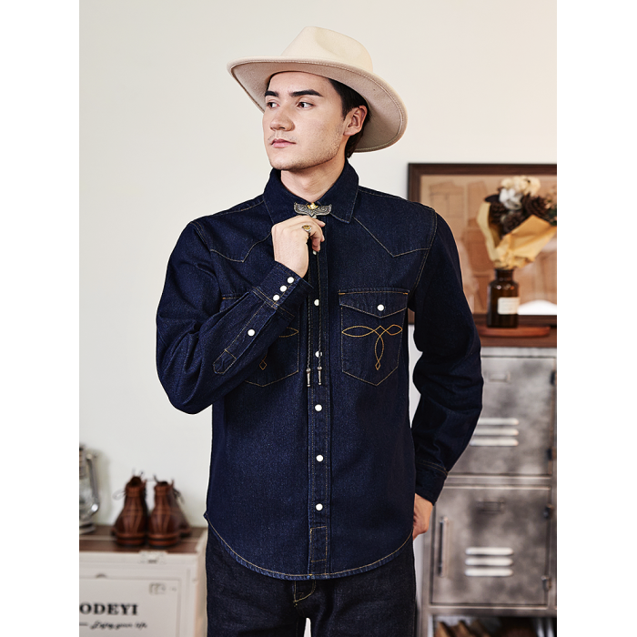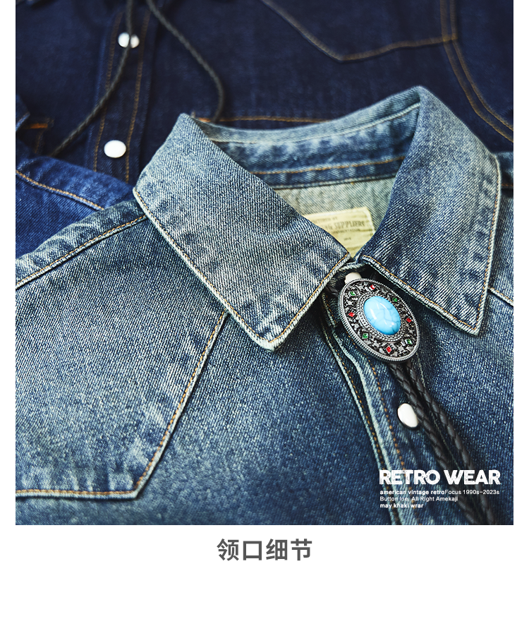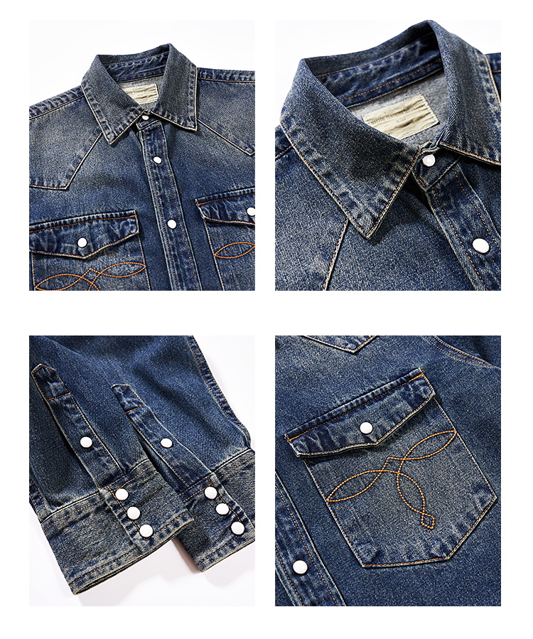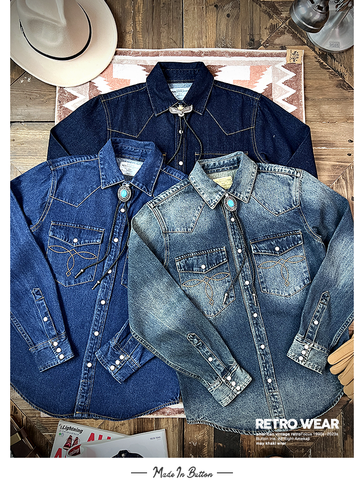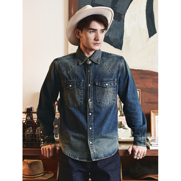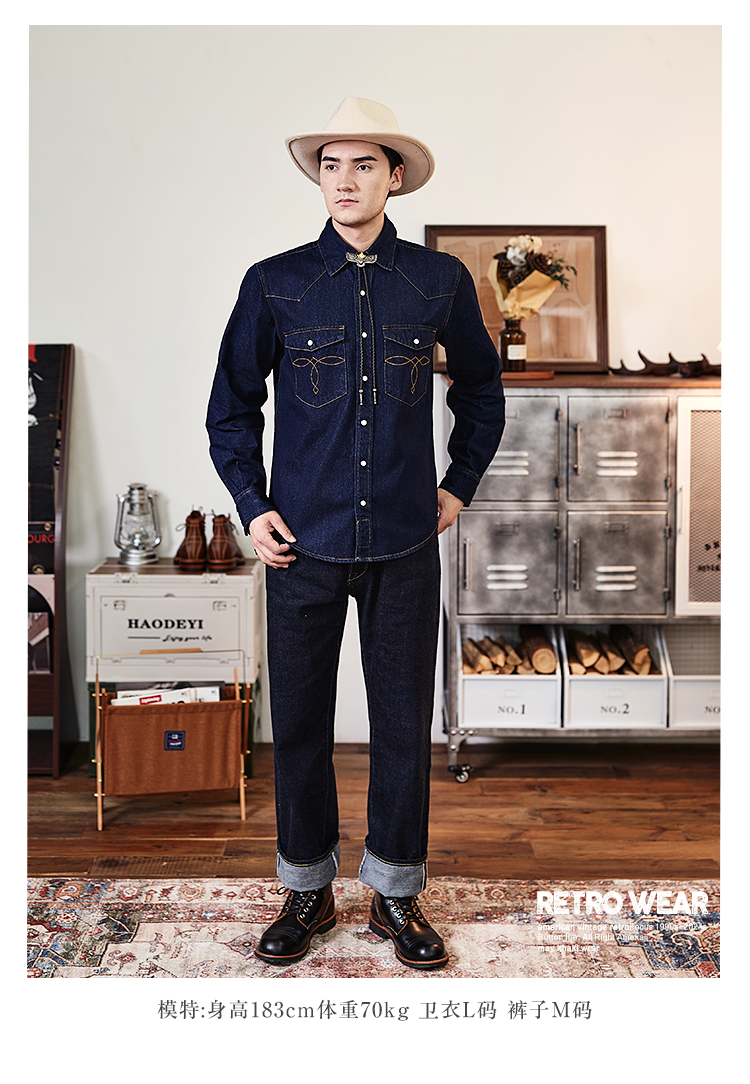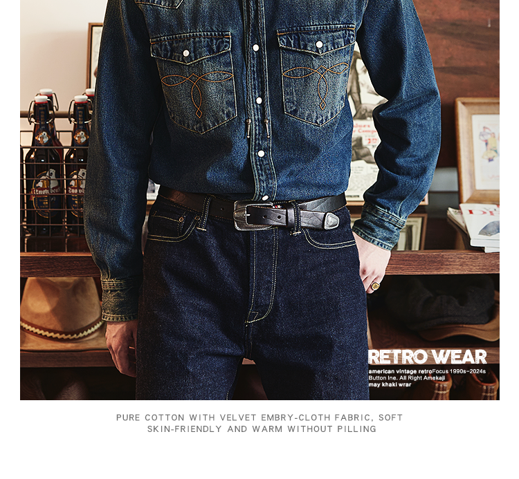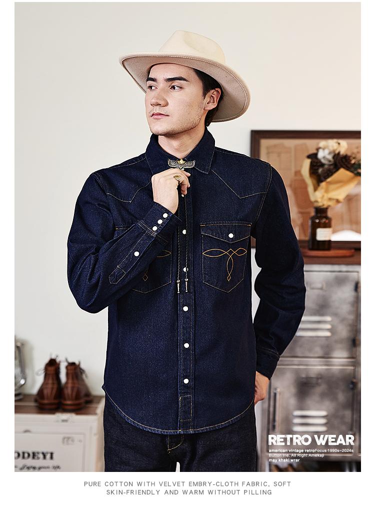 美式復古做舊春秋阿美哢嘰重磅西部牛仔襯衫古著RL工裝襯衣男長袖