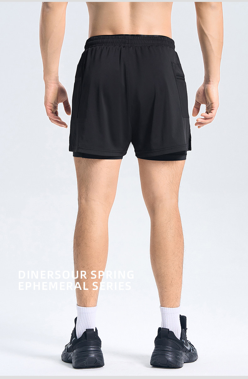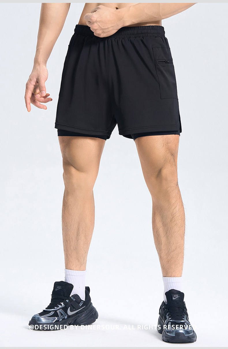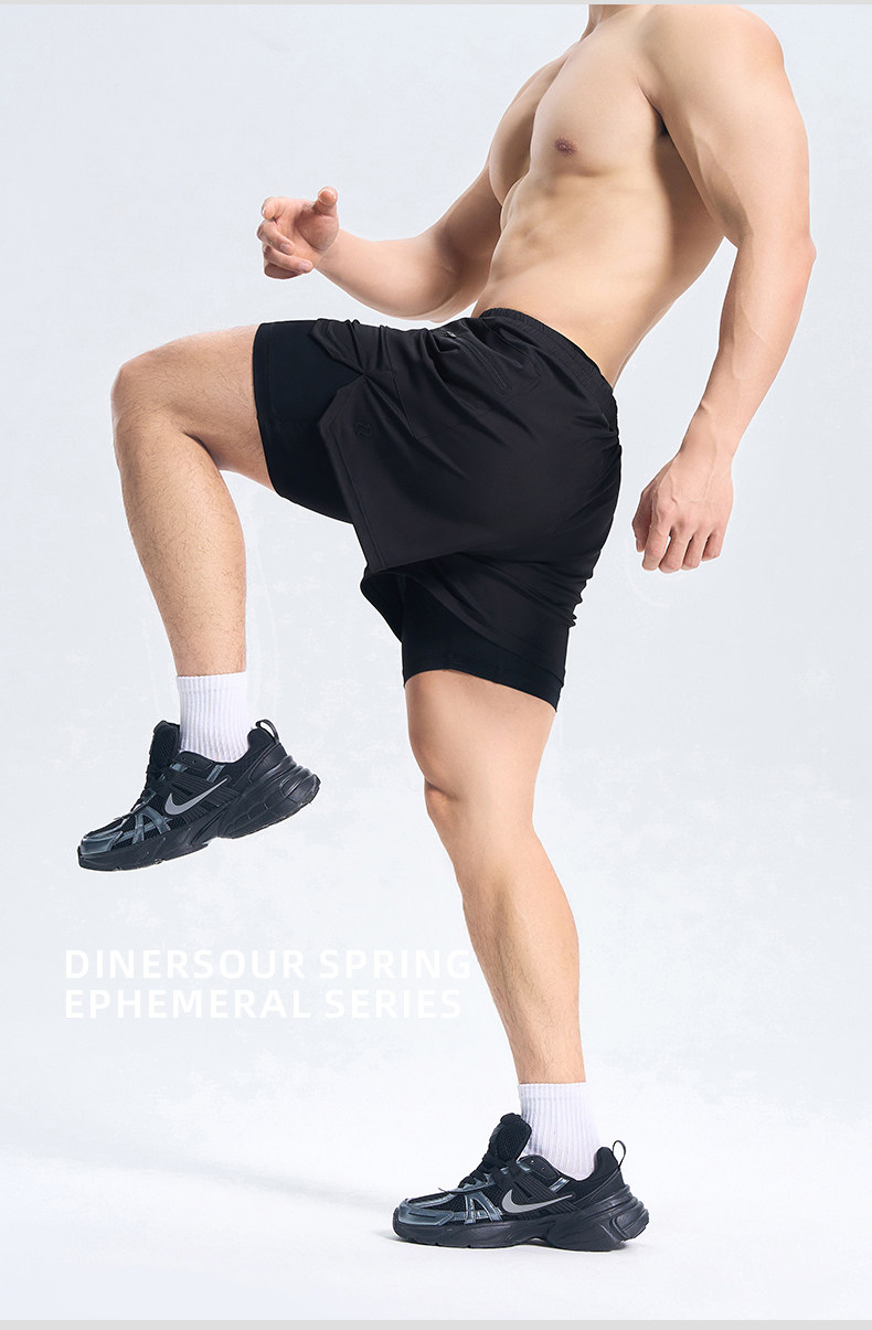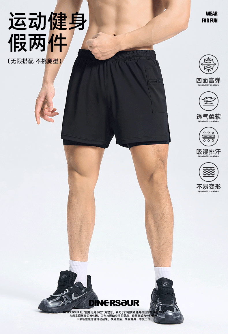 DINERSOUR 透氣健身運動短褲男速乾跑步專用高彈內襯訓練五分褲
