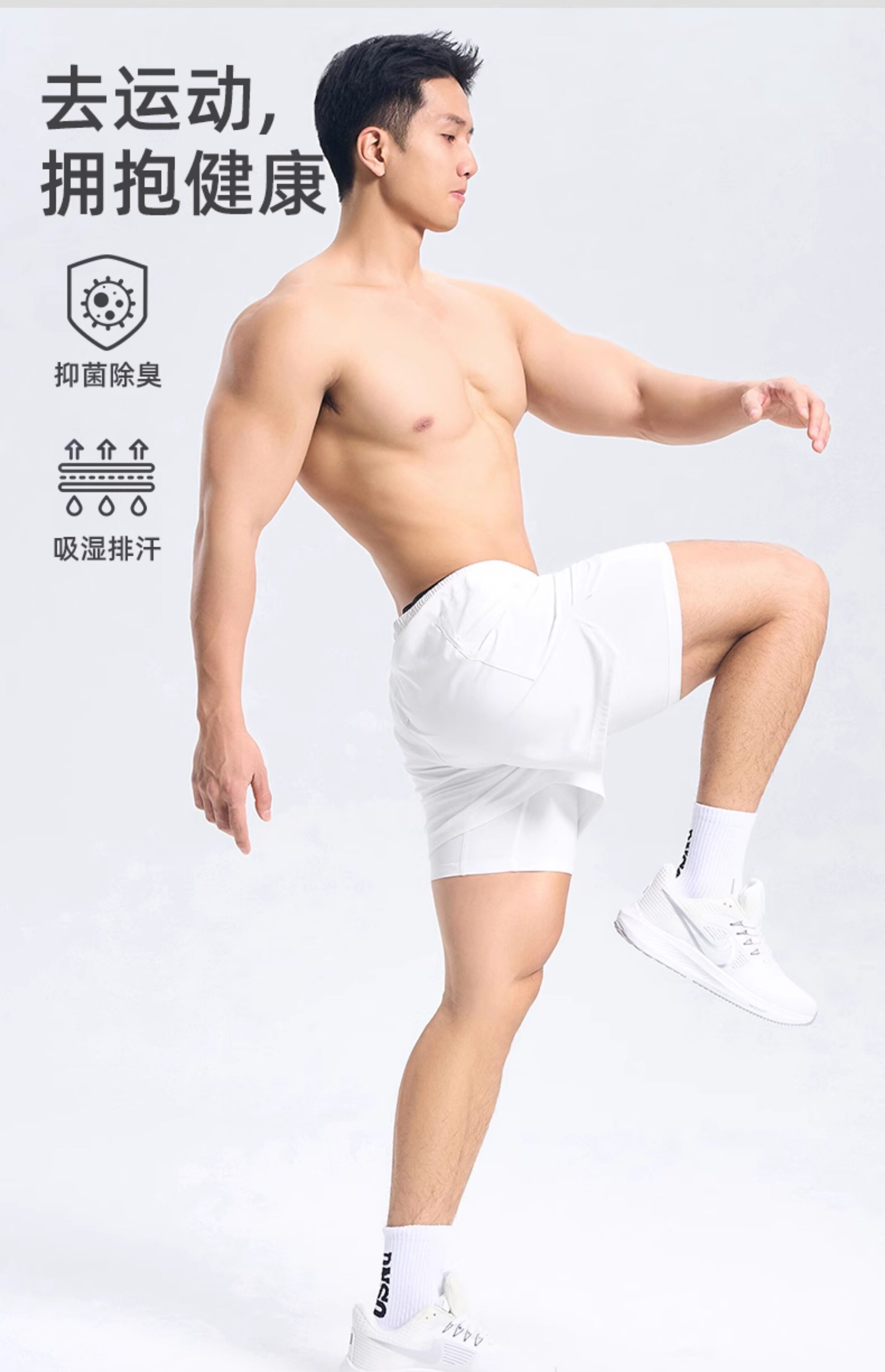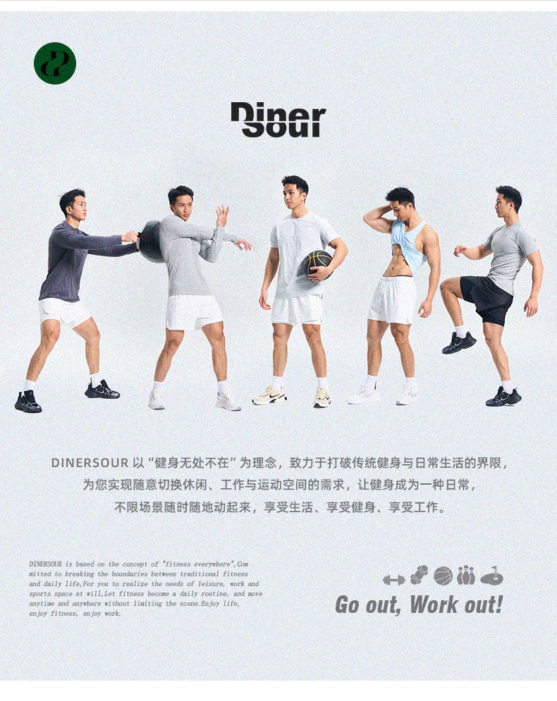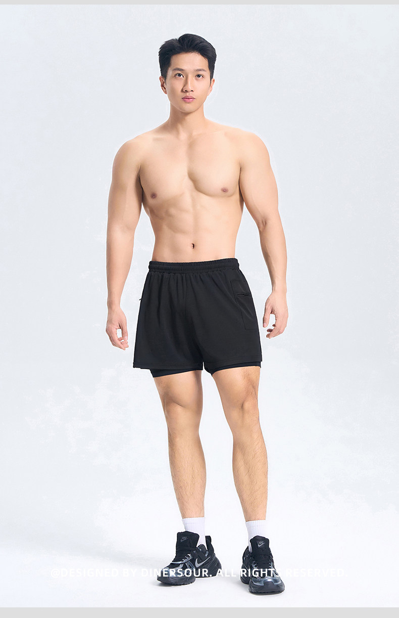 DINERSOUR 透氣健身運動短褲男速乾跑步專用高彈內襯訓練五分褲
