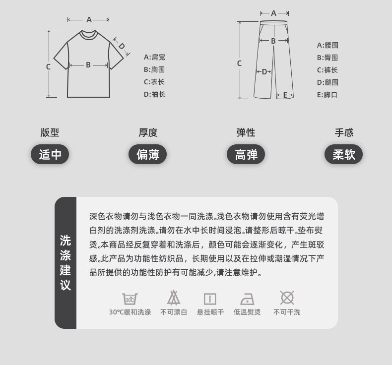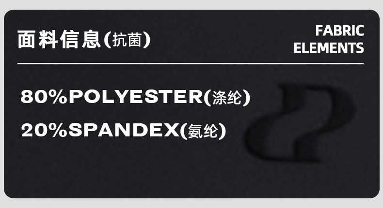 | 材質成分 | 聚對苯二甲酸乙二酯(滌綸)80% 聚氨酯彈性纖維(氨綸)20% |