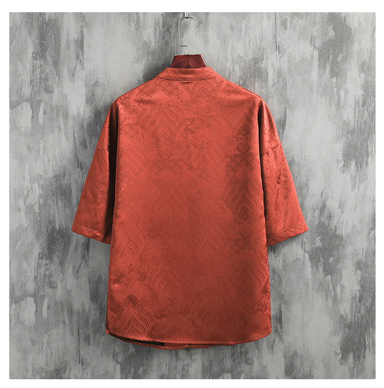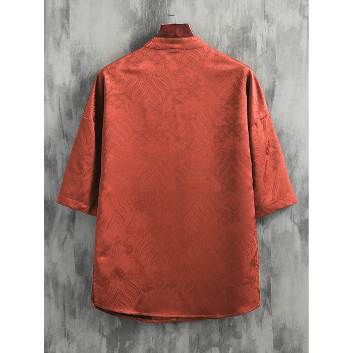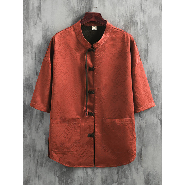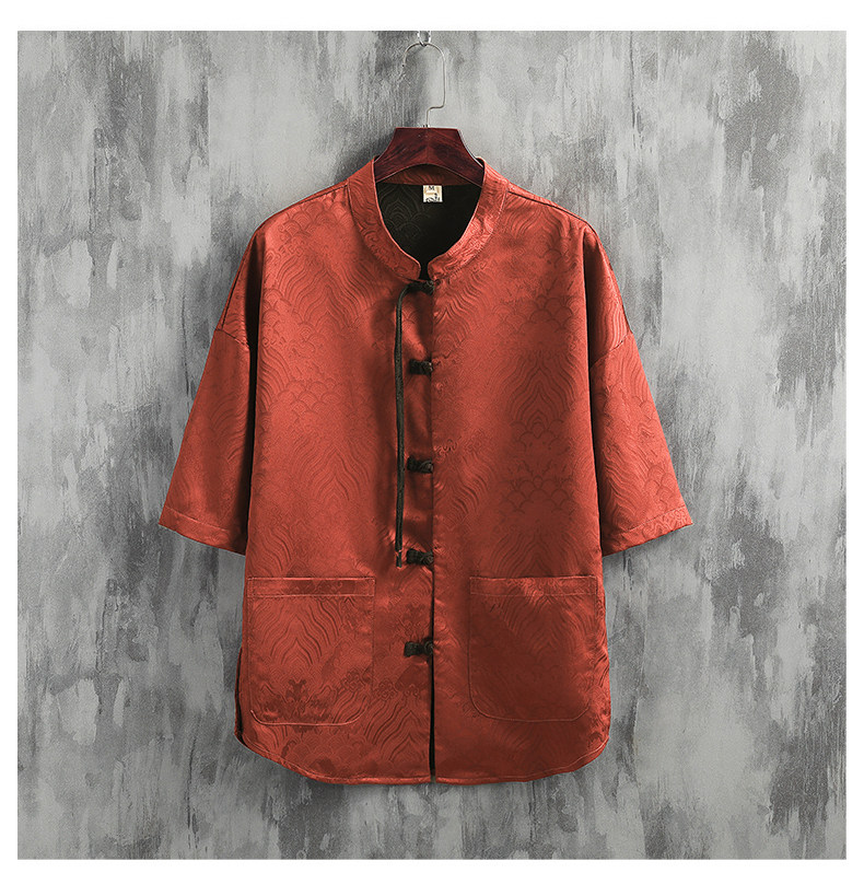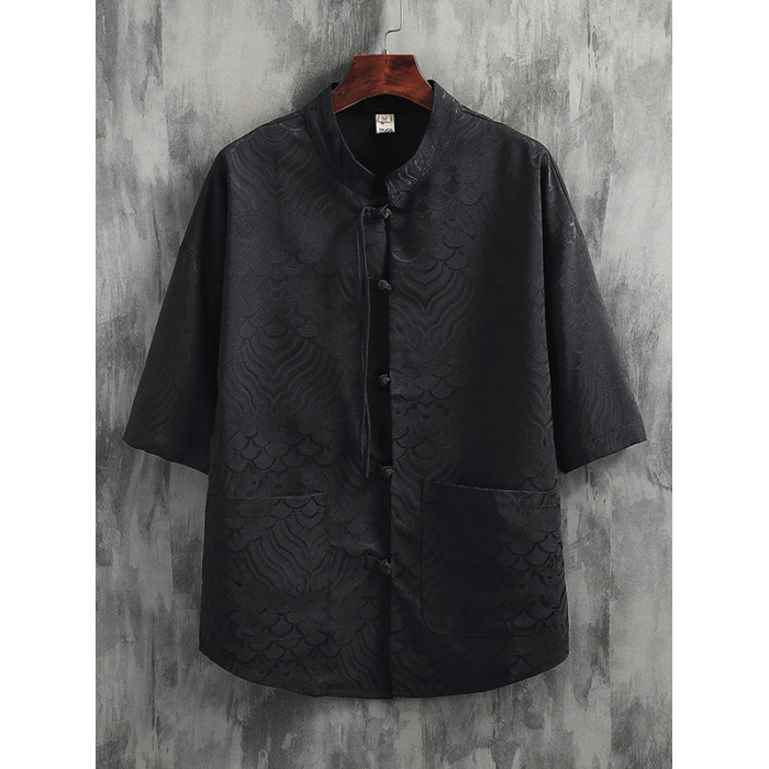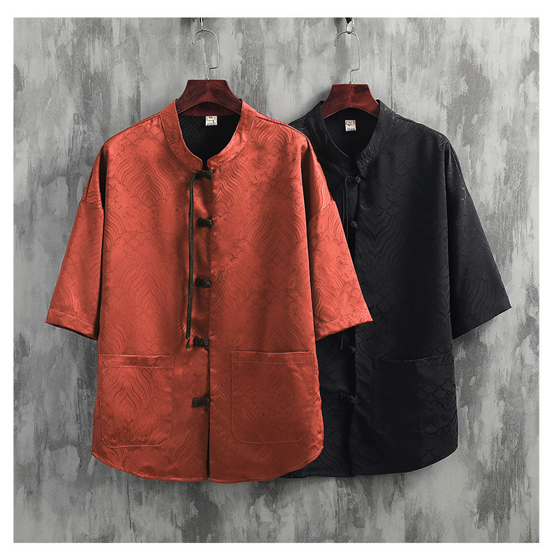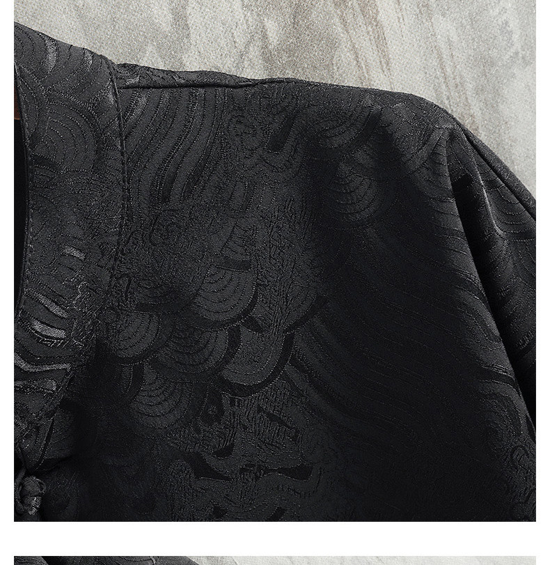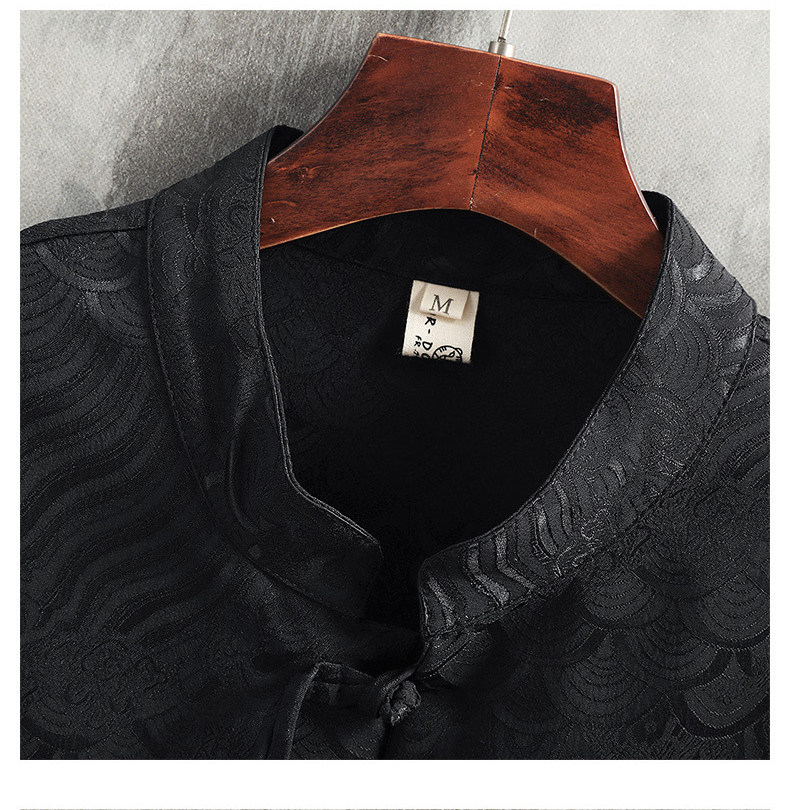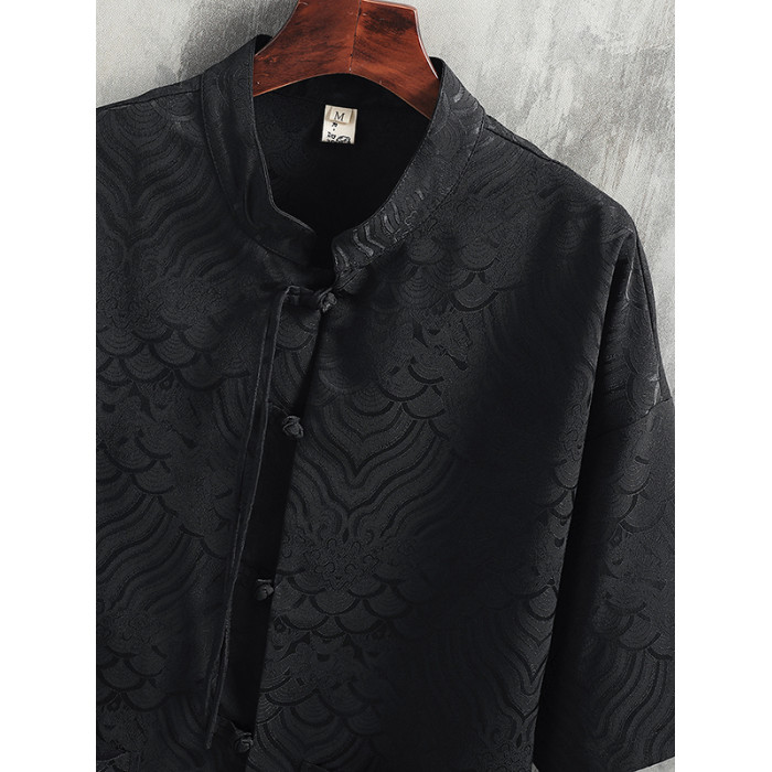 新中式穿搭 風暗紋提花短袖襯衫男 夏季 國潮 盤釦唐裝上衣
