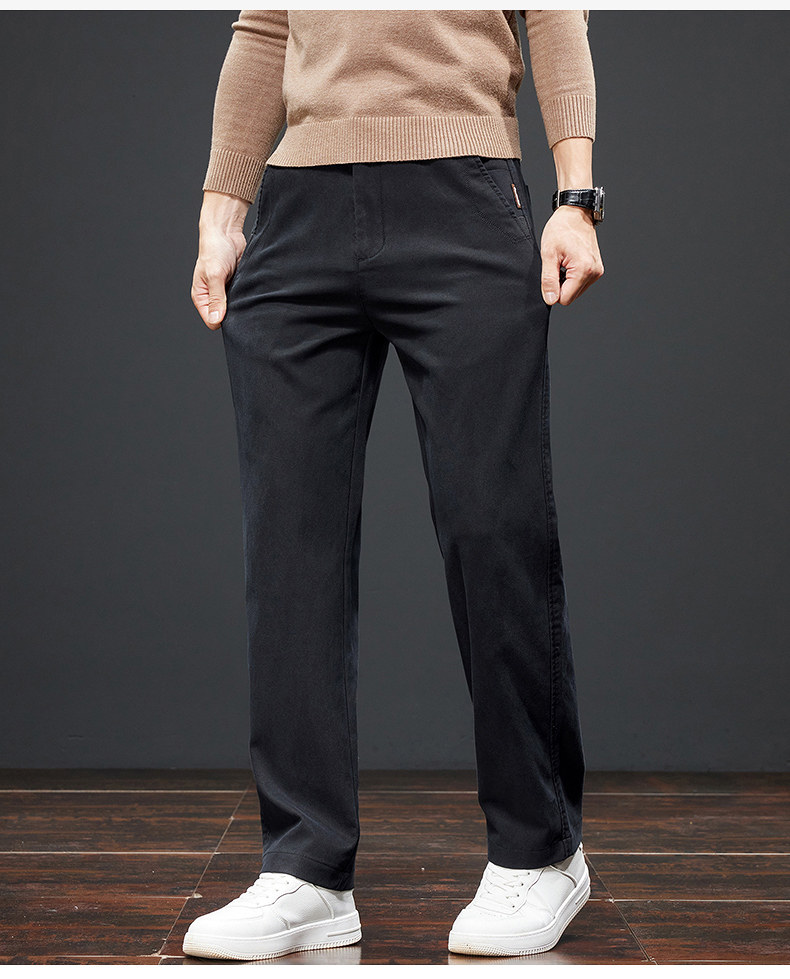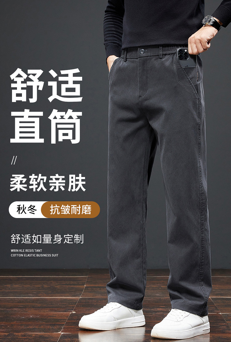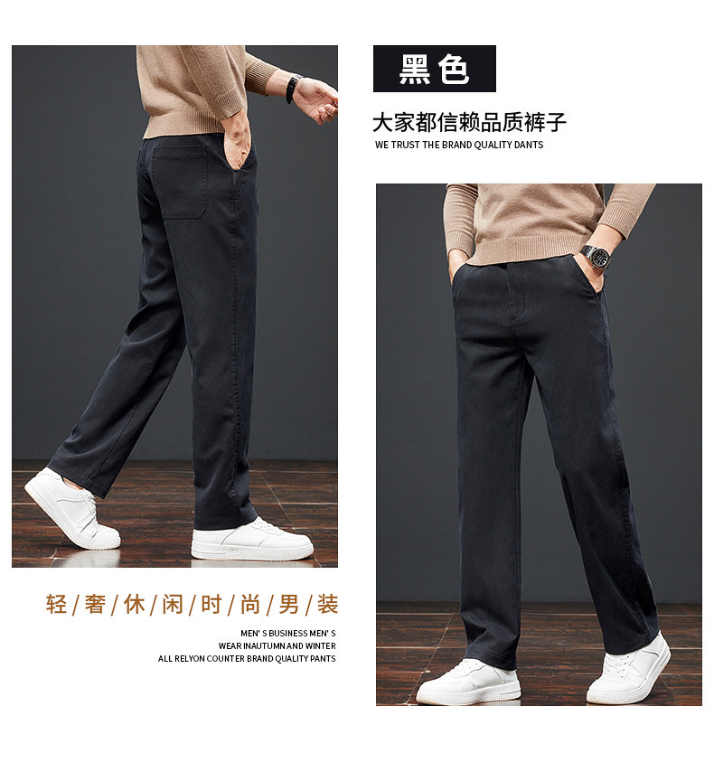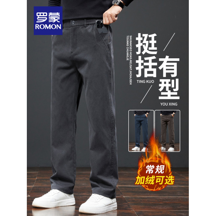 羅矇高級黑色寬鬆休閒褲秋冬季加絨加厚2025年新款保暖直筒商務男