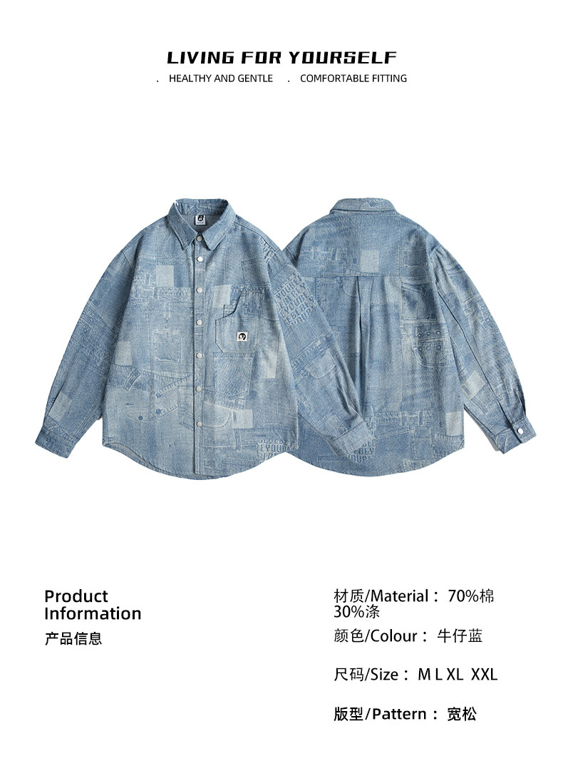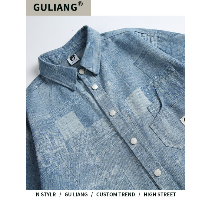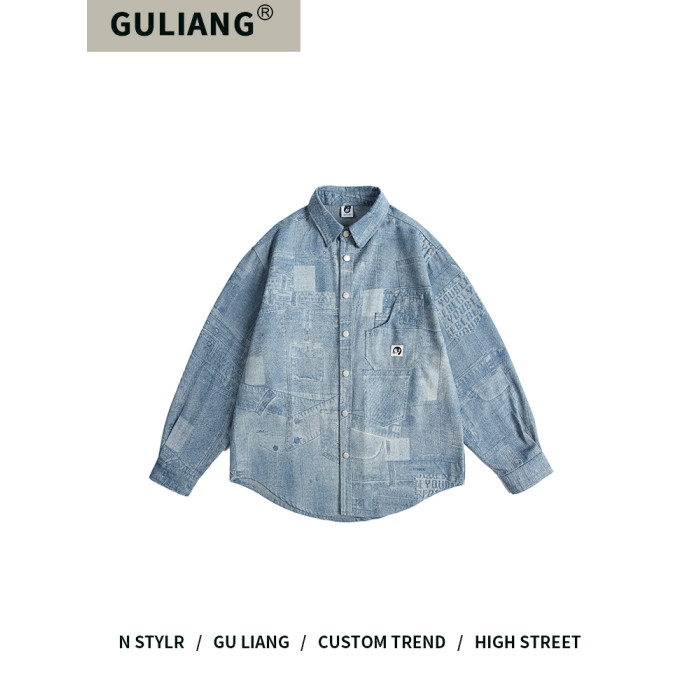 GU LIANG「設計師品牌」好物精選丨美式水洗做舊拼接百搭牛仔襯衫