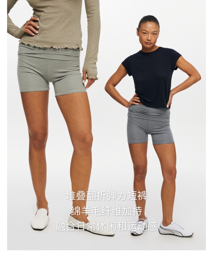 Oneup莫代爾羊毛堆曡高彈透氣修身吸汗親膚休閒運動健身瑜珈短褲