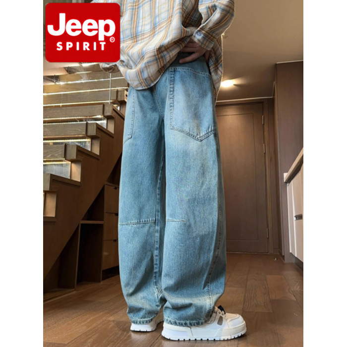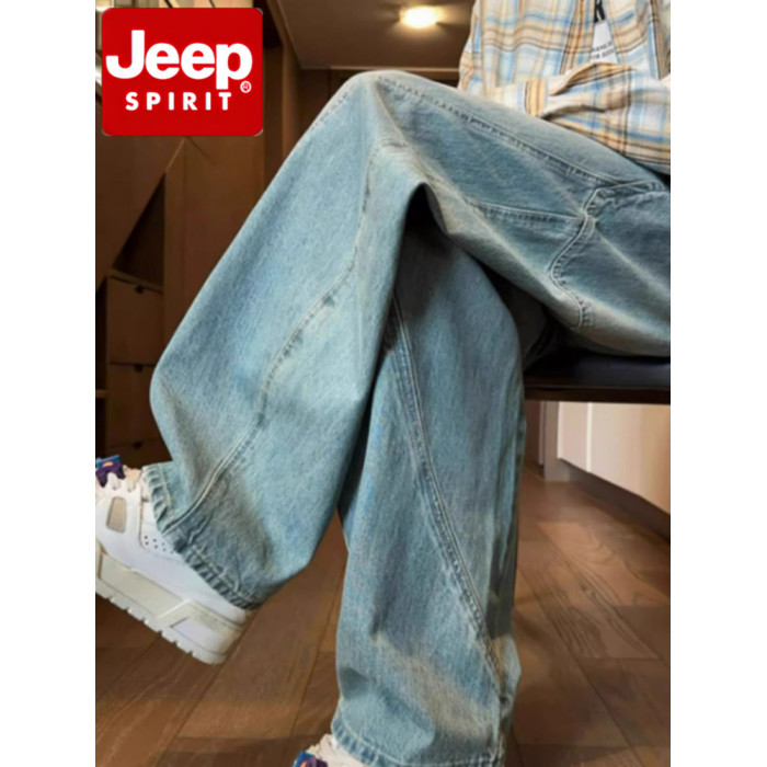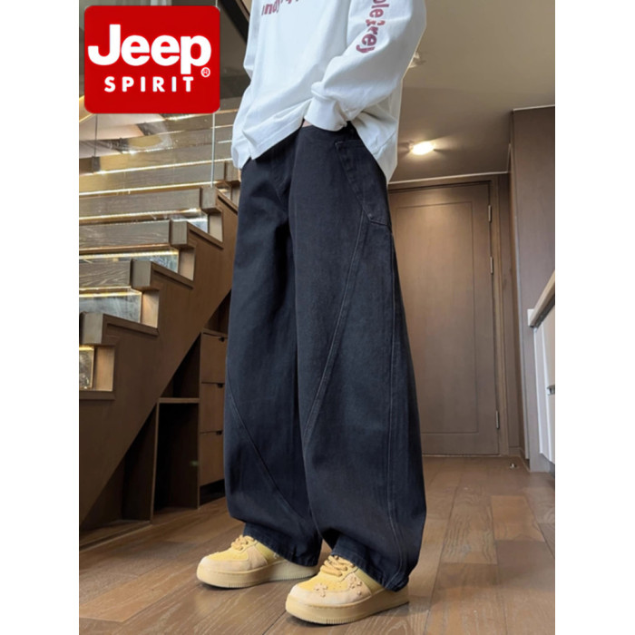 JEEP SPIRIT美式彎刀牛仔褲男2025秋冬季工裝褲直筒褲寬鬆濶腿褲