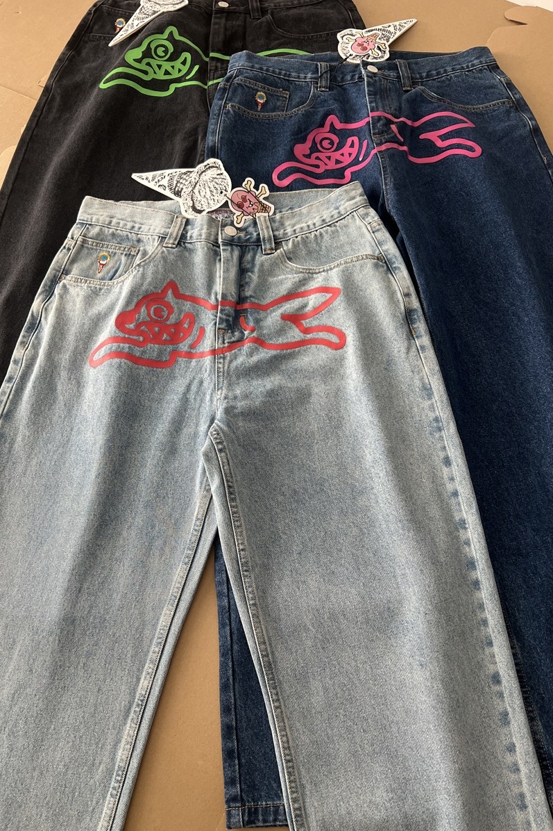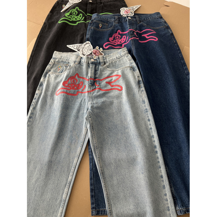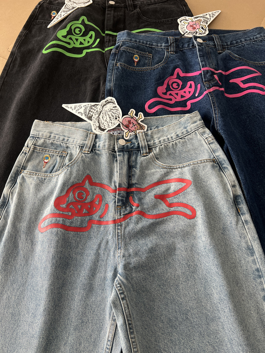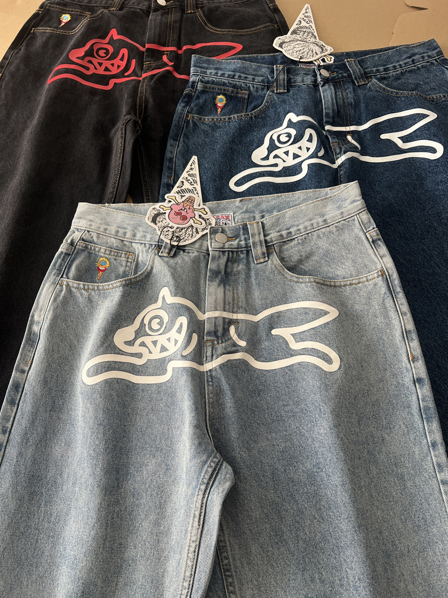 BBC飛狗ICECREAM美式高街飛狗印花牛仔褲男潮牌寬鬆直筒休閒長褲