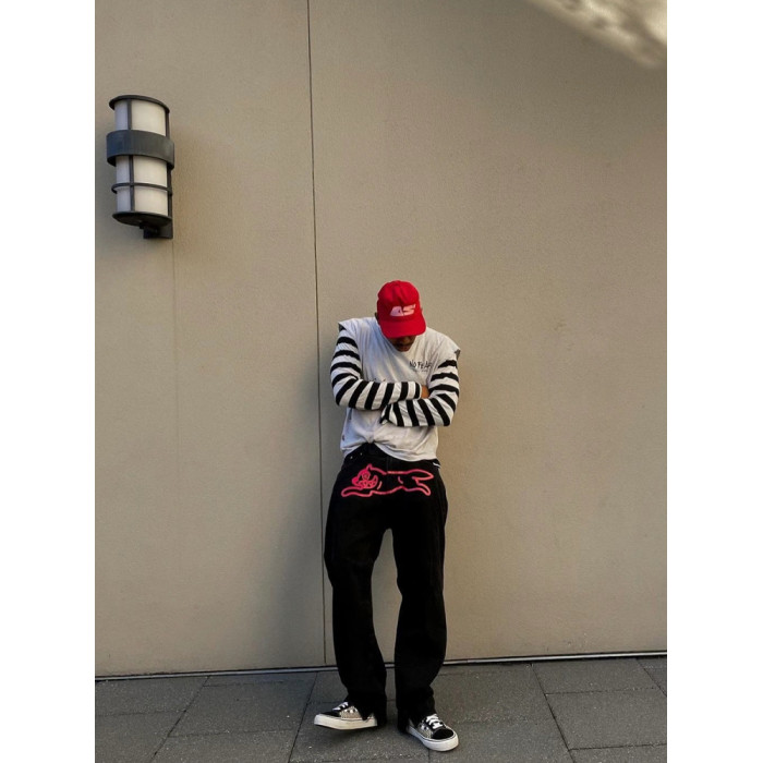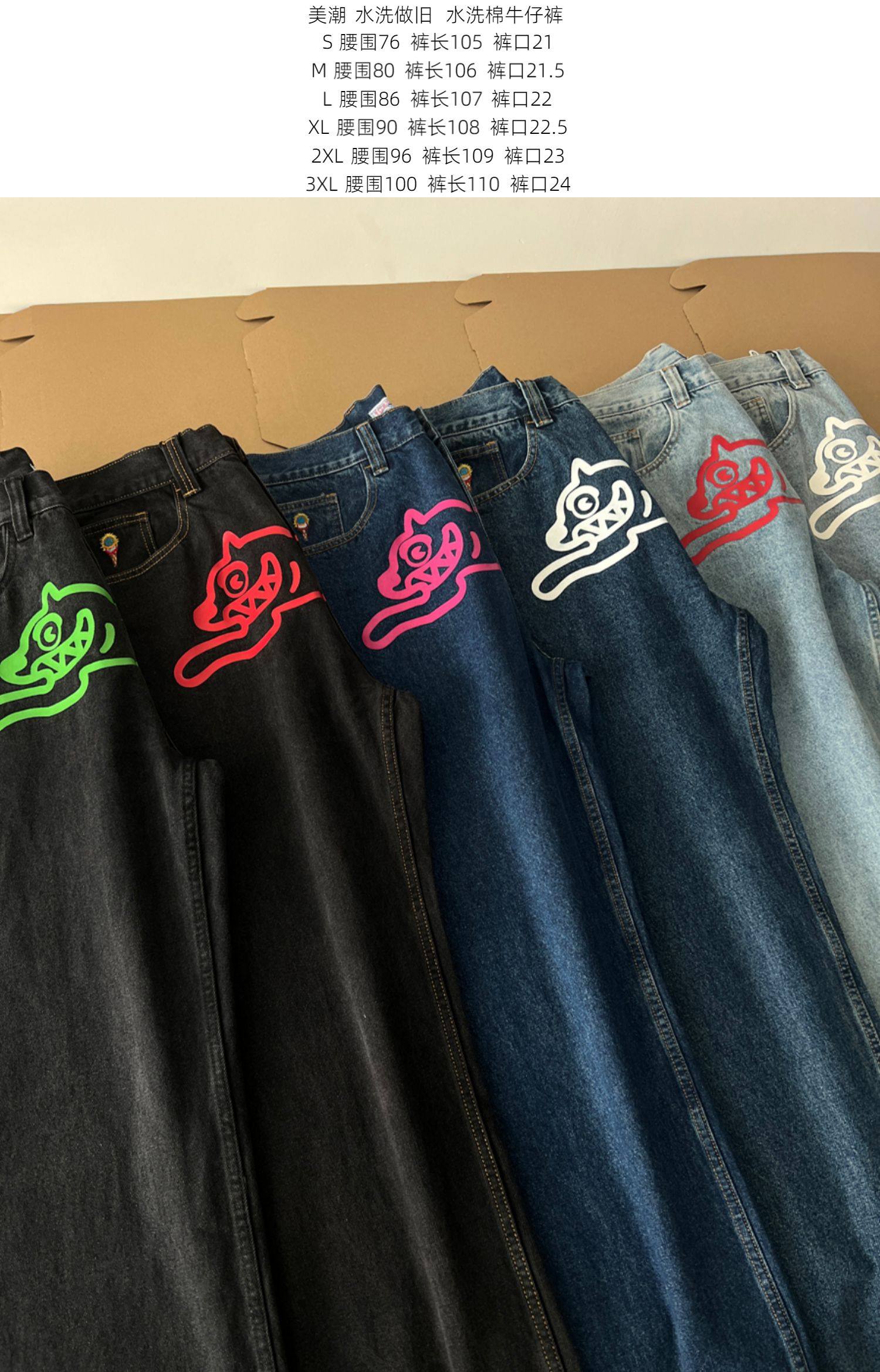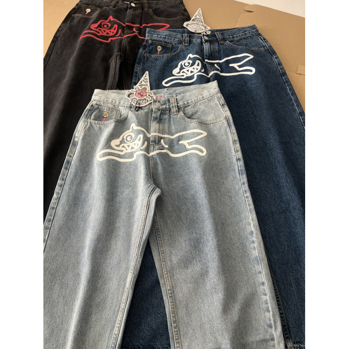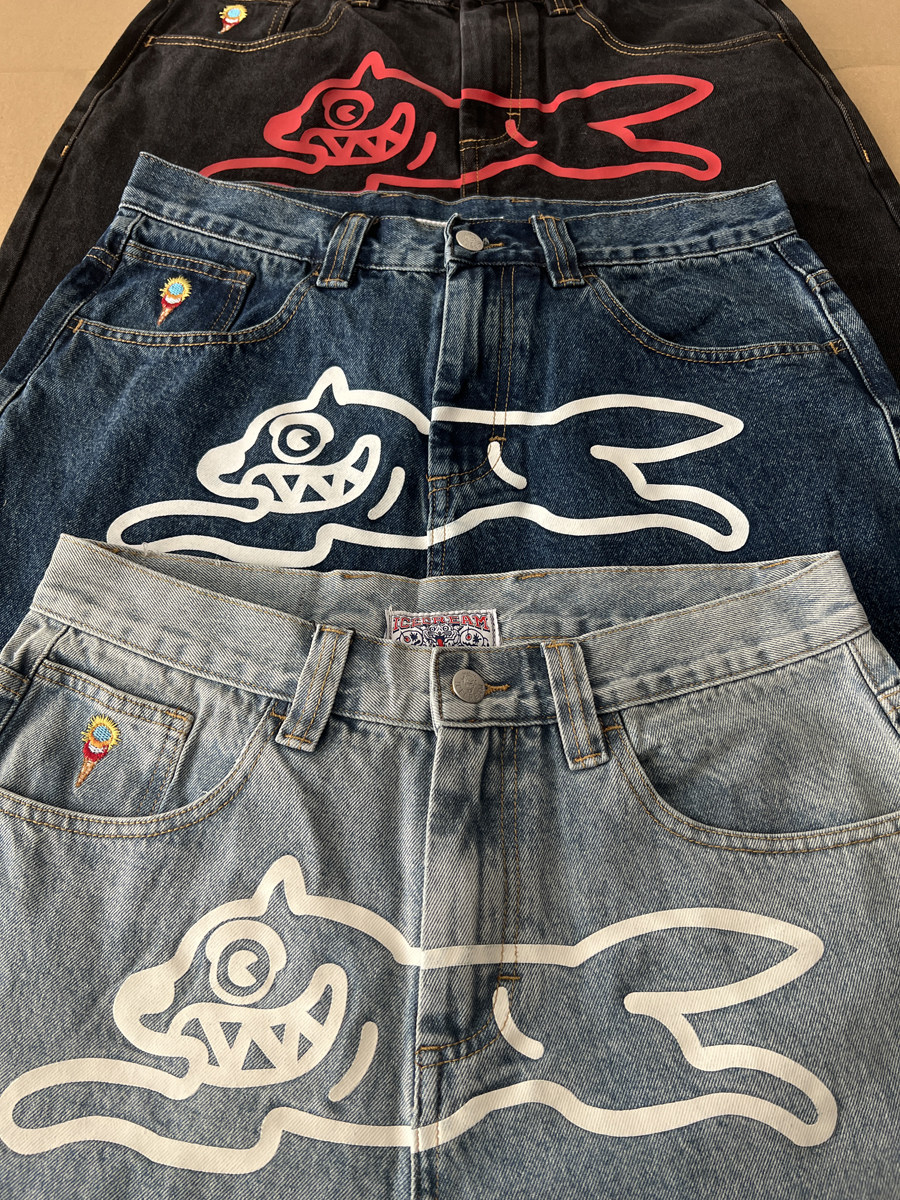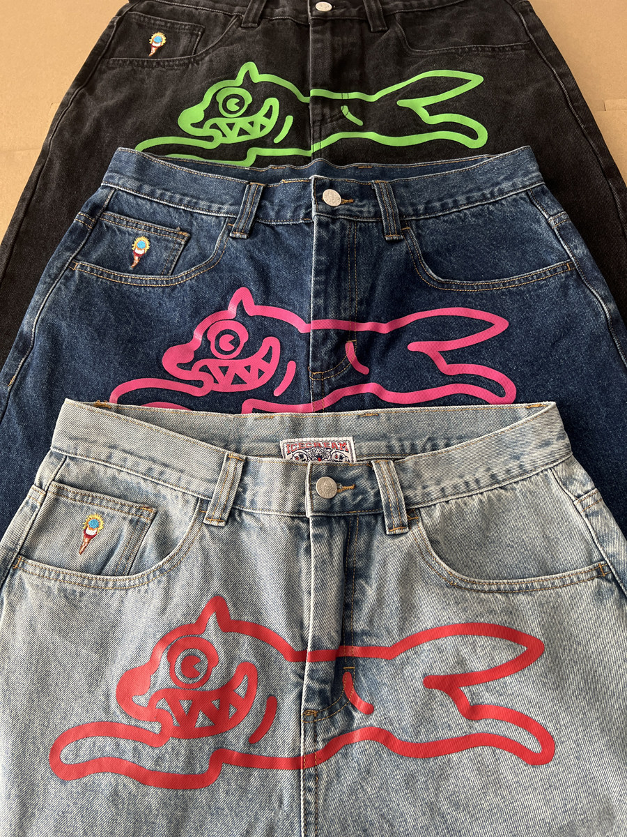 BBC飛狗ICECREAM美式高街飛狗印花牛仔褲男潮牌寬鬆直筒休閒長褲