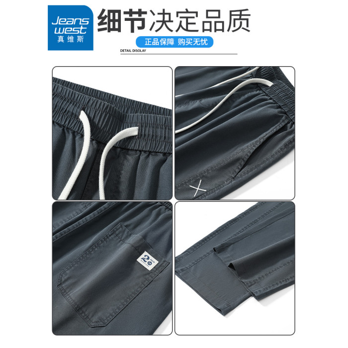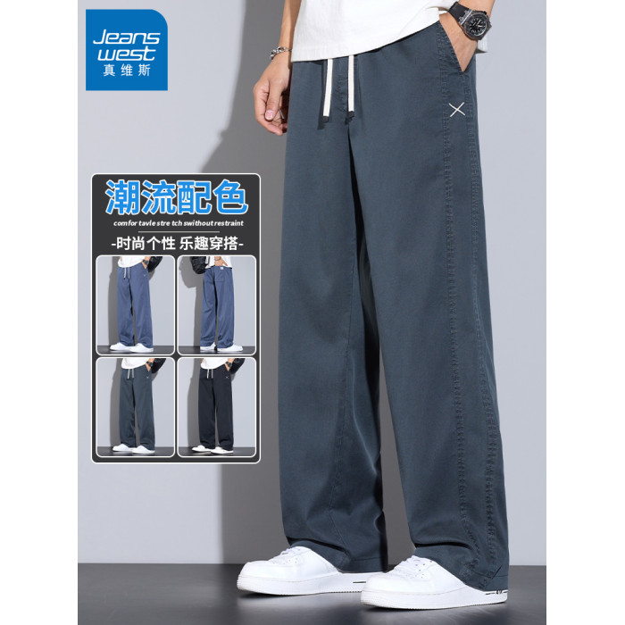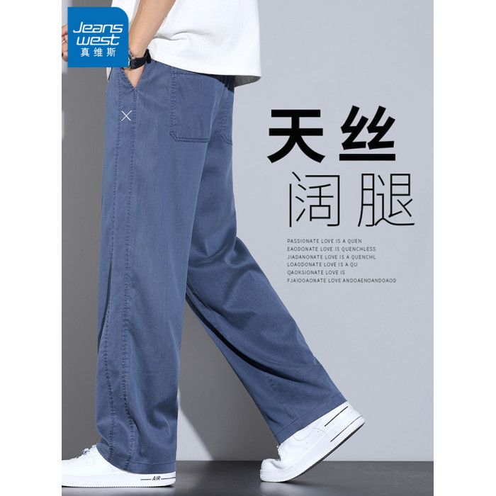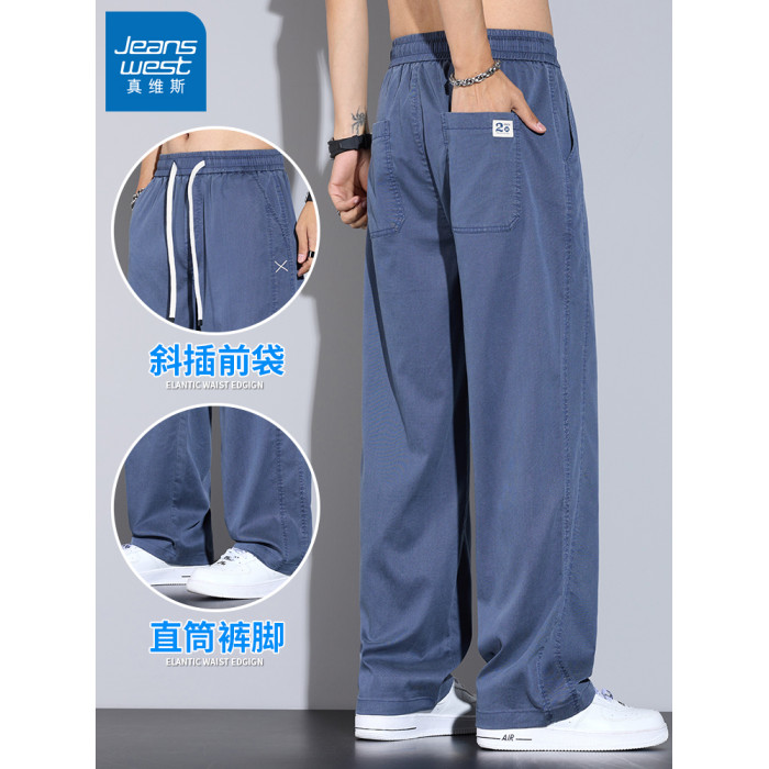 真維斯薄款天絲牛仔褲男士寬鬆直筒新款夏季休閒男褲冰絲運動褲子