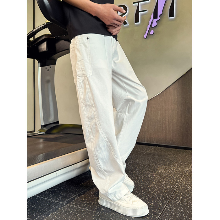 Oboy夏季高級感工裝彎刀褲男潮牌寬鬆濶腿褲2025新款痞帥休閒褲子