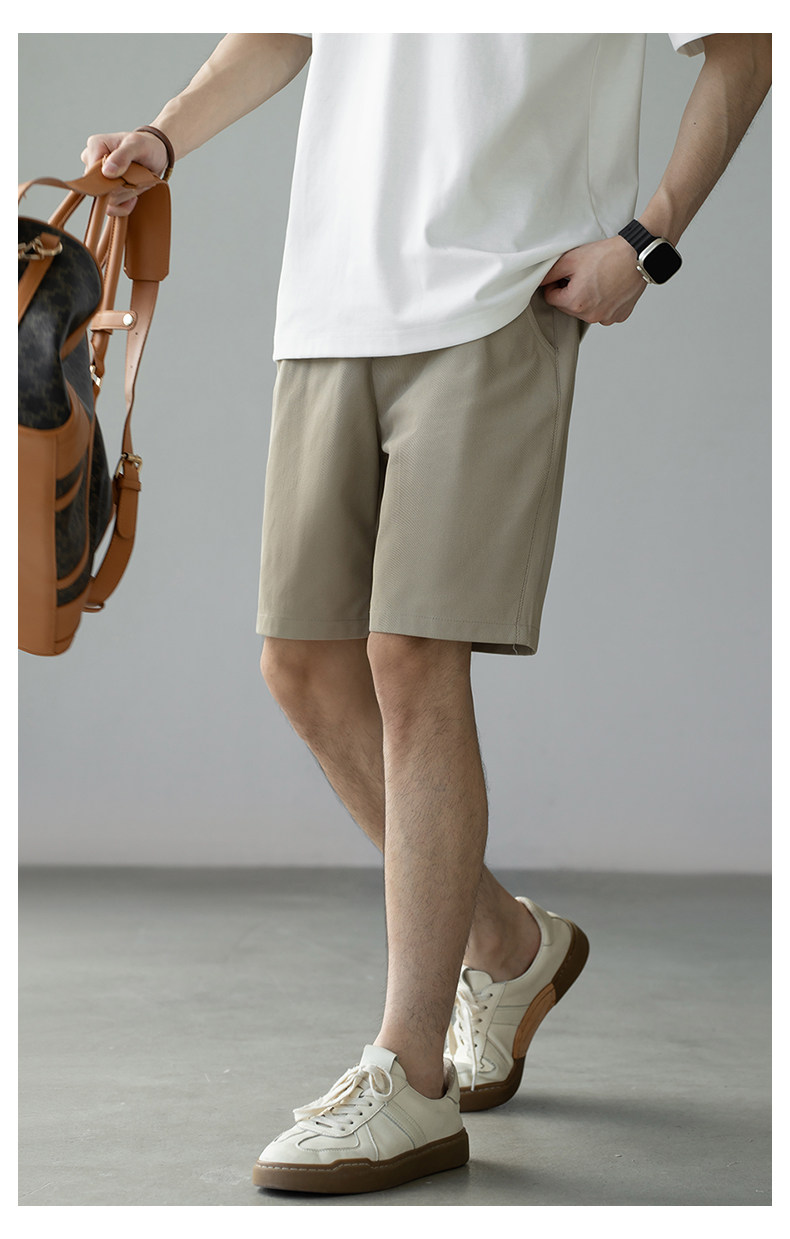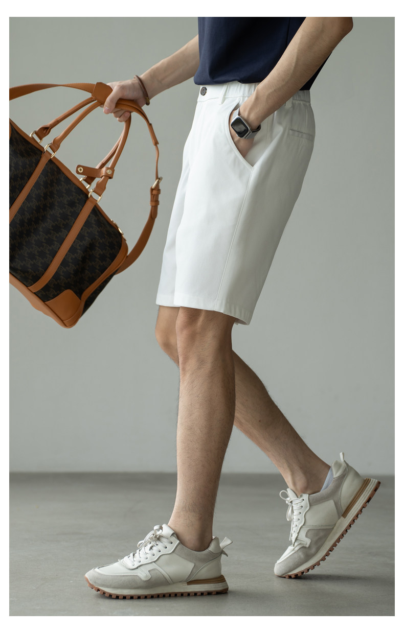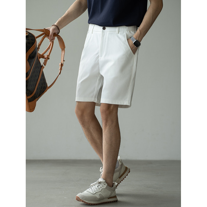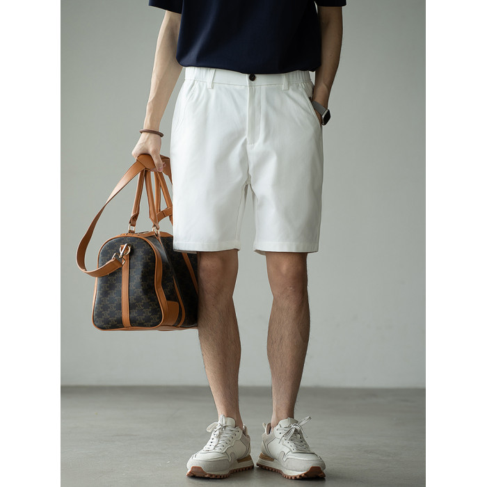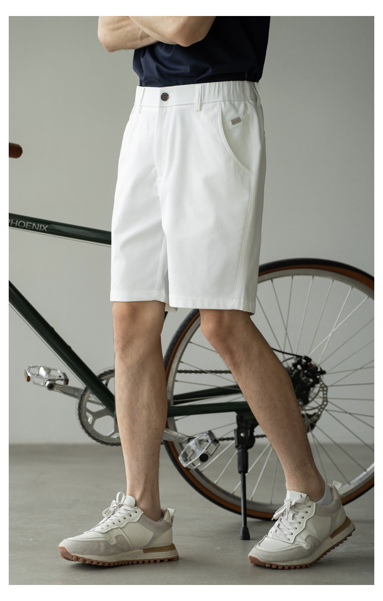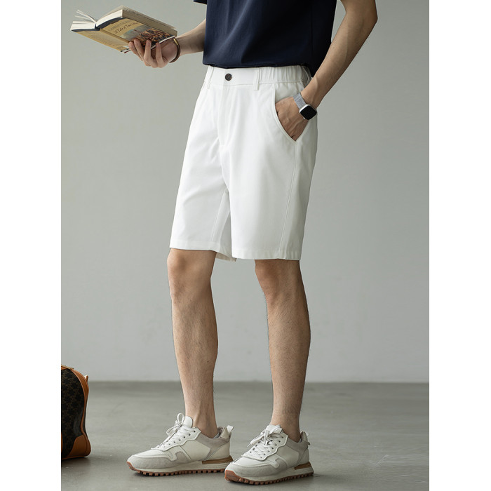【都市休閒系列】垂感直筒白色五分褲男士2025夏松緊休閒運動短褲
