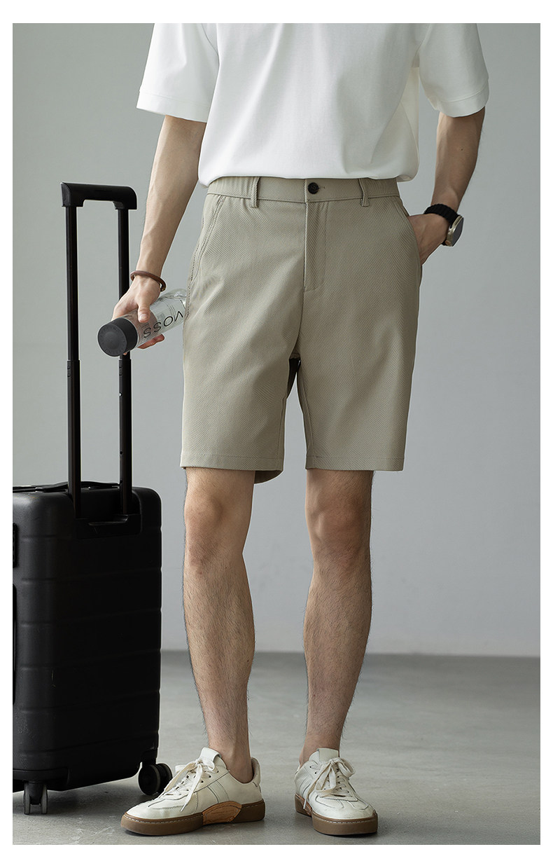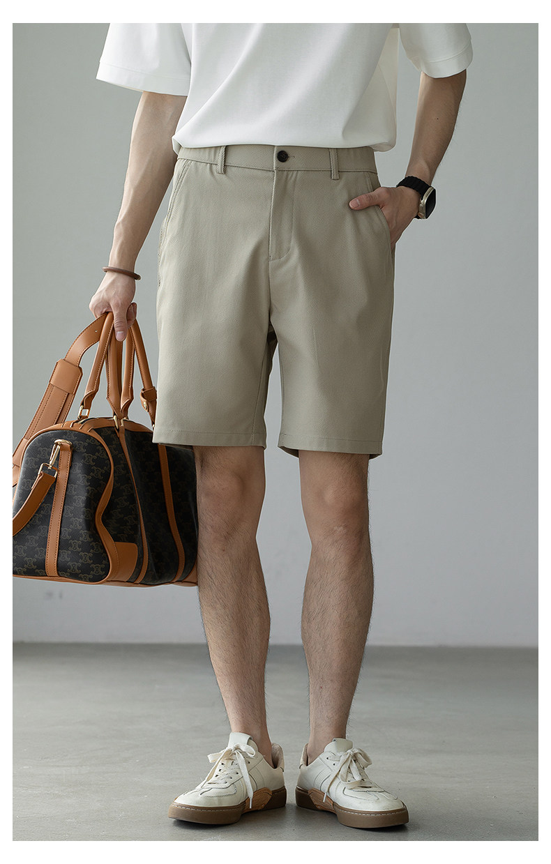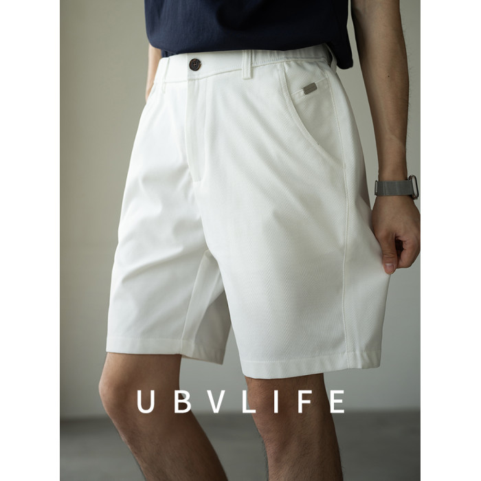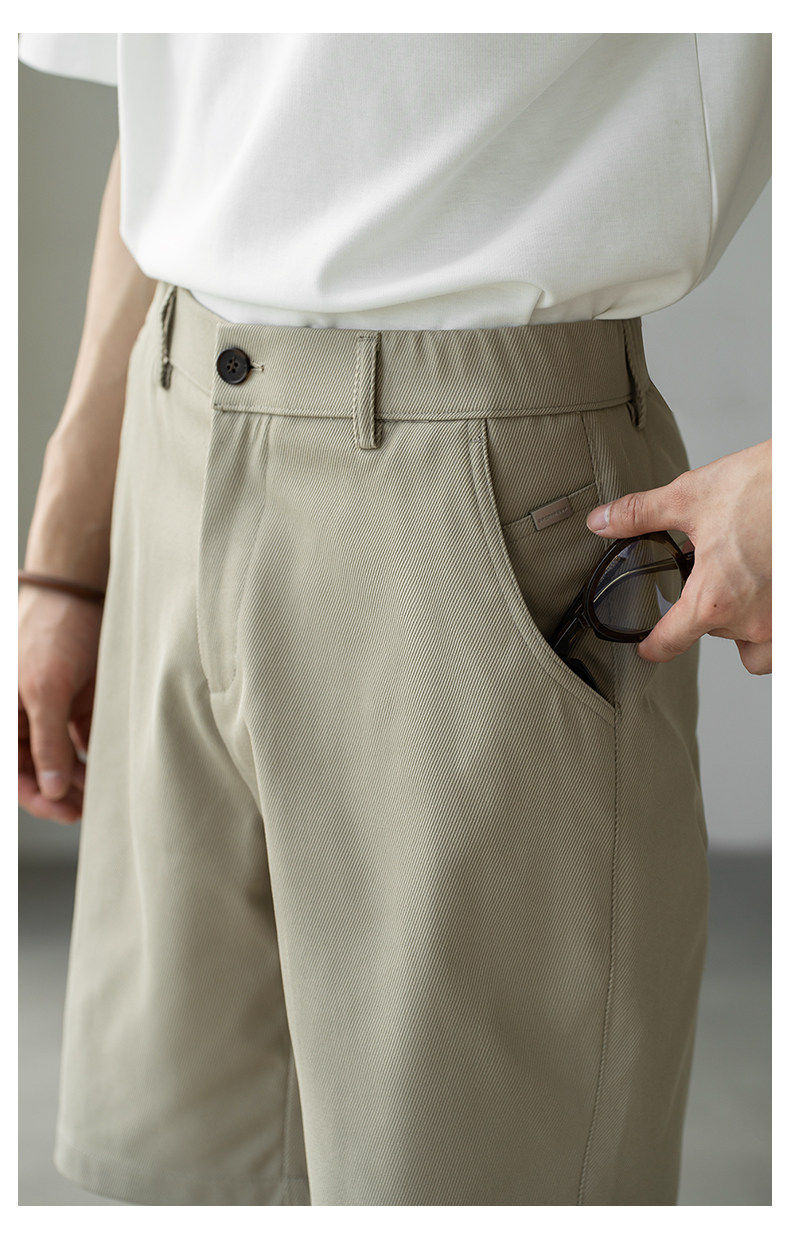 【都市休閒系列】垂感直筒白色五分褲男士2025夏松緊休閒運動短褲