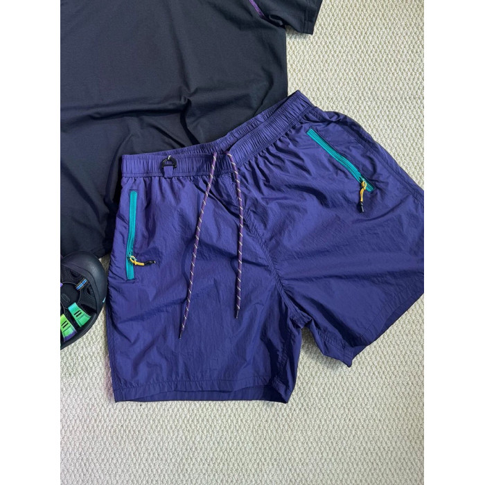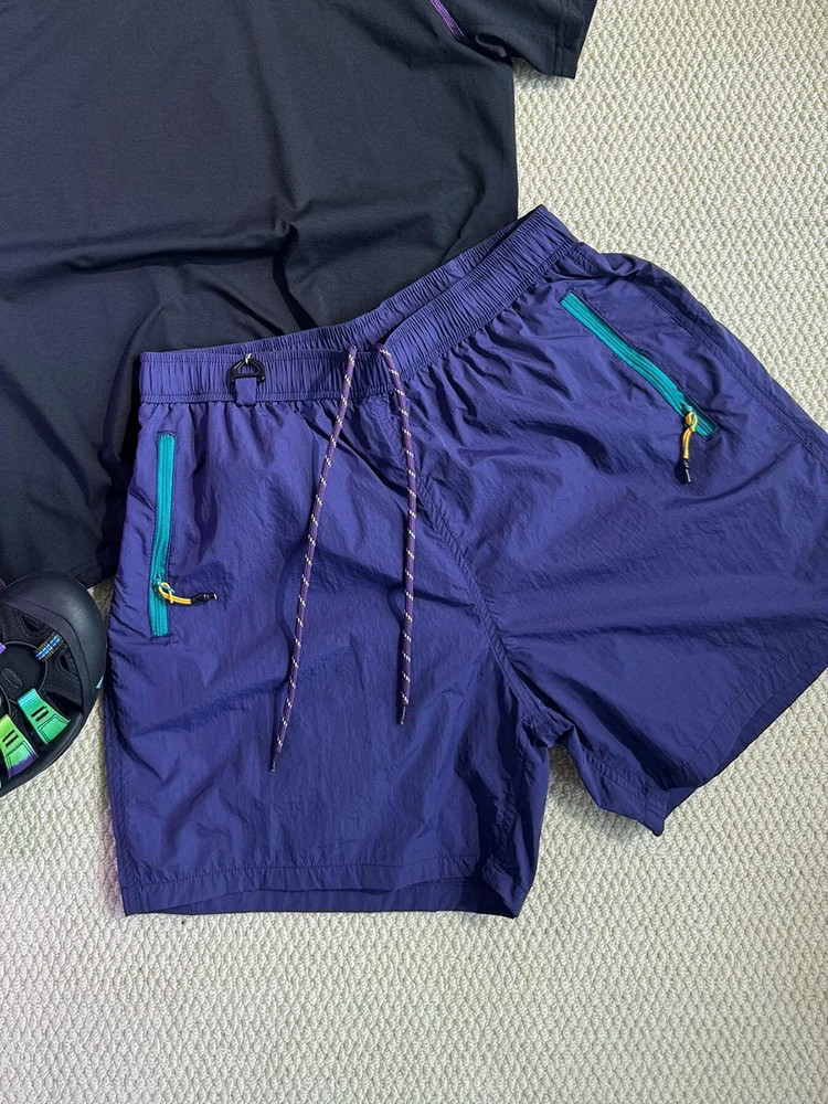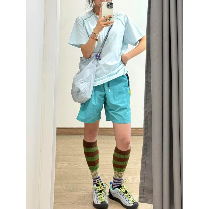 美式撞色拉鍊口袋防水速乾短褲男女夏季機能登山運動休閒五分褲