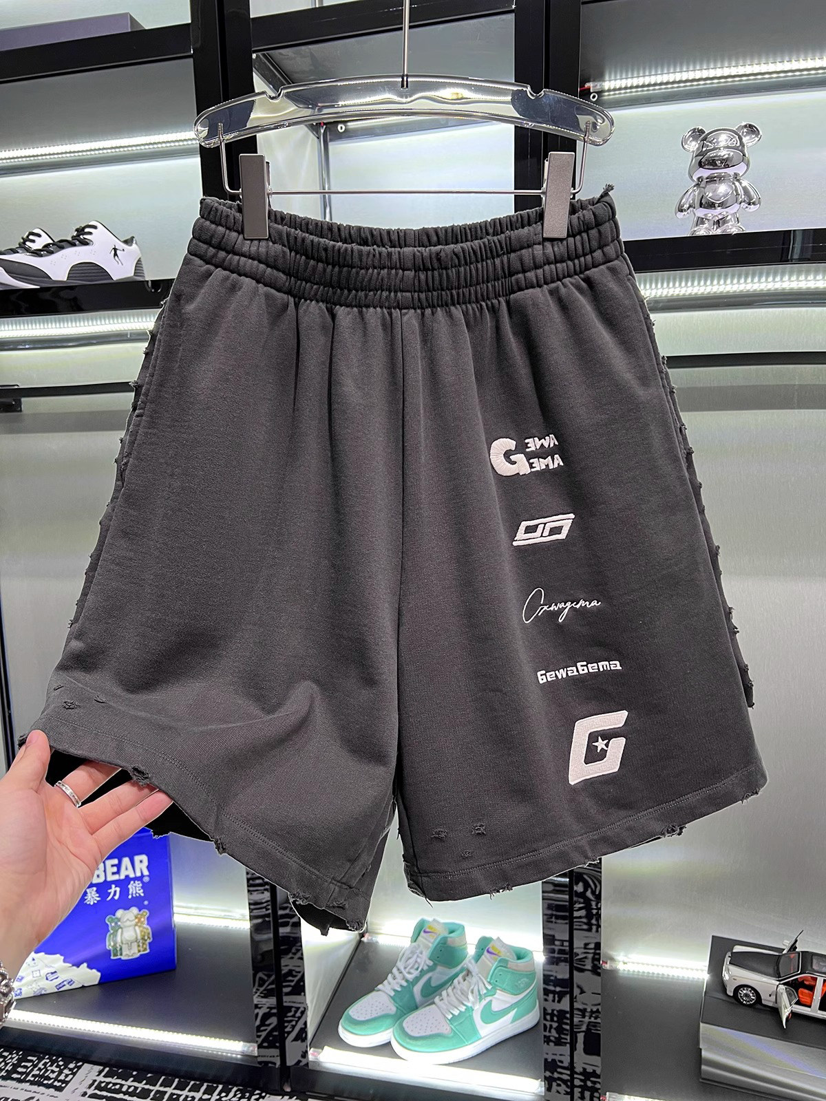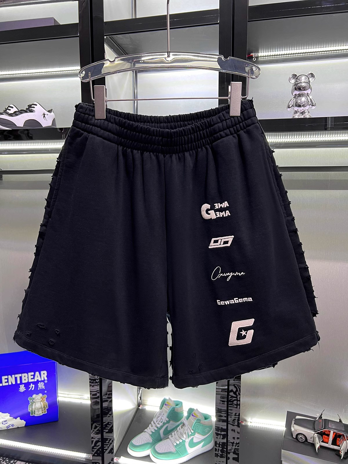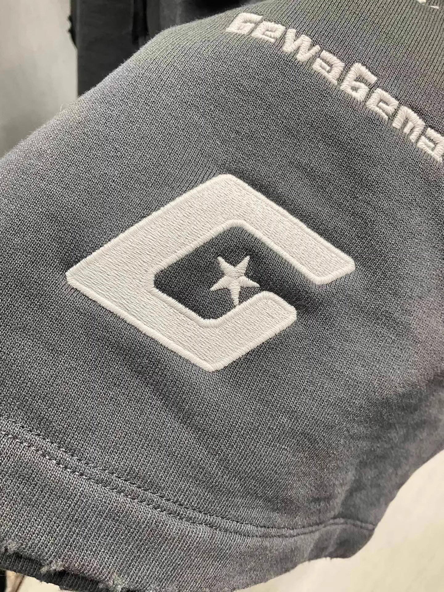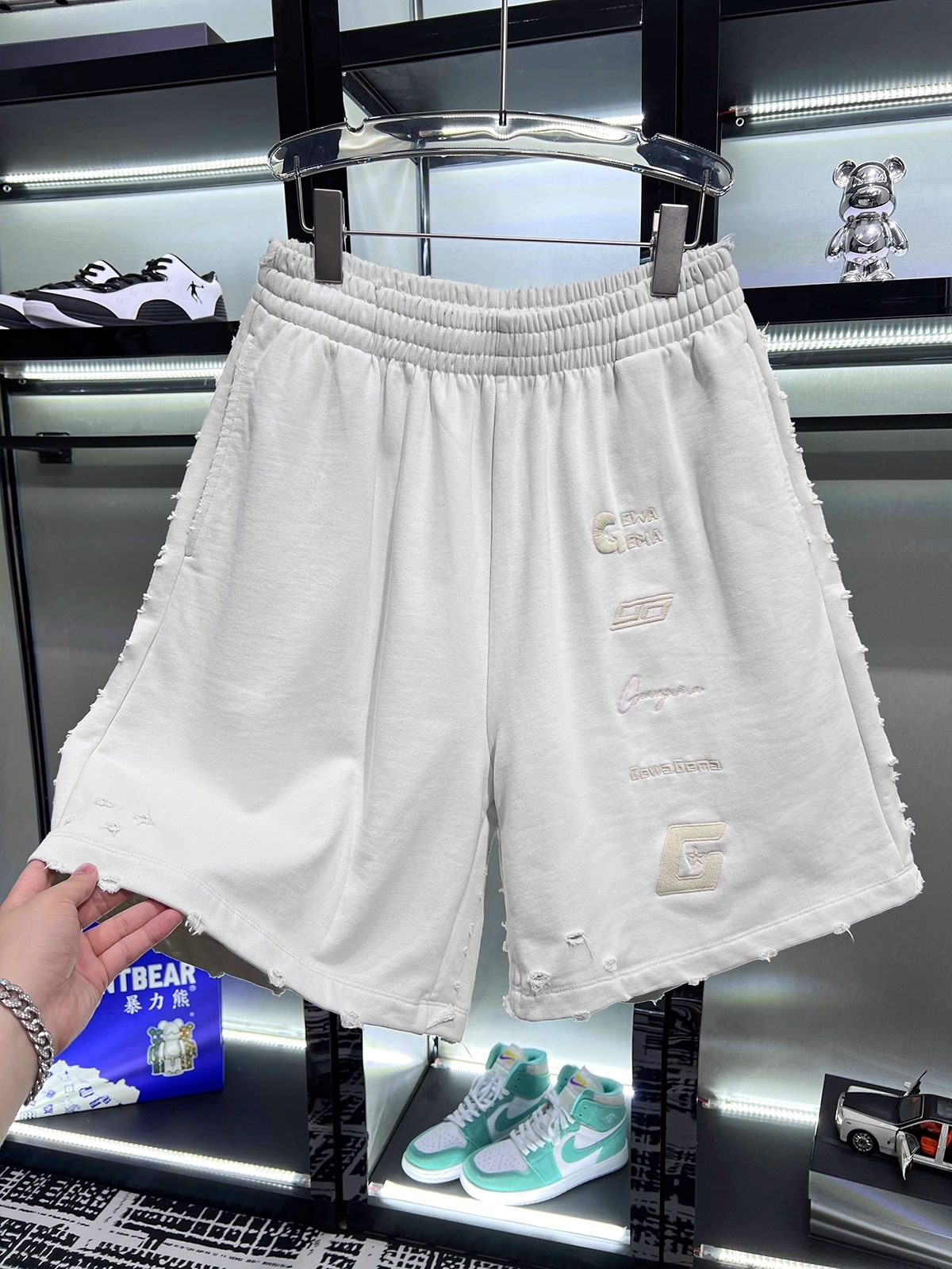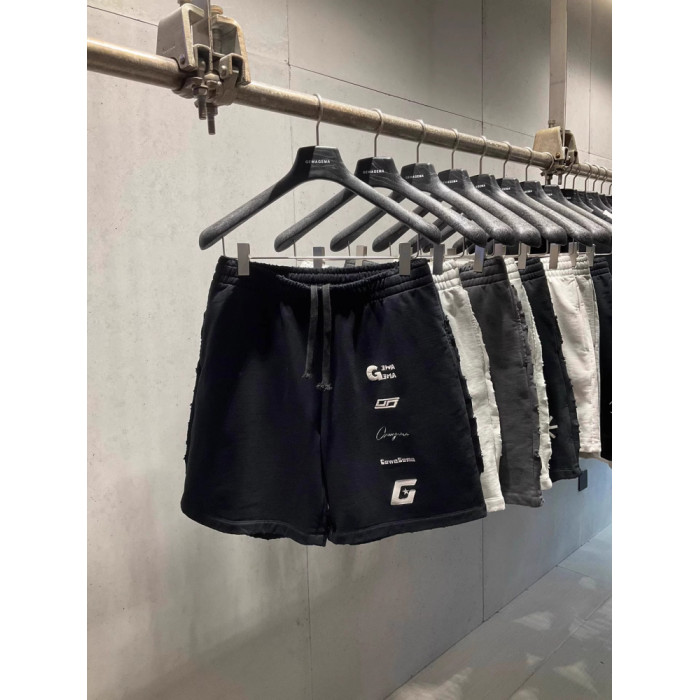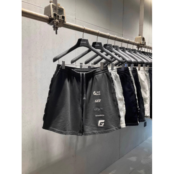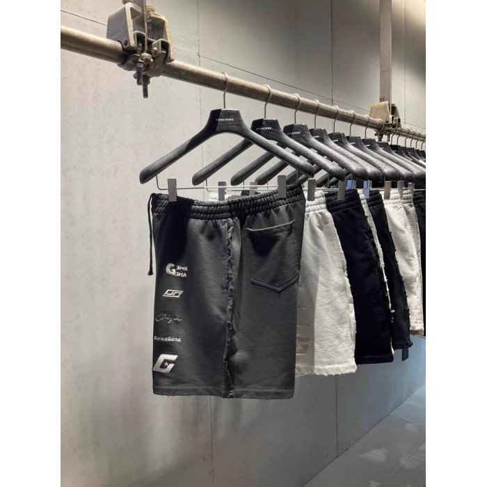 美式重磅夏季2025ss刺綉寬鬆短褲男女同款短褲大碼潮牌五分褲磨破