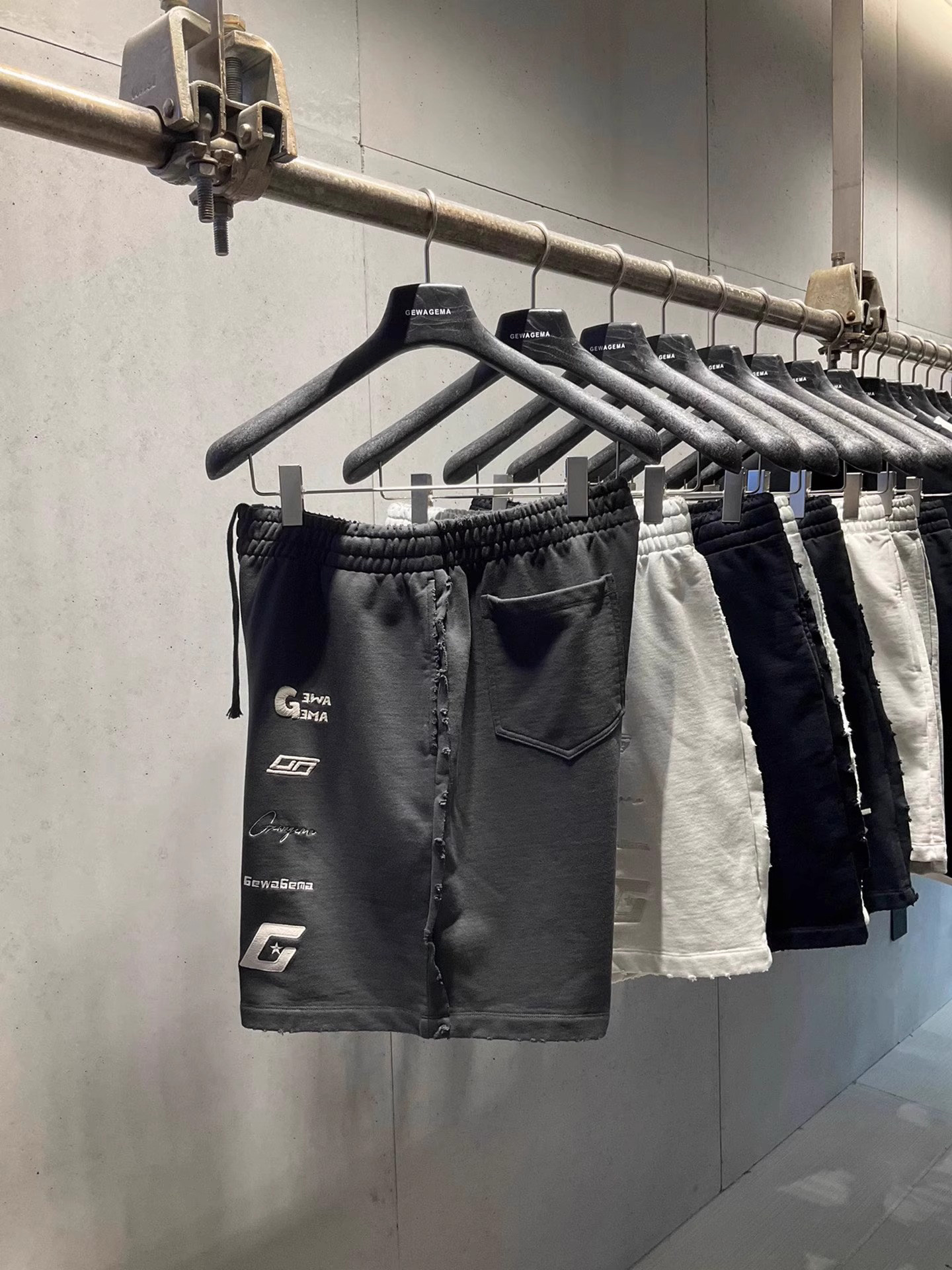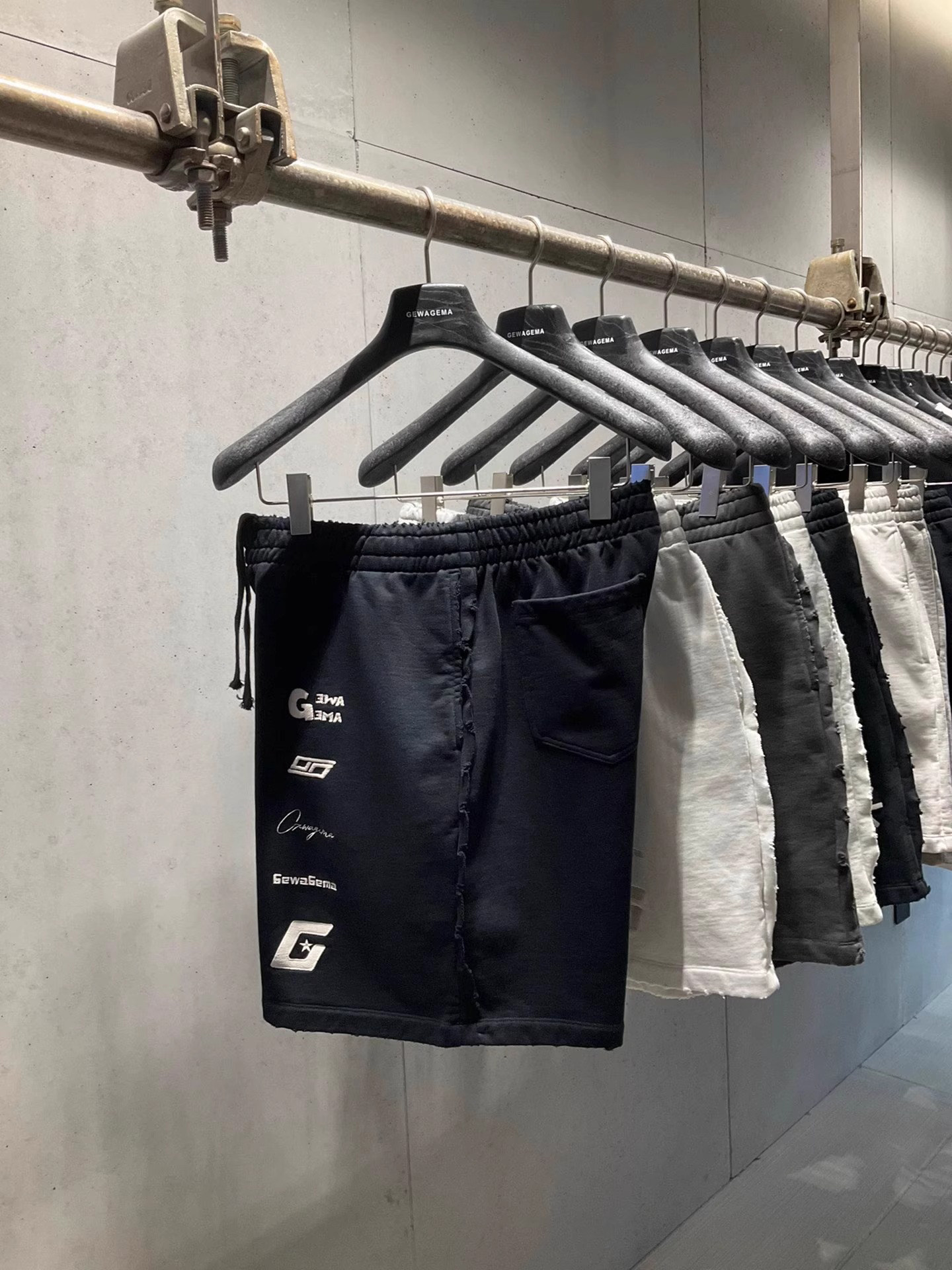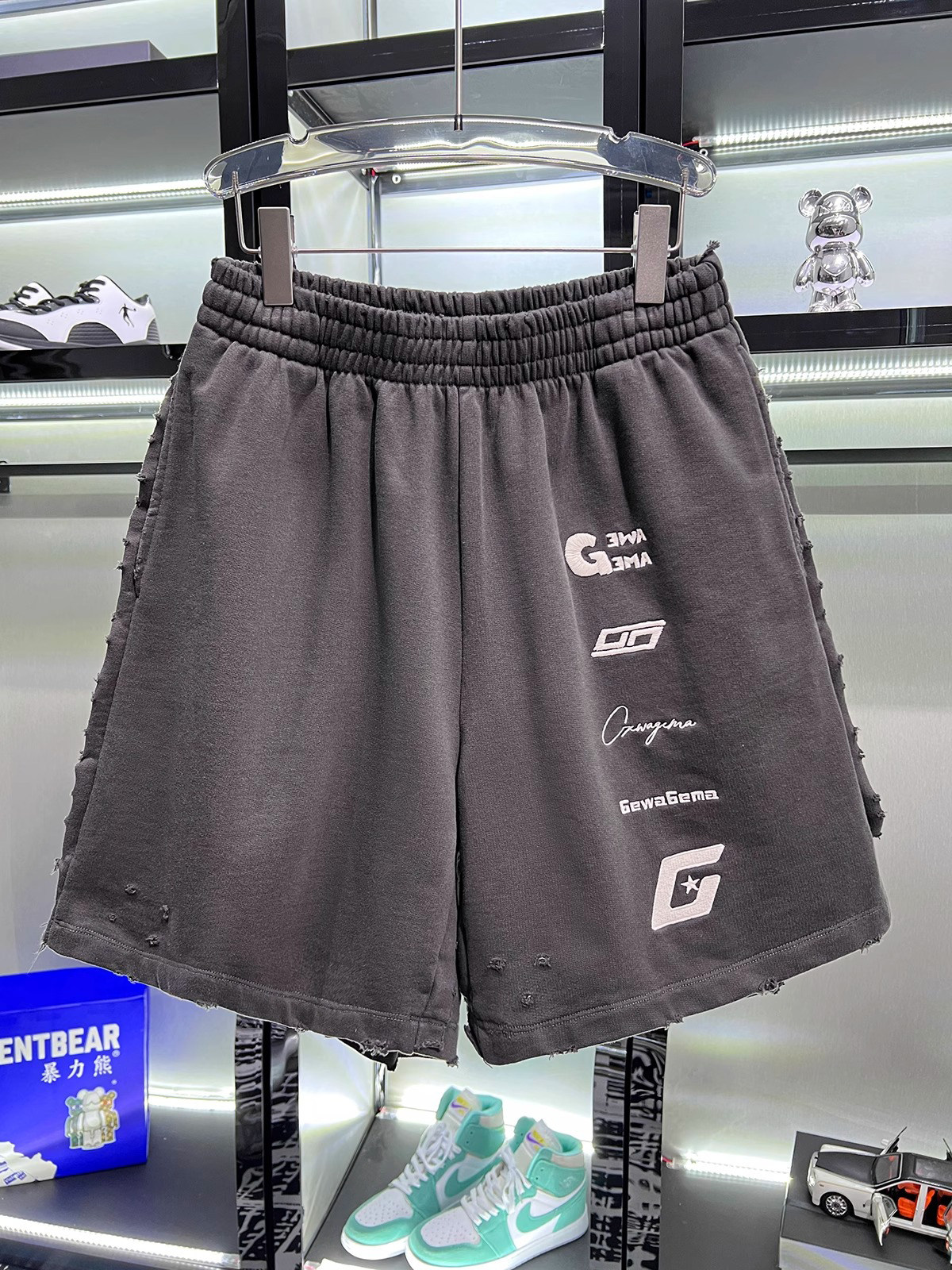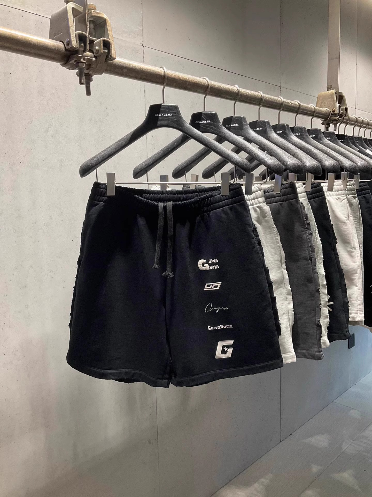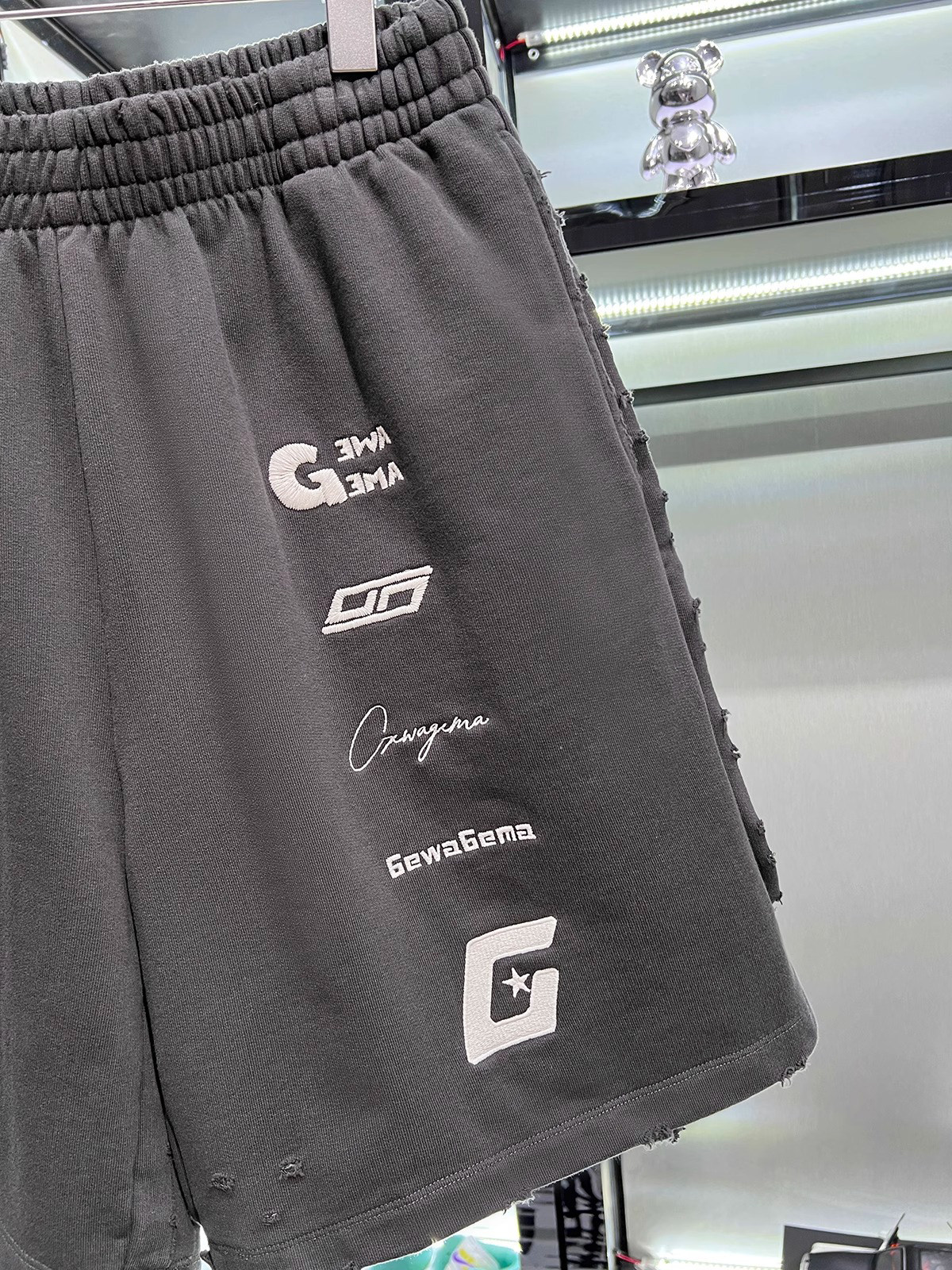 美式重磅夏季2025ss刺綉寬鬆短褲男女同款短褲大碼潮牌五分褲磨破