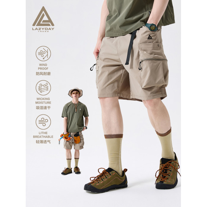 LAZY DAY戶外登山機能工裝短褲男夏季薄款涼感速乾運動徒步五分褲