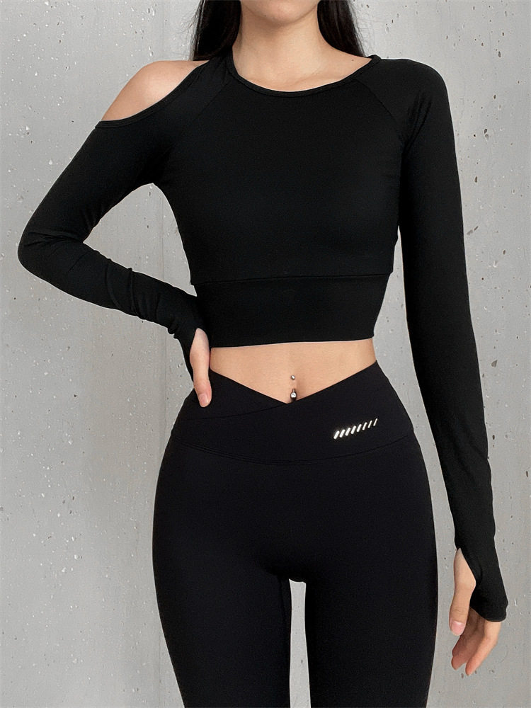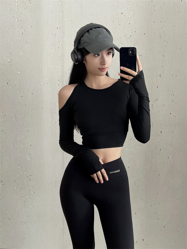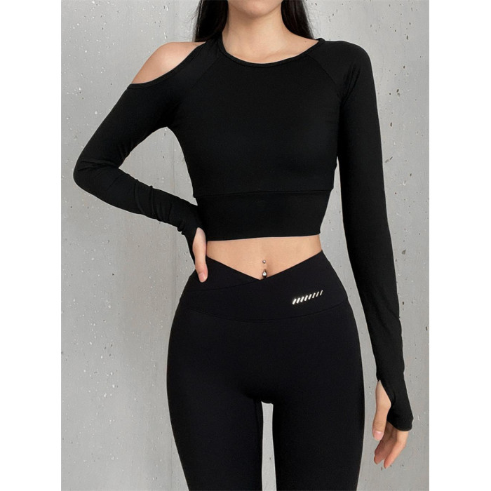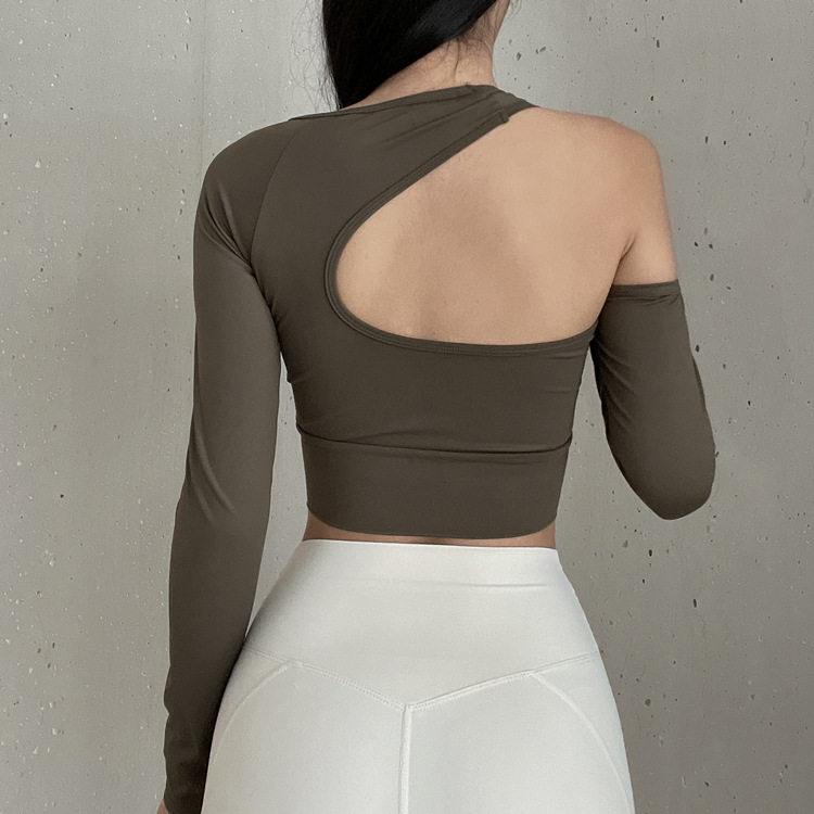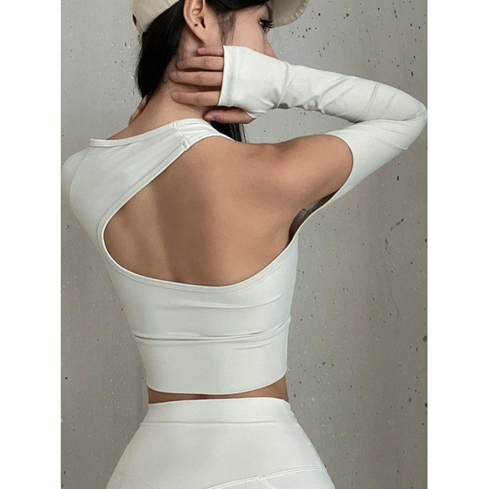 含胸墊健身長袖後背鏤空瑜珈服外穿訓練緊身上衣外穿假兩件運動衫