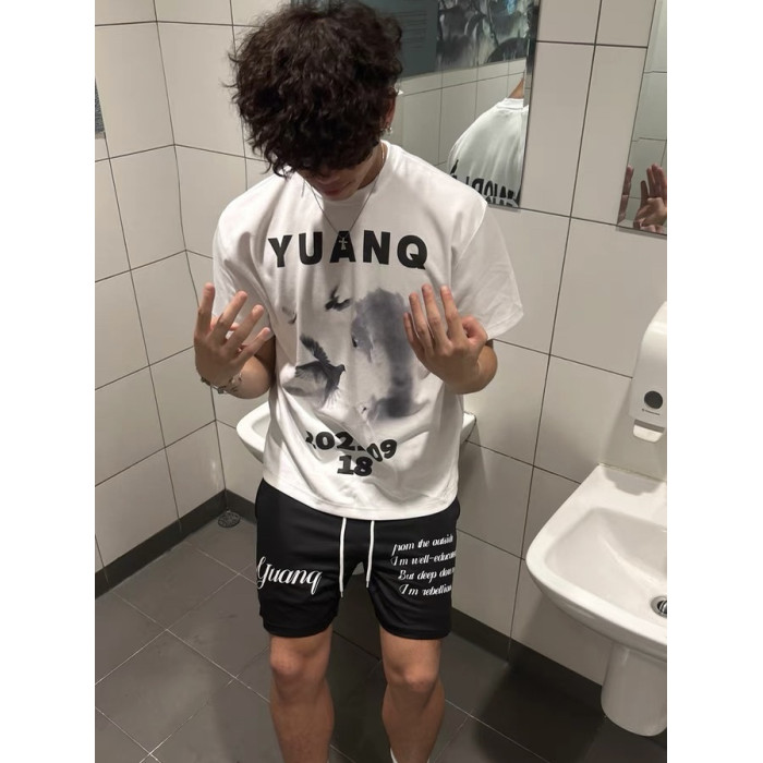 夏季美式字母印花網眼透氣四分褲男休閒訓練健身籃球不過膝短褲