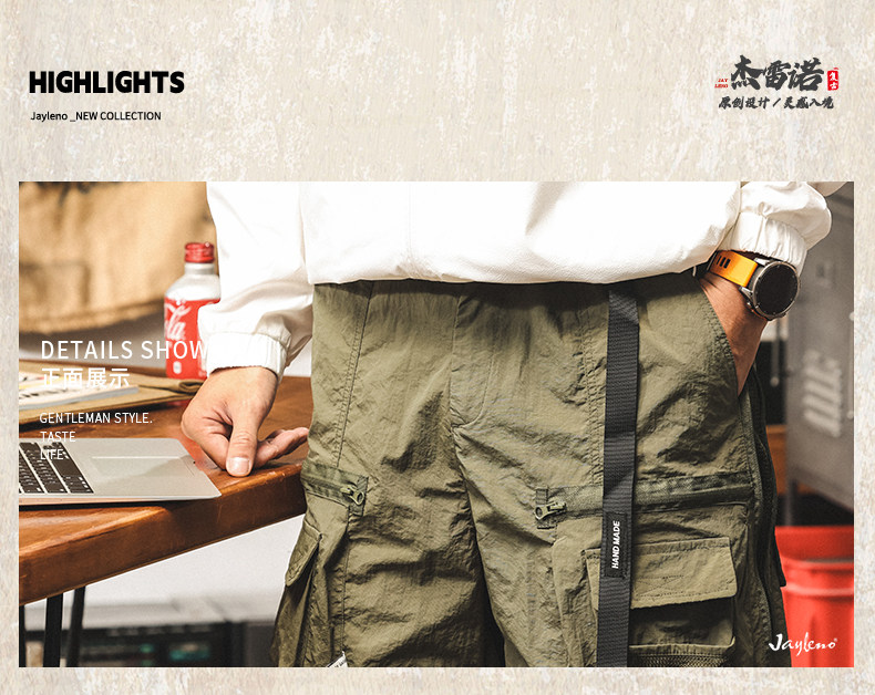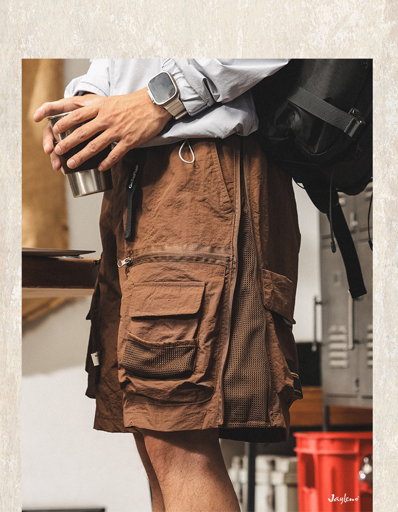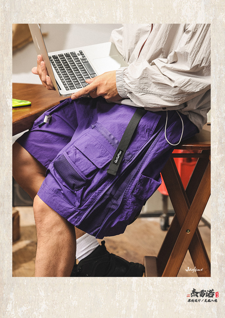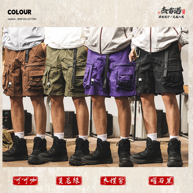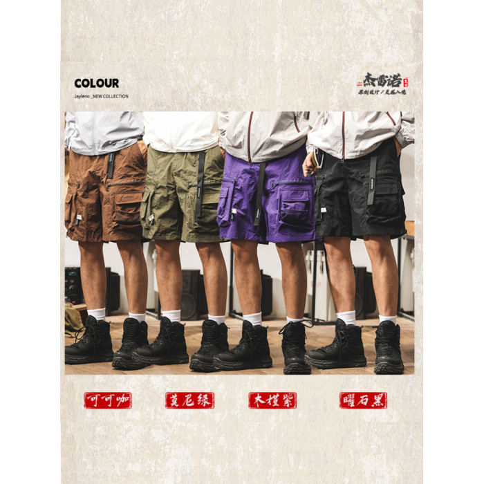 美式復古工裝短褲男潮牌夏季新款中褲寬鬆大碼休閒戰術機能五分褲