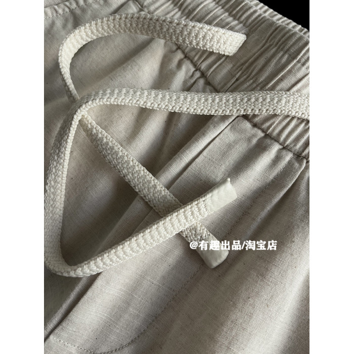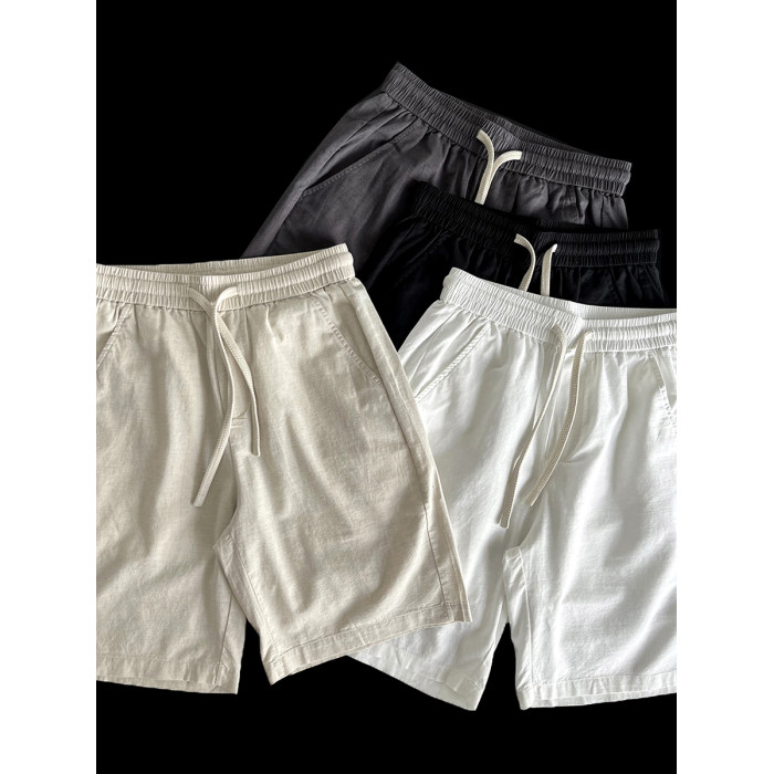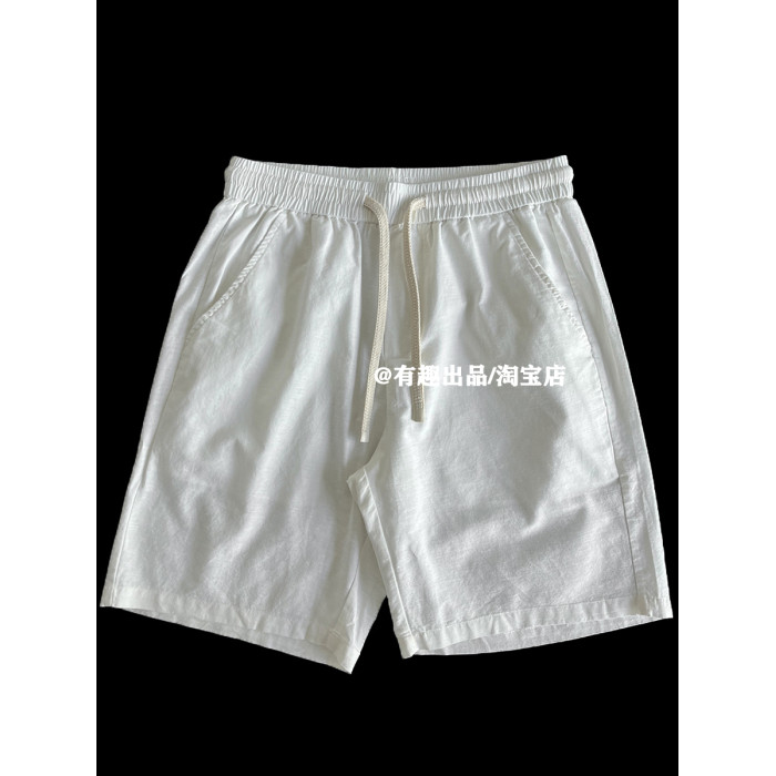 梭織棉麻品質日單夏季復古水洗亞麻抽繩短褲日常慵懶寬鬆五分褲男
