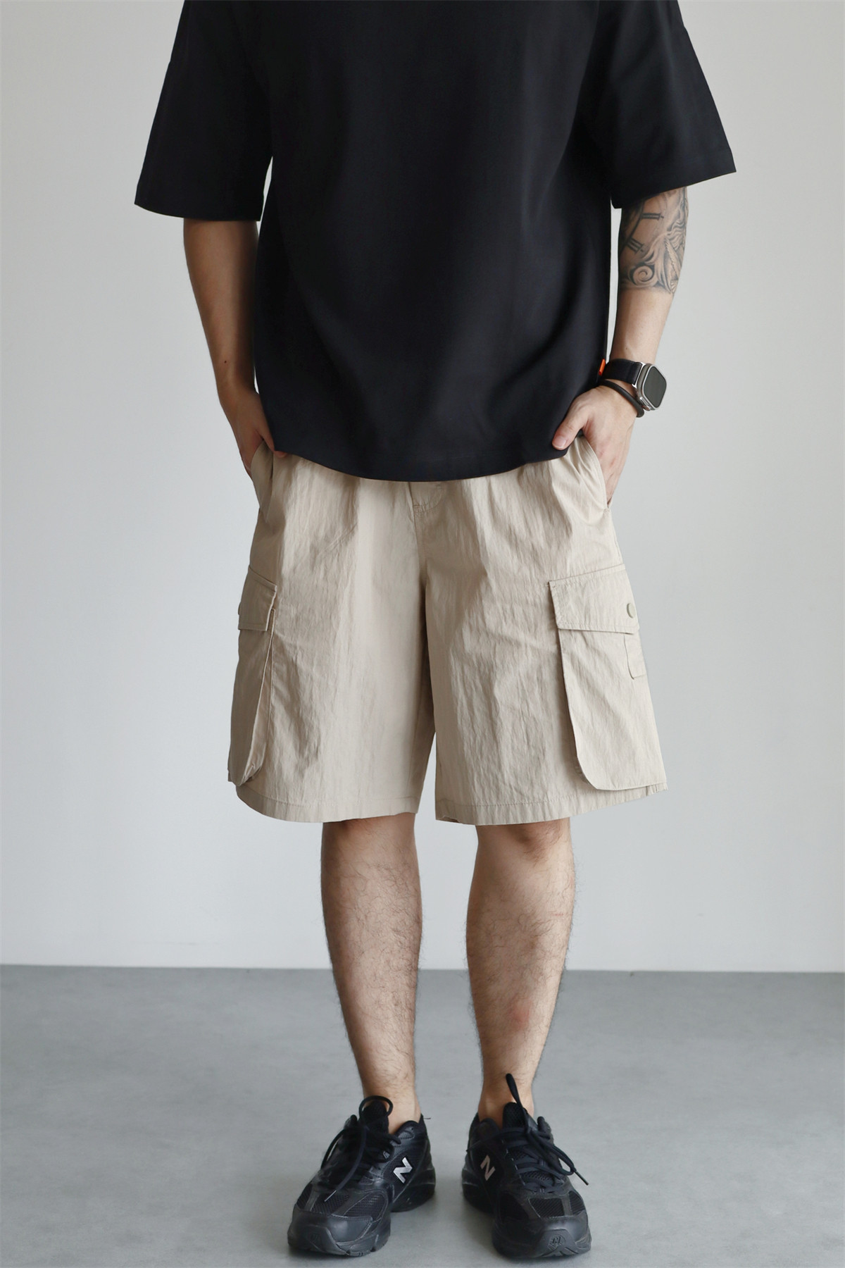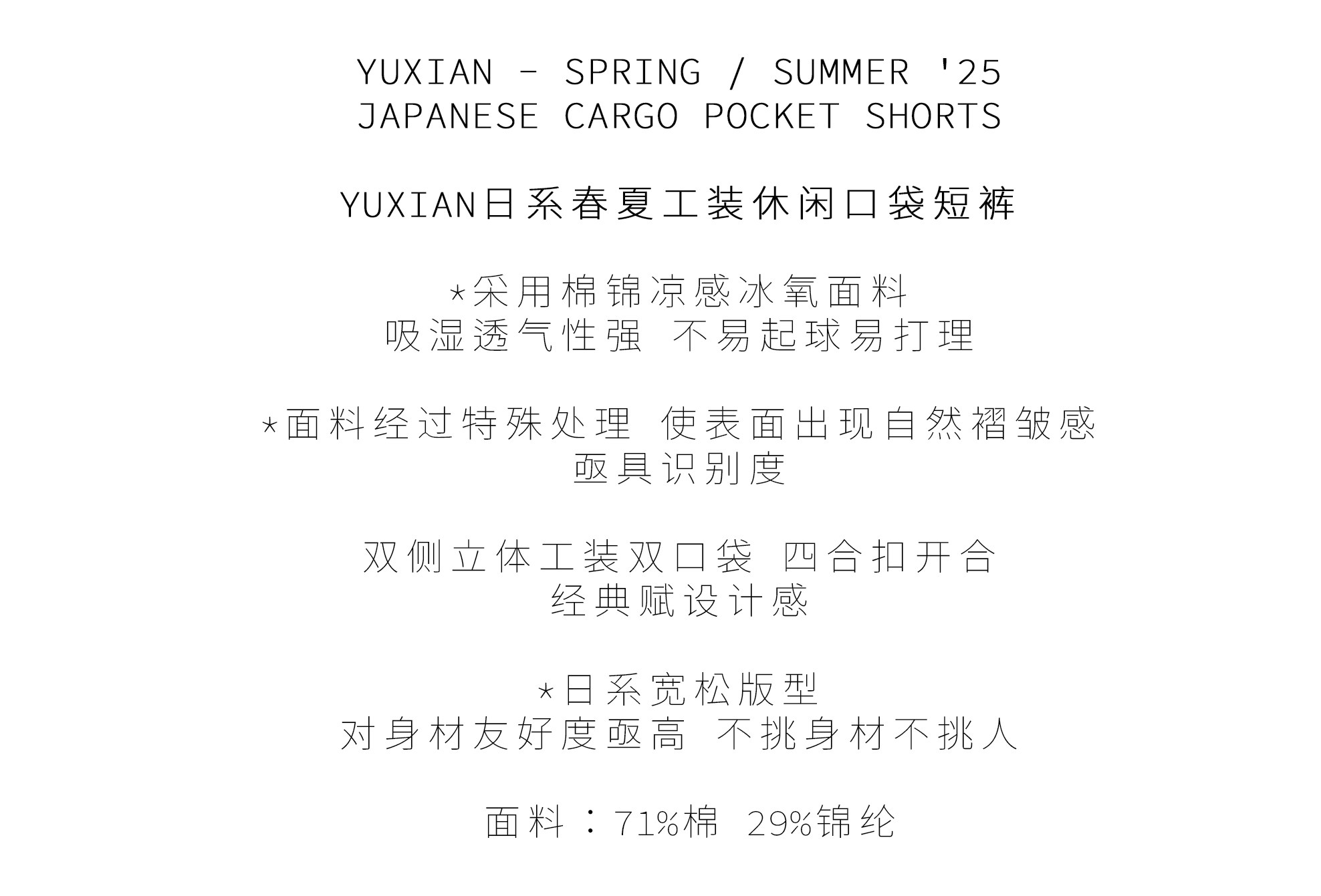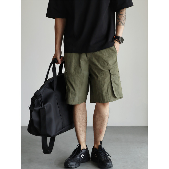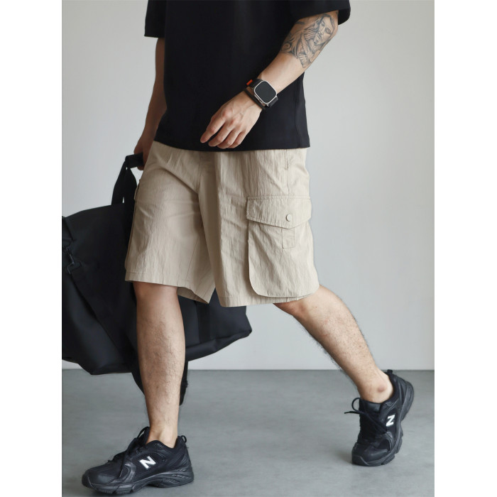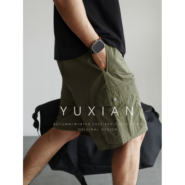 YUXIAN輕量化肌理感日系工裝短褲口袋寬鬆直筒休閒百搭薄款春夏季