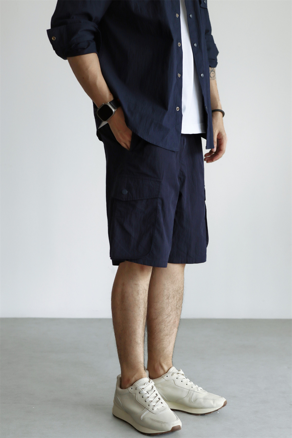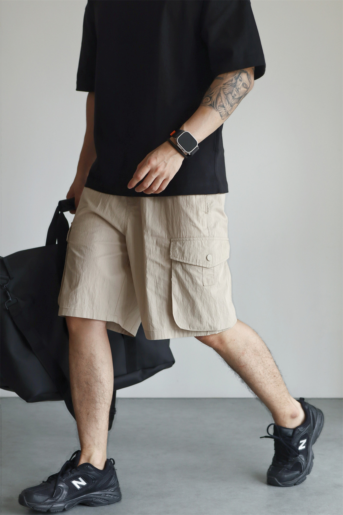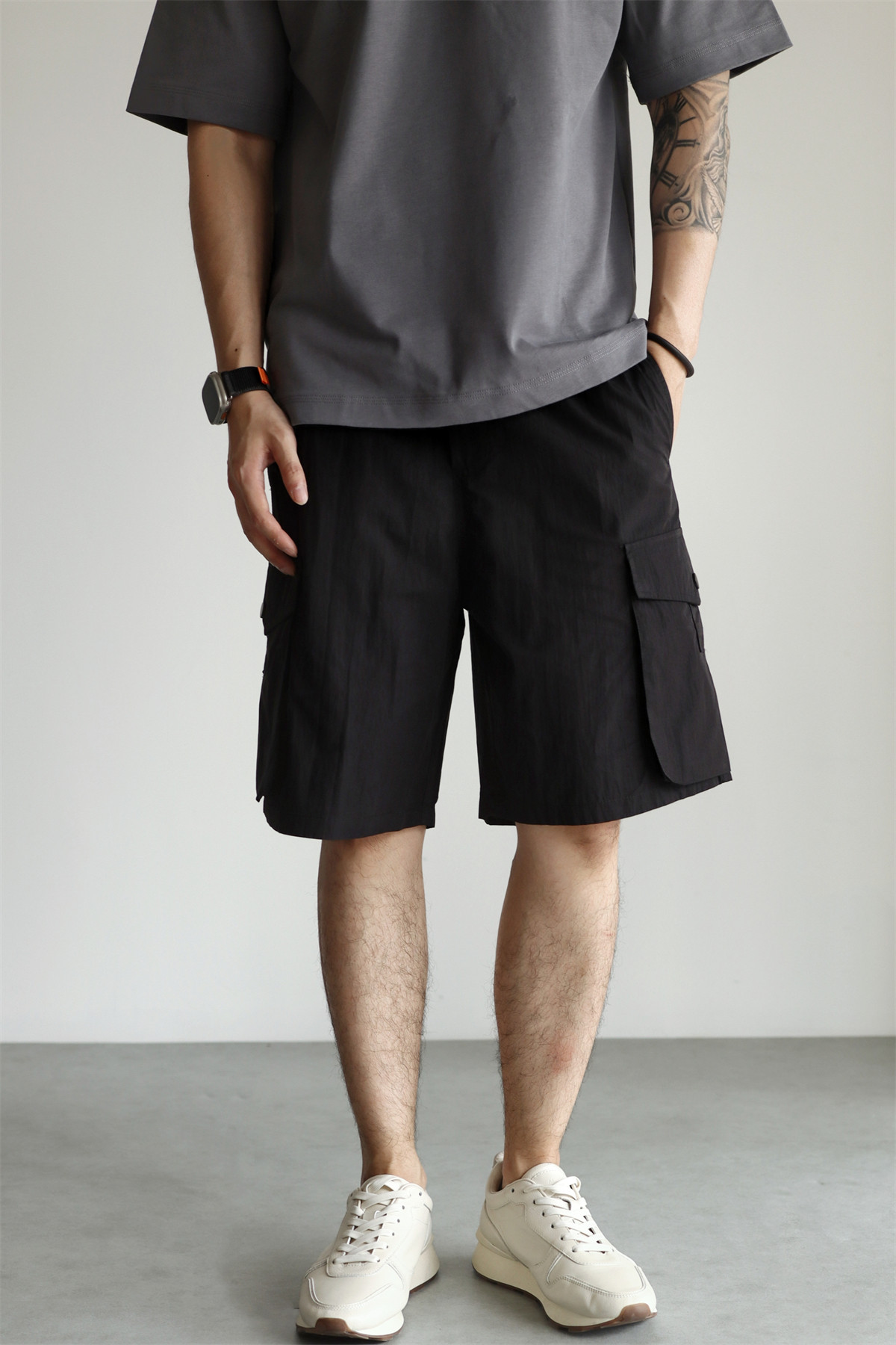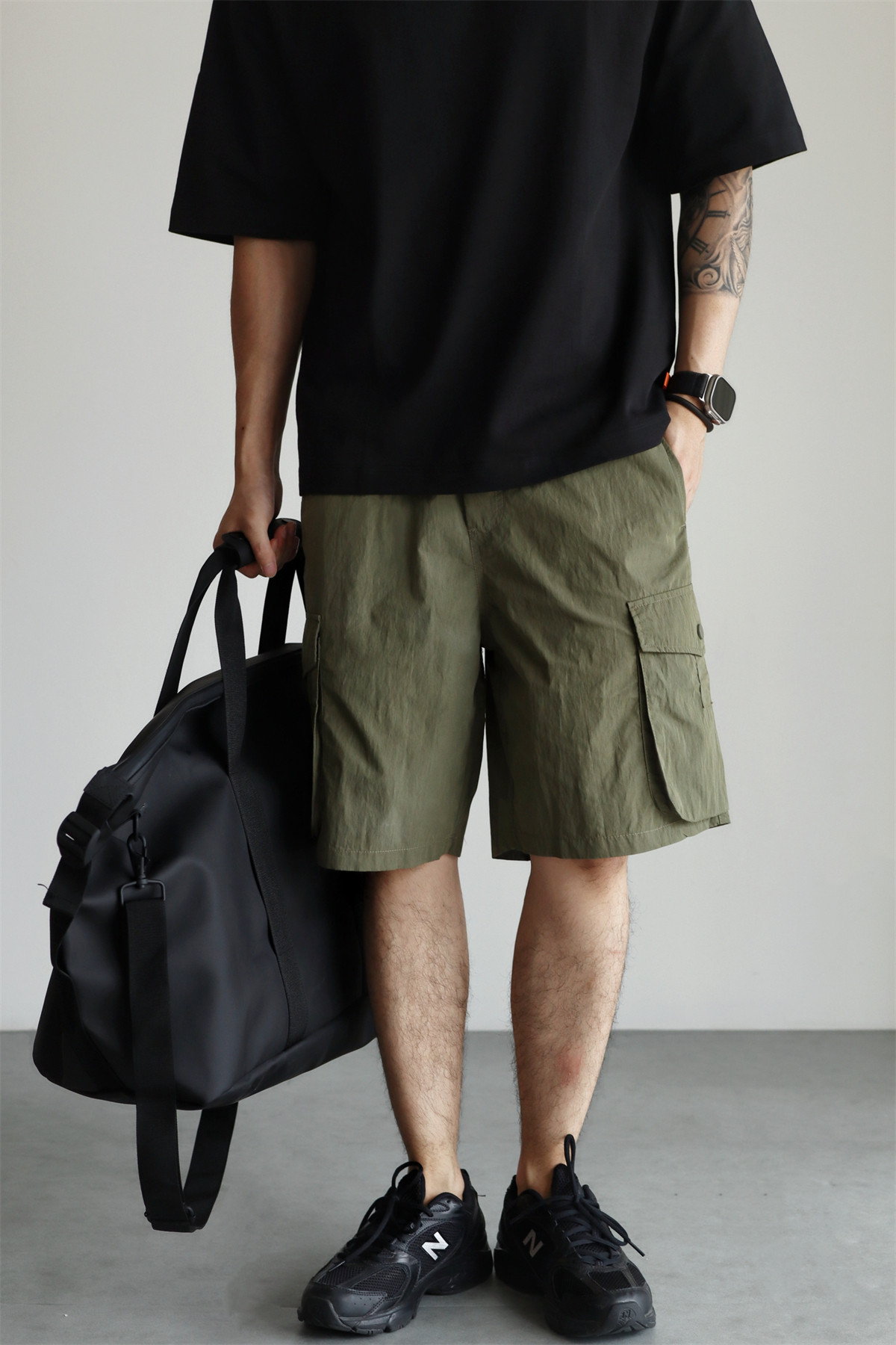 YUXIAN輕量化肌理感日系工裝短褲口袋寬鬆直筒休閒百搭薄款春夏季