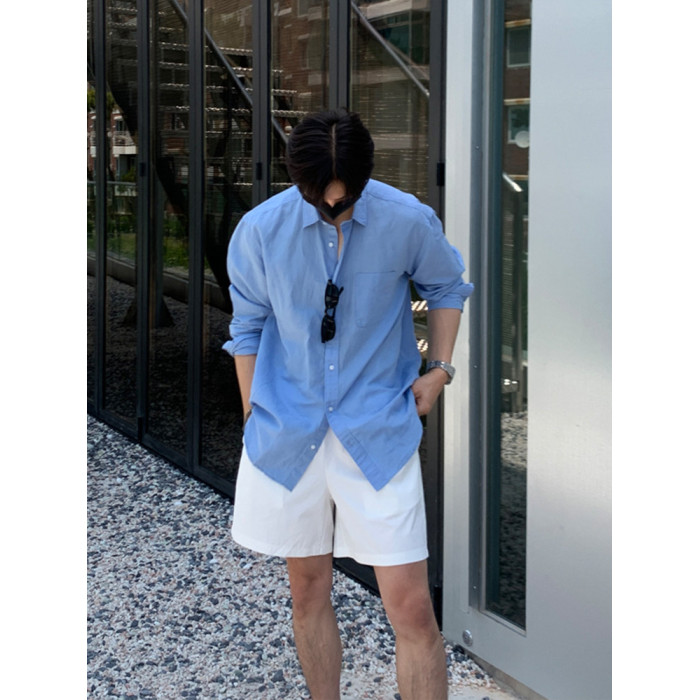 SSUMENAM白色短褲男夏季休閒水洗棉褲子潮牌百搭直筒五分褲沙灘