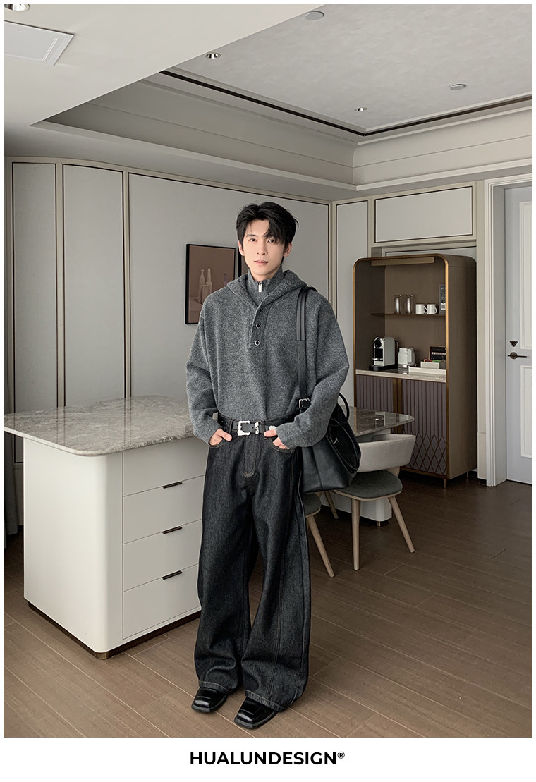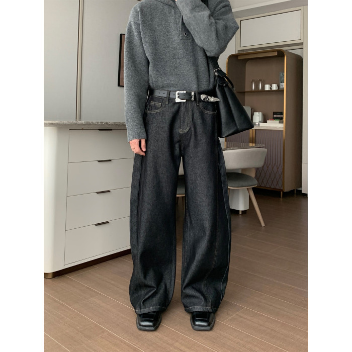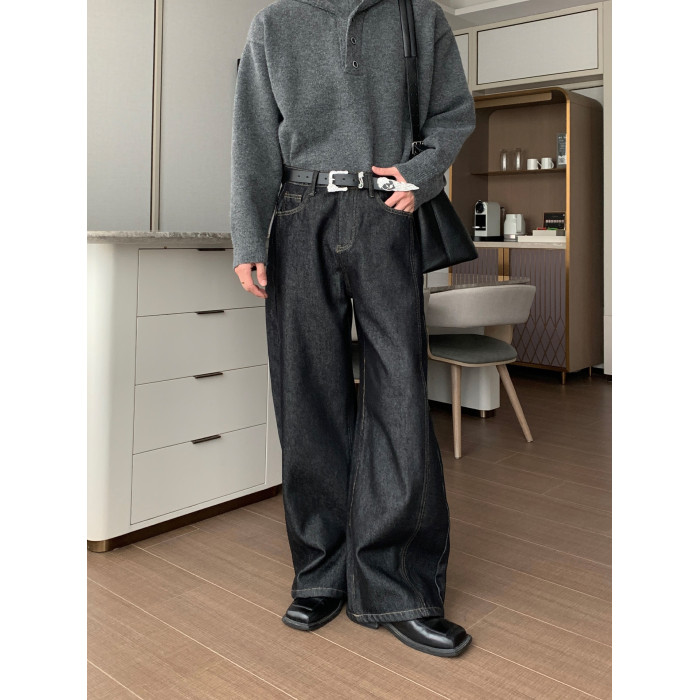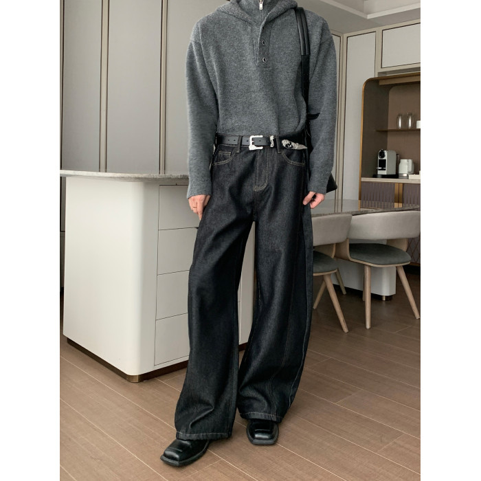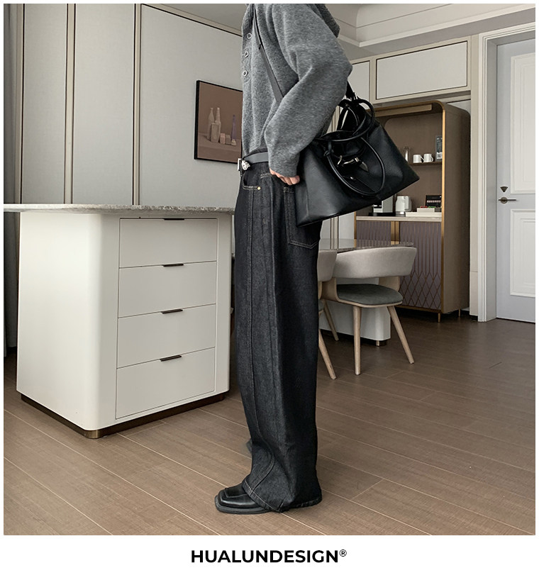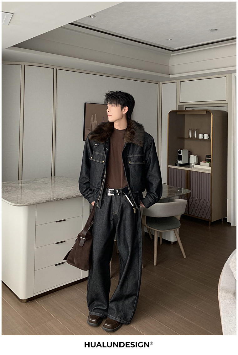 Hualun冬季加絨加厚牛仔褲男寬鬆保暖褲子男款潮流百搭濶腿彎刀褲